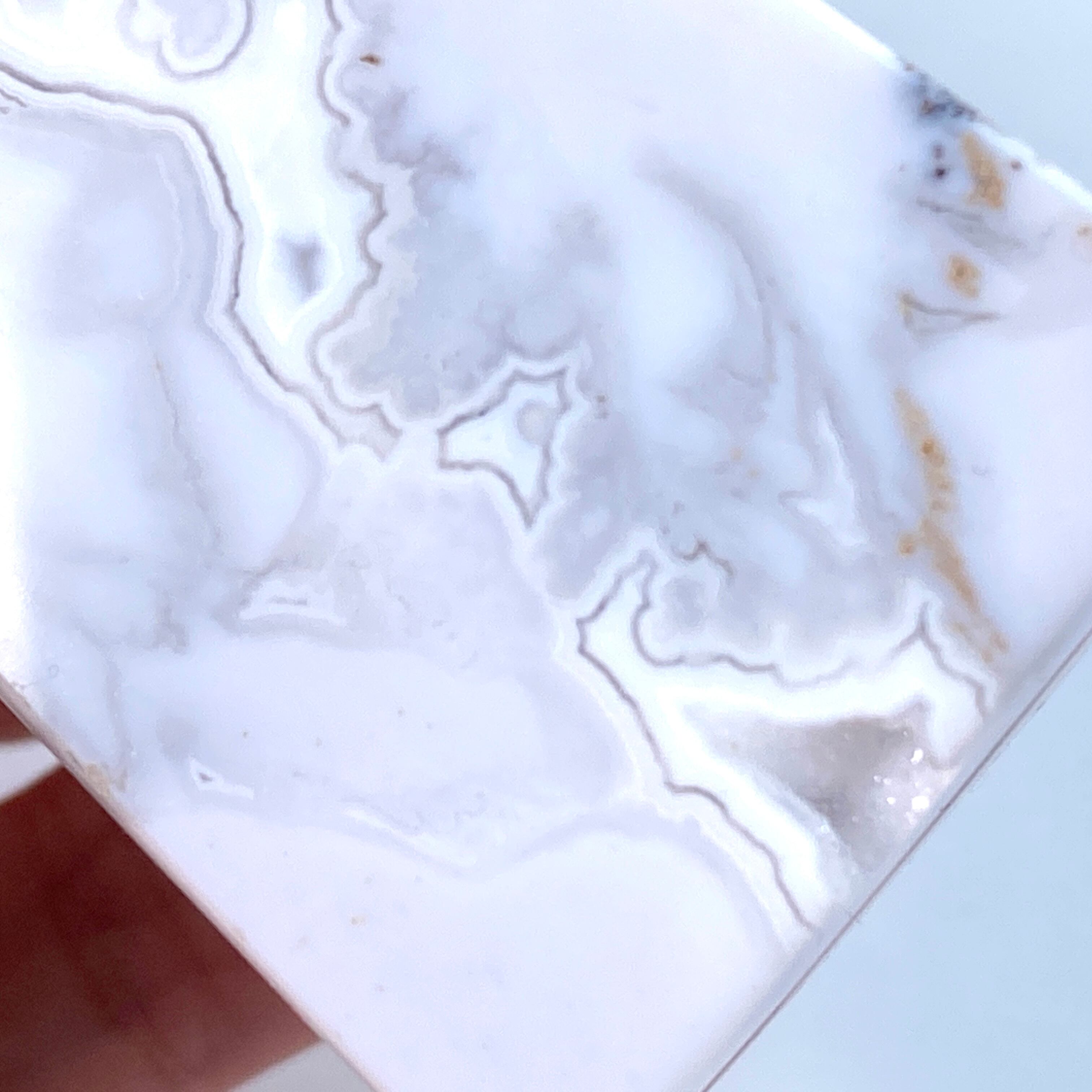 まるで雪景色の様な模様が特徴のホワイトプルームアゲート。
