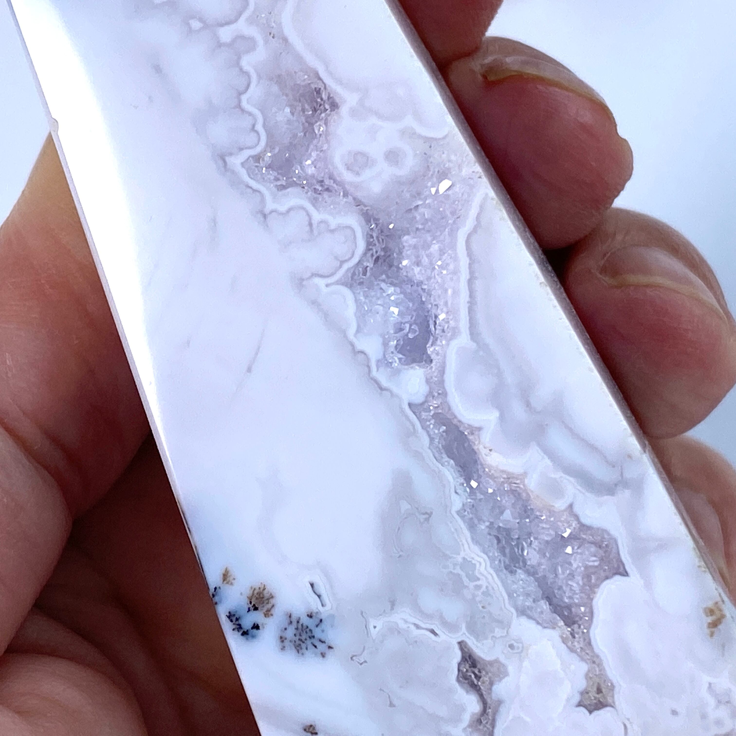 キラキラと眩い光沢を放つ、粉砂糖の様なドゥルージーに加え、樹氷の様なパターン、そしてデンドライトが加わったアイテムです。