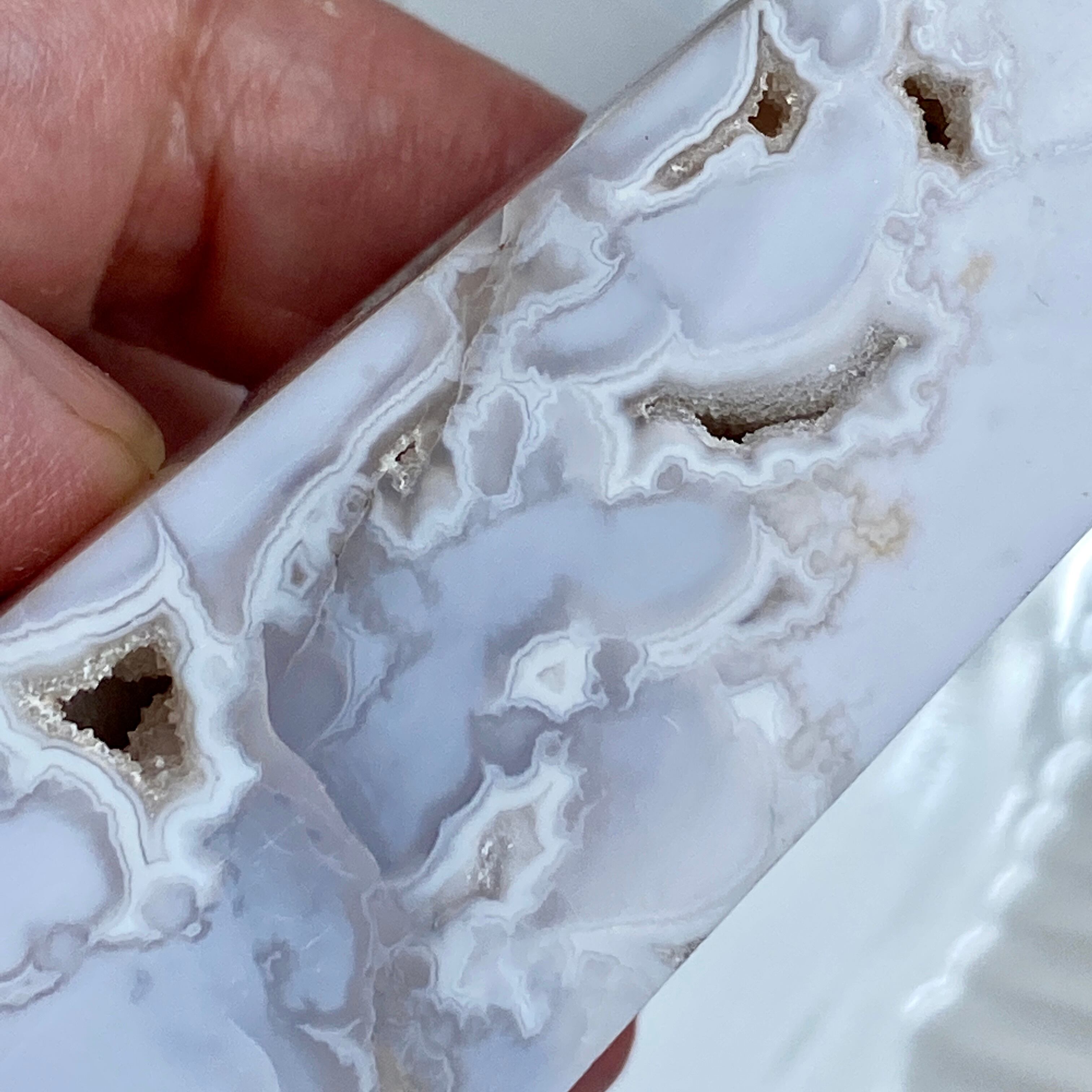 白をベースに、インディゴ/パープル系の色味が清涼感を添えているだけで無く、北欧的なイメージを醸し出しているのがポイント。実際はトロピカルな気候のインドネシアで採掘・カット・研磨されており、この様な愛らしい姿で目の前に現れてくれくれました。