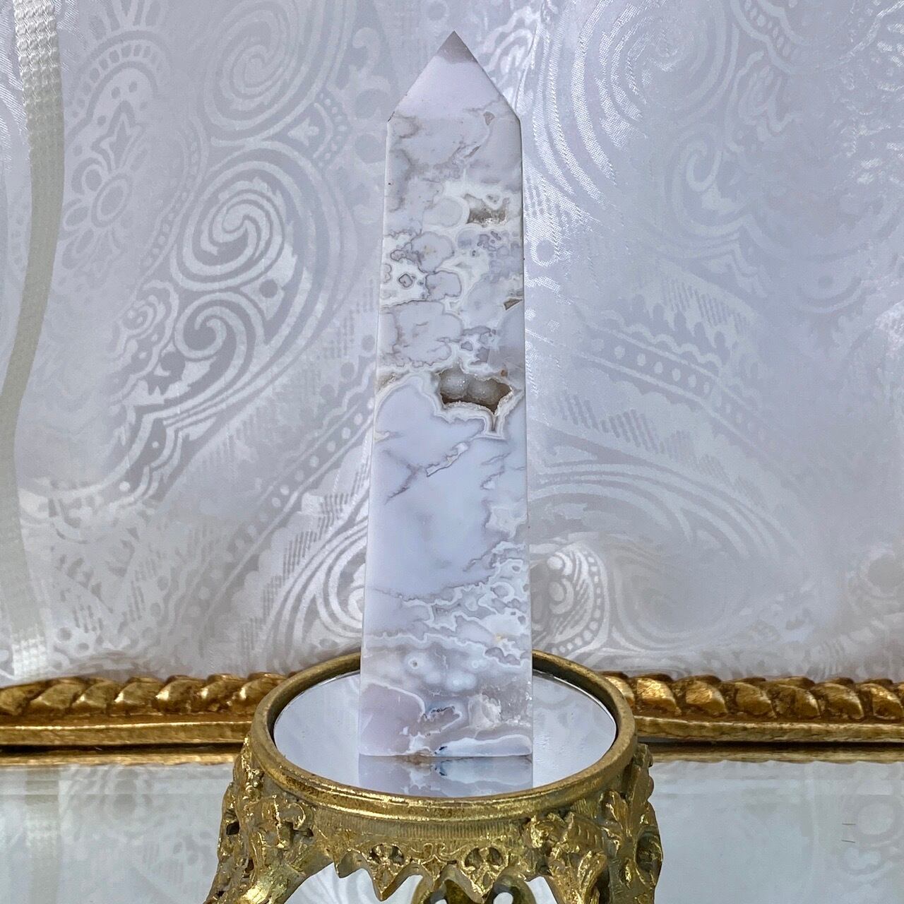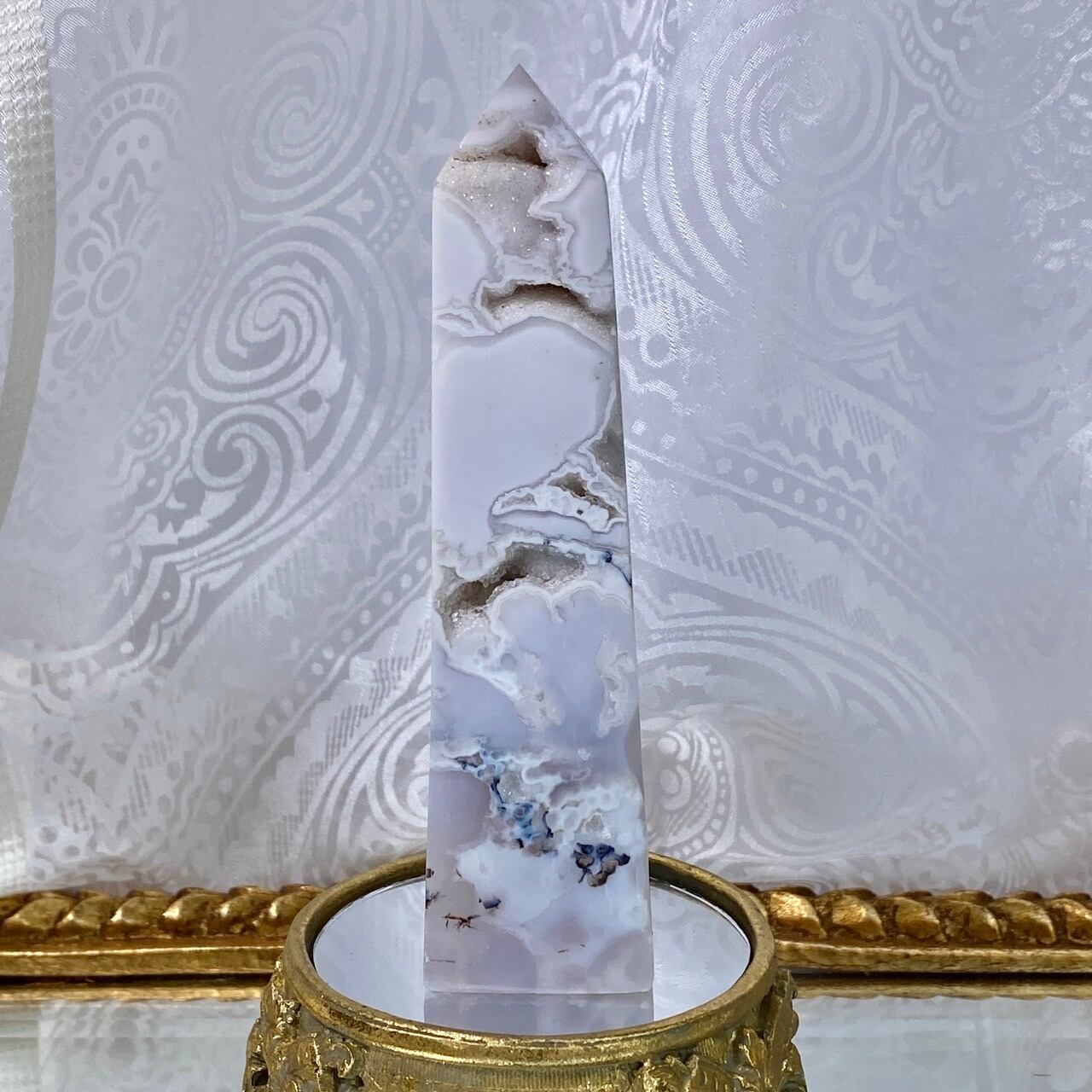 〈デンドライト入り〉ホワイトアゲート・タワー Dendritic White Agate Tower TW1259