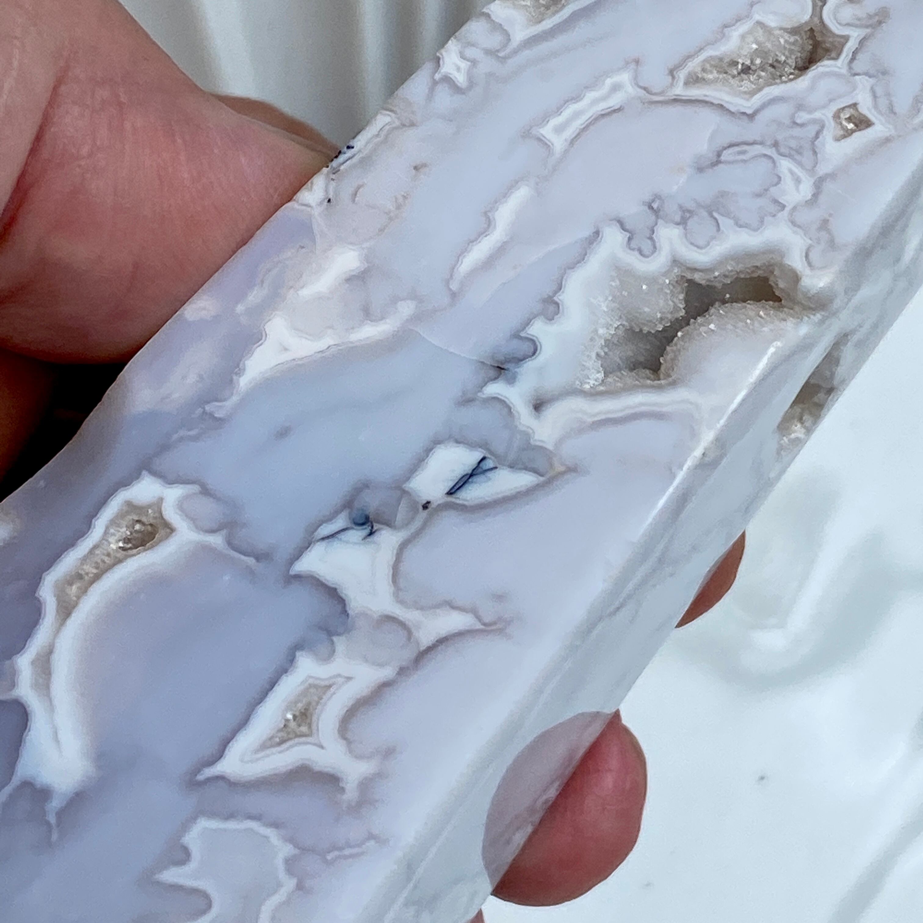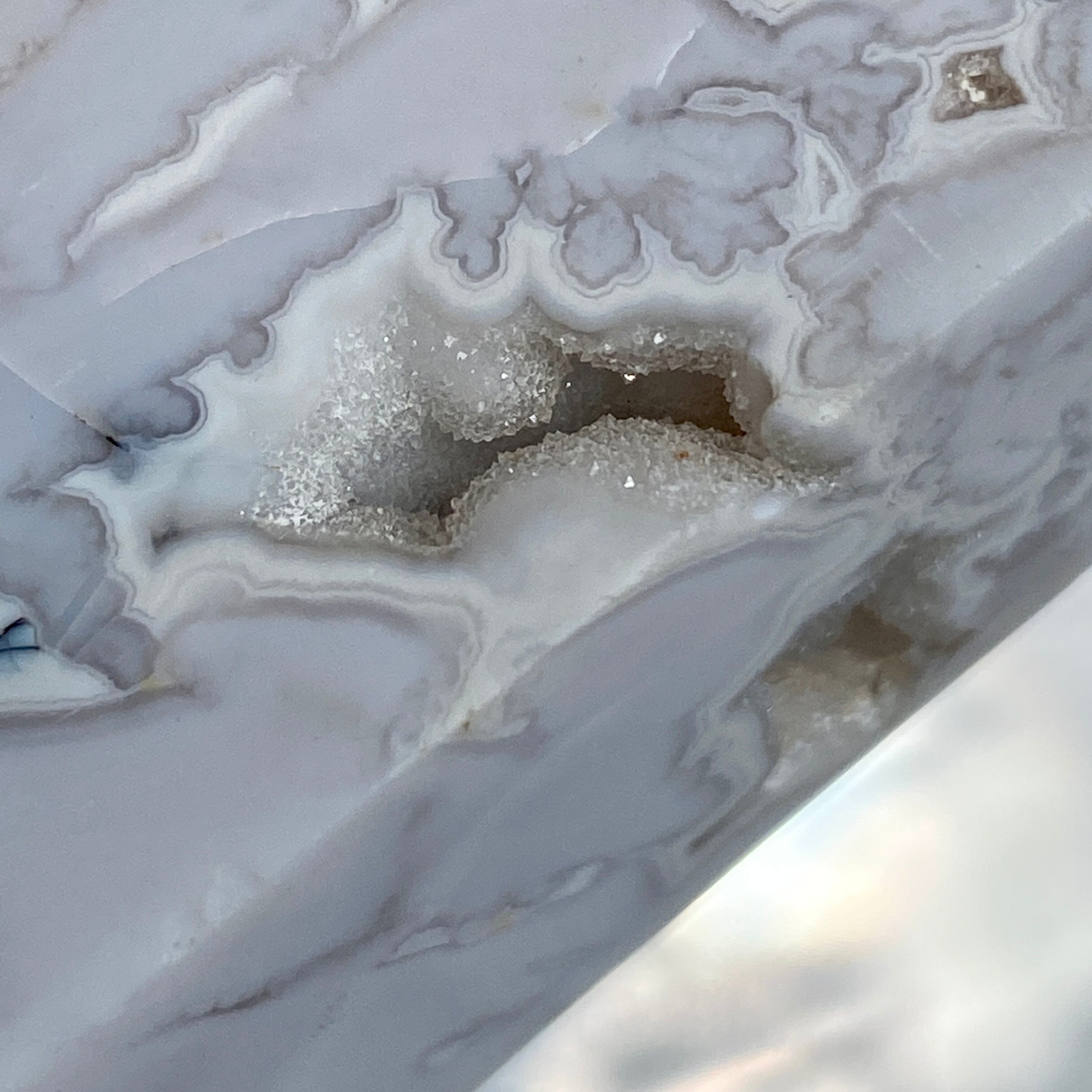 キラキラと眩い光沢を放つ、綿菓子の様なドゥルージーに加え、樹氷の様なパターン、そしてデンドライトが加わったアイテム。