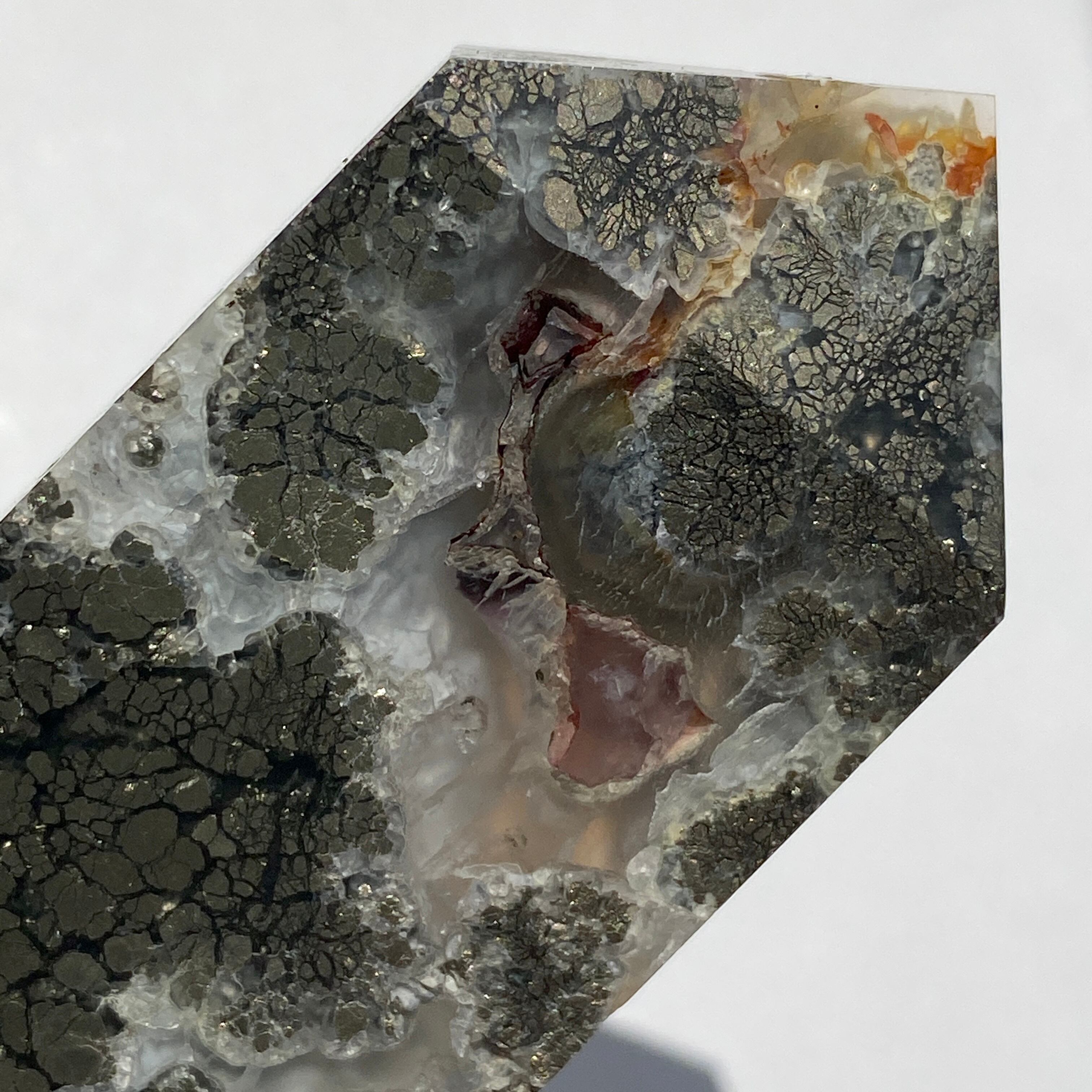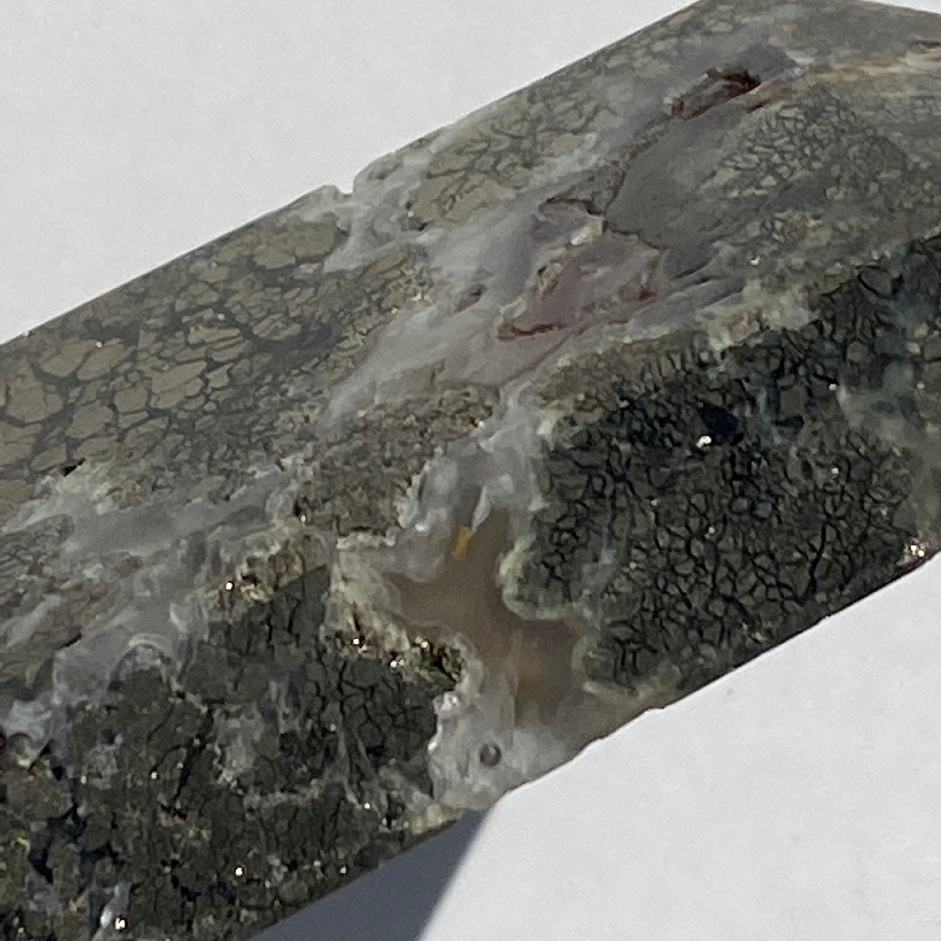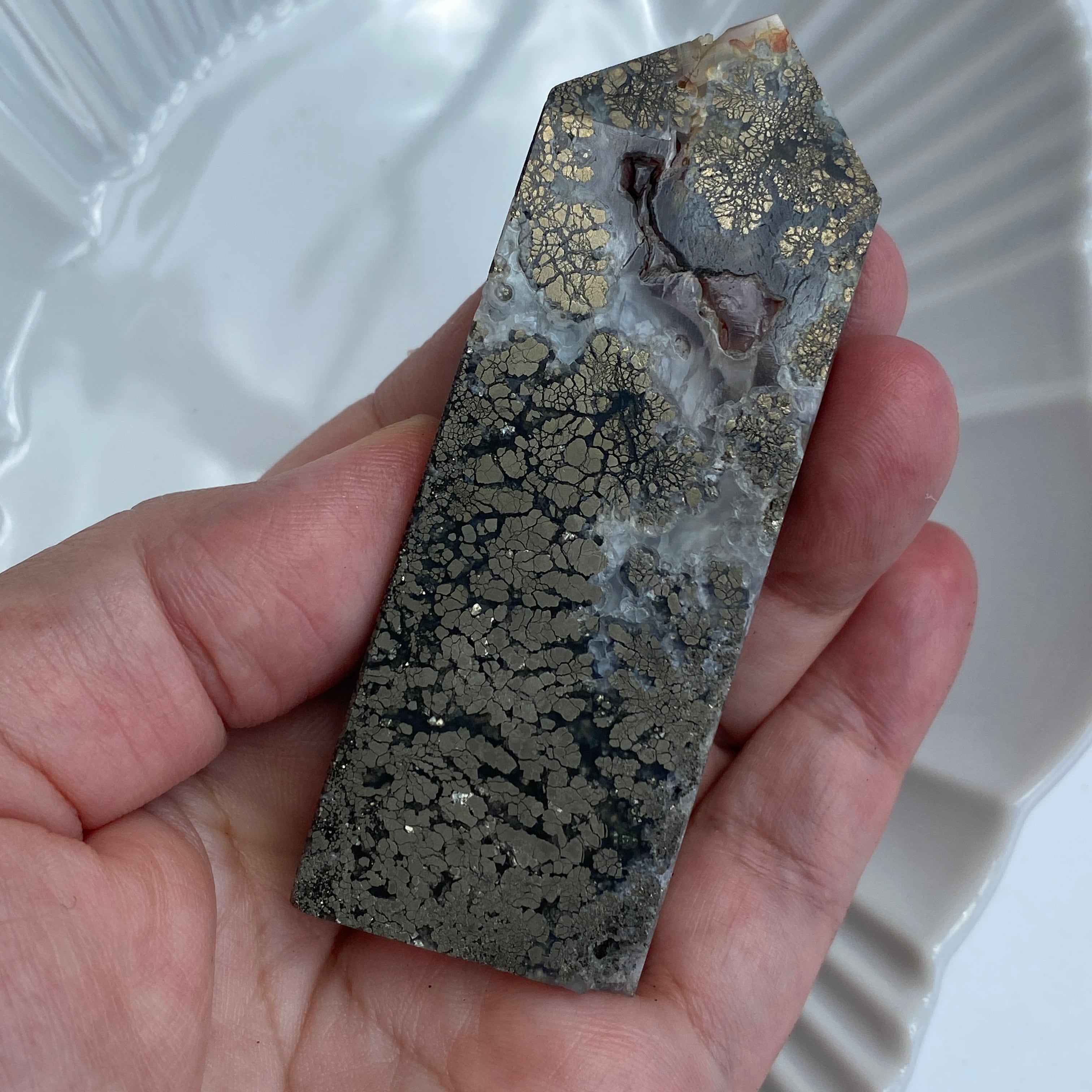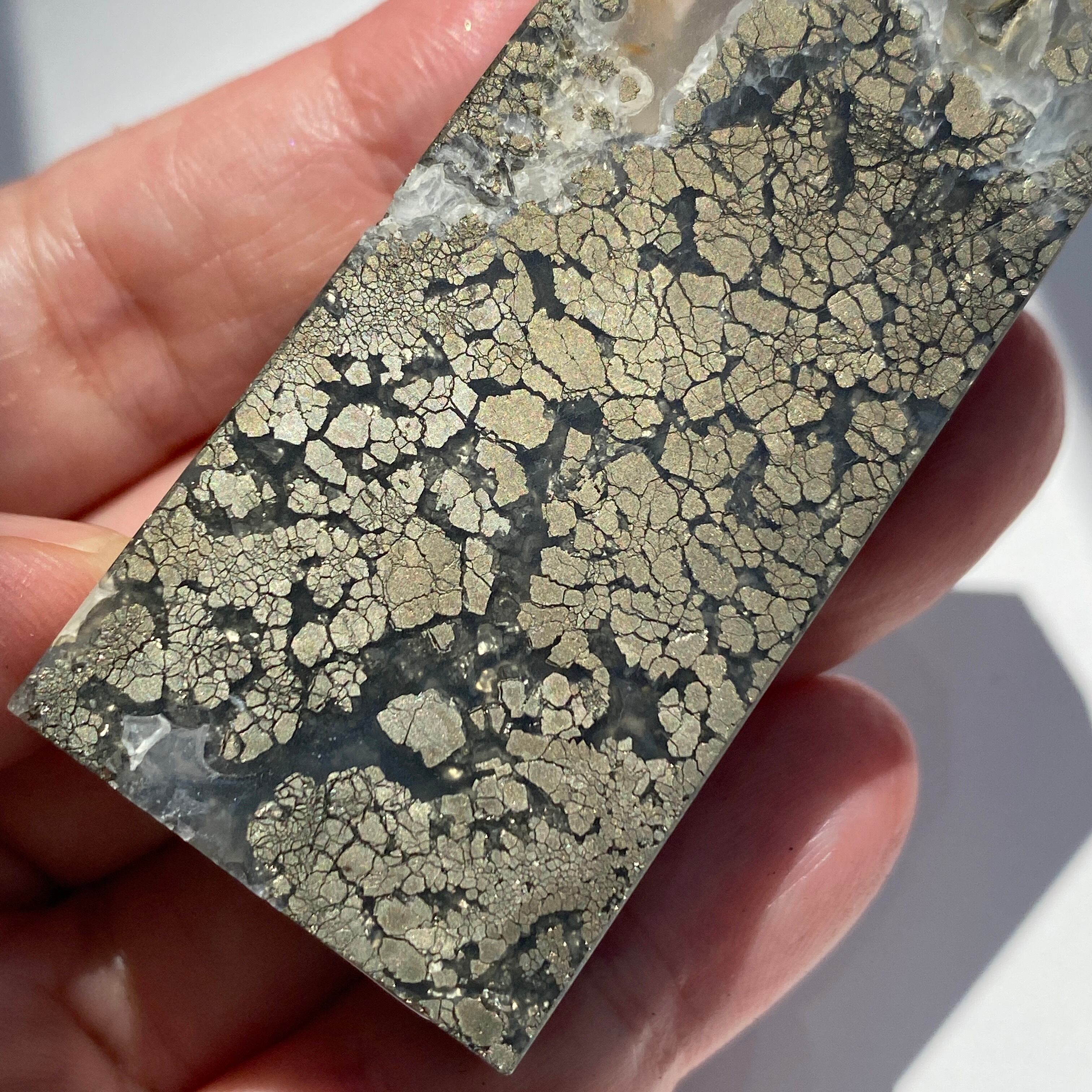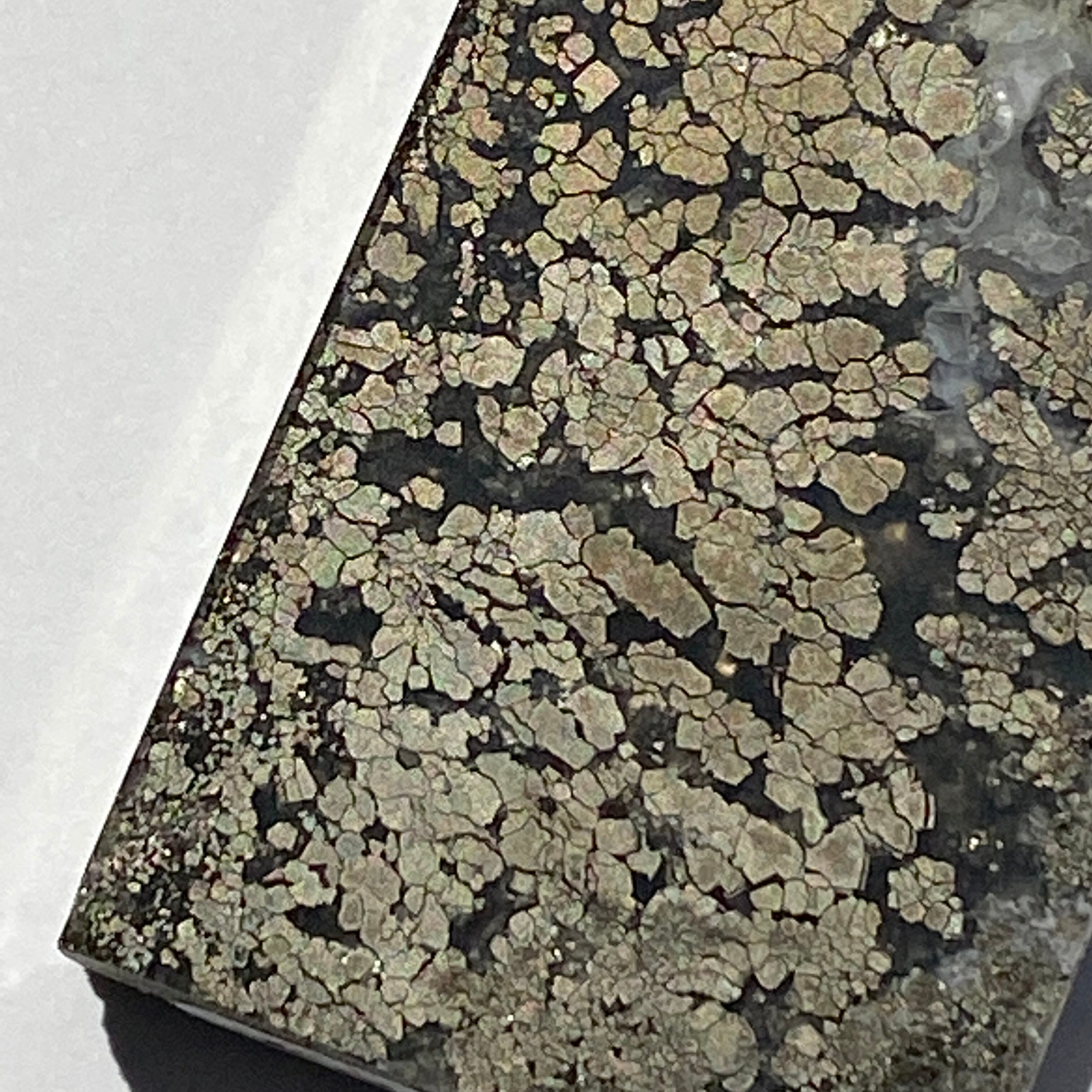 マーカサイトはディテール入り模様が美しい石です。たまにダマスク模様に似ているものありますが、今回は流氷の様な感じ?でしょうか。模様の無い部分は透けて中まで確認できる所もあり、ライトを当てて細部を確認したくなる様なアイテムです。