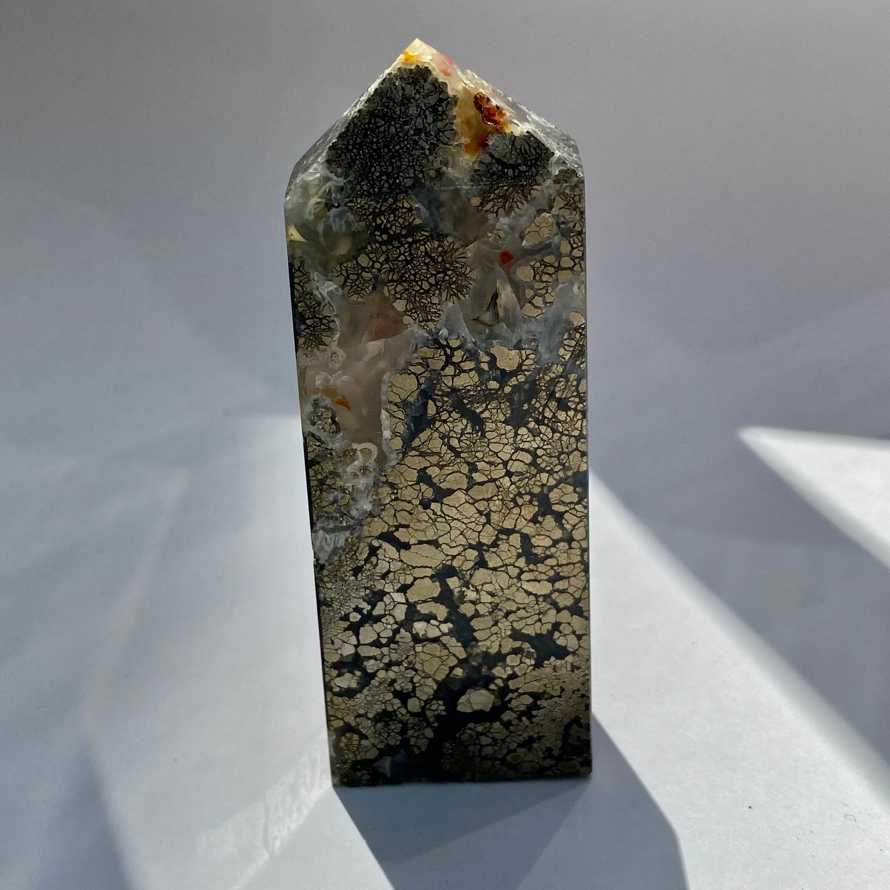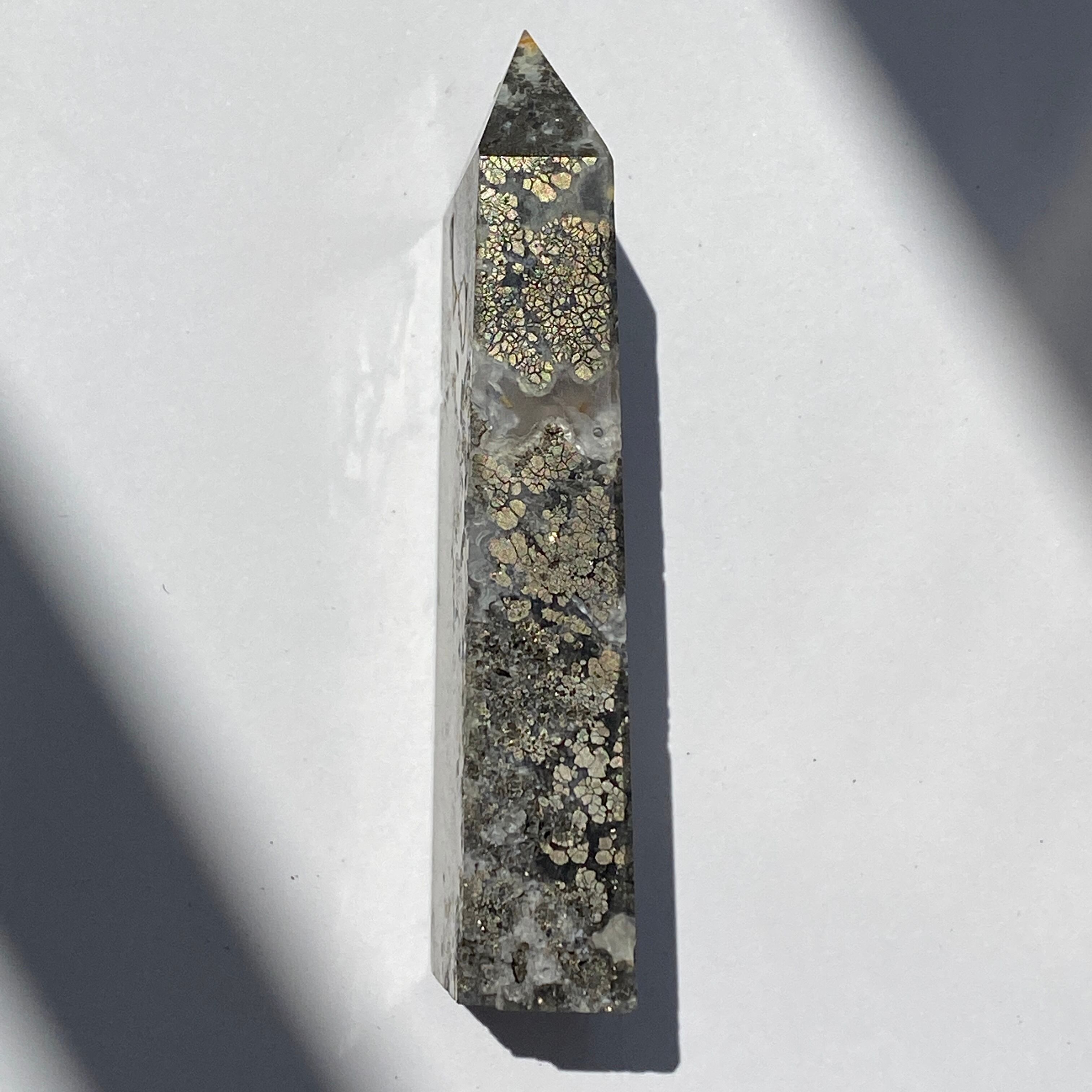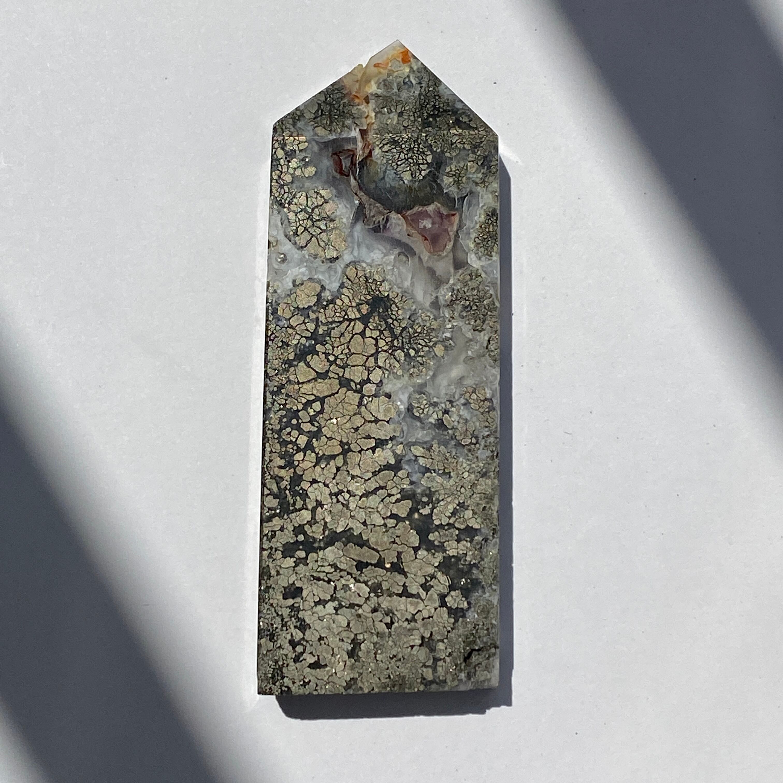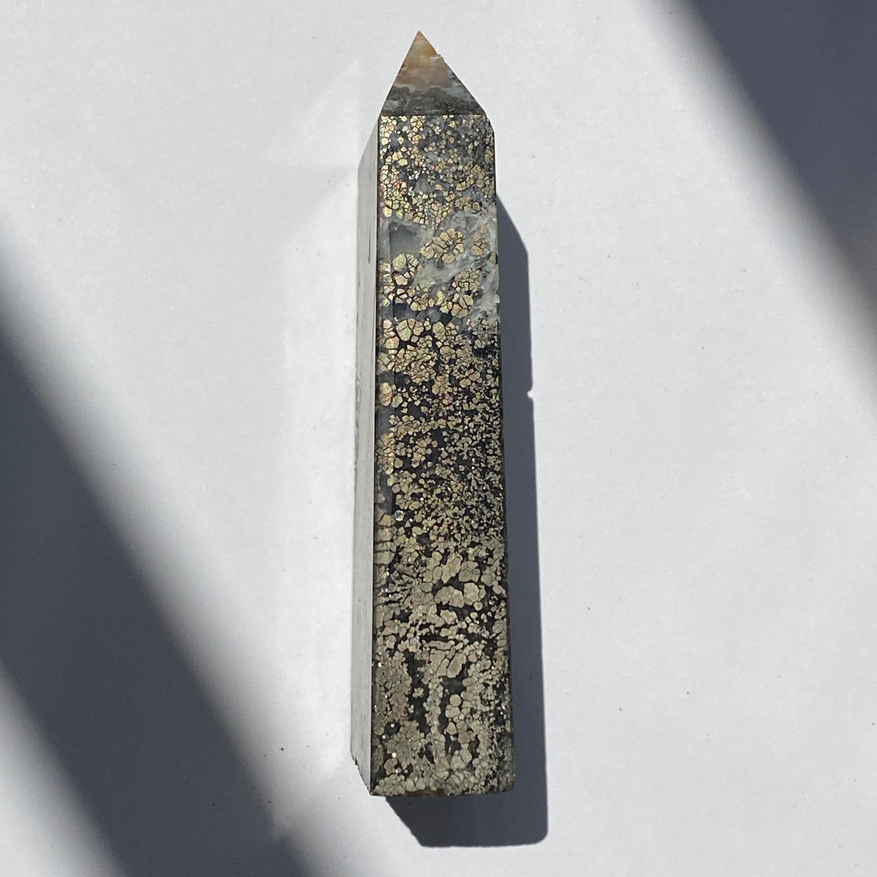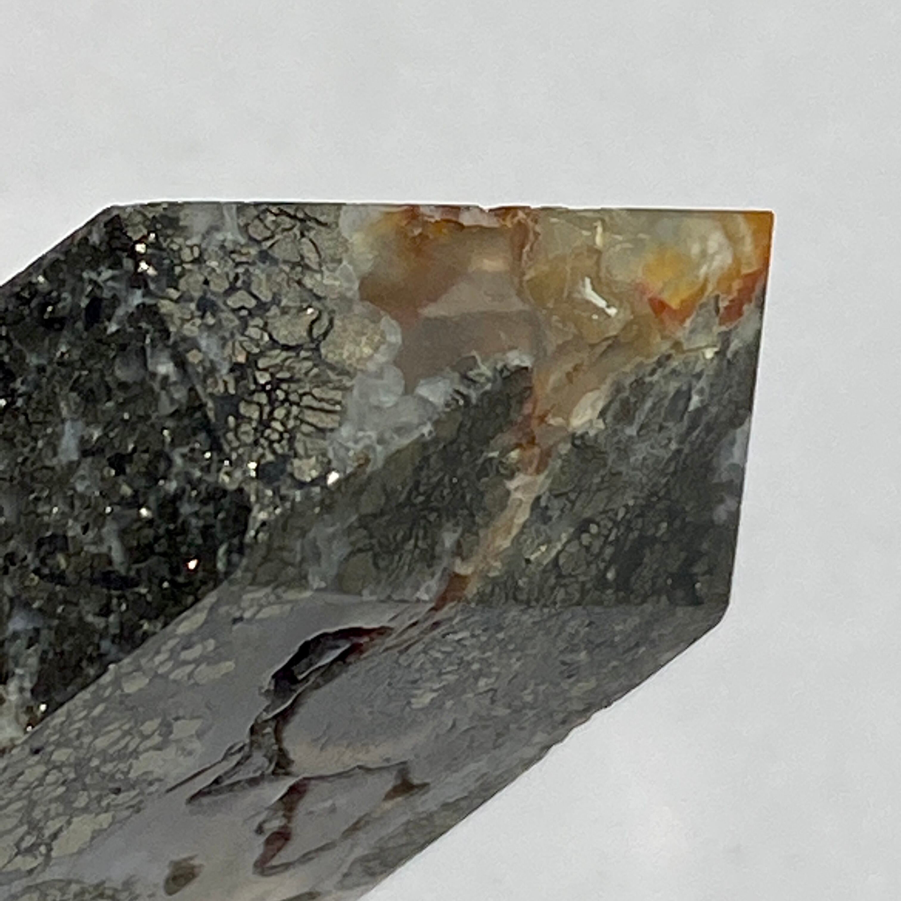 マーカサイトはディテール入り模様が美しい石です。たまにダマスク模様に似ているものありますが、今回は流氷の様な感じ?でしょうか。模様の無い部分は透けて中まで確認できる所もあり、ライトを当てて細部を確認したくなる様なアイテムです。