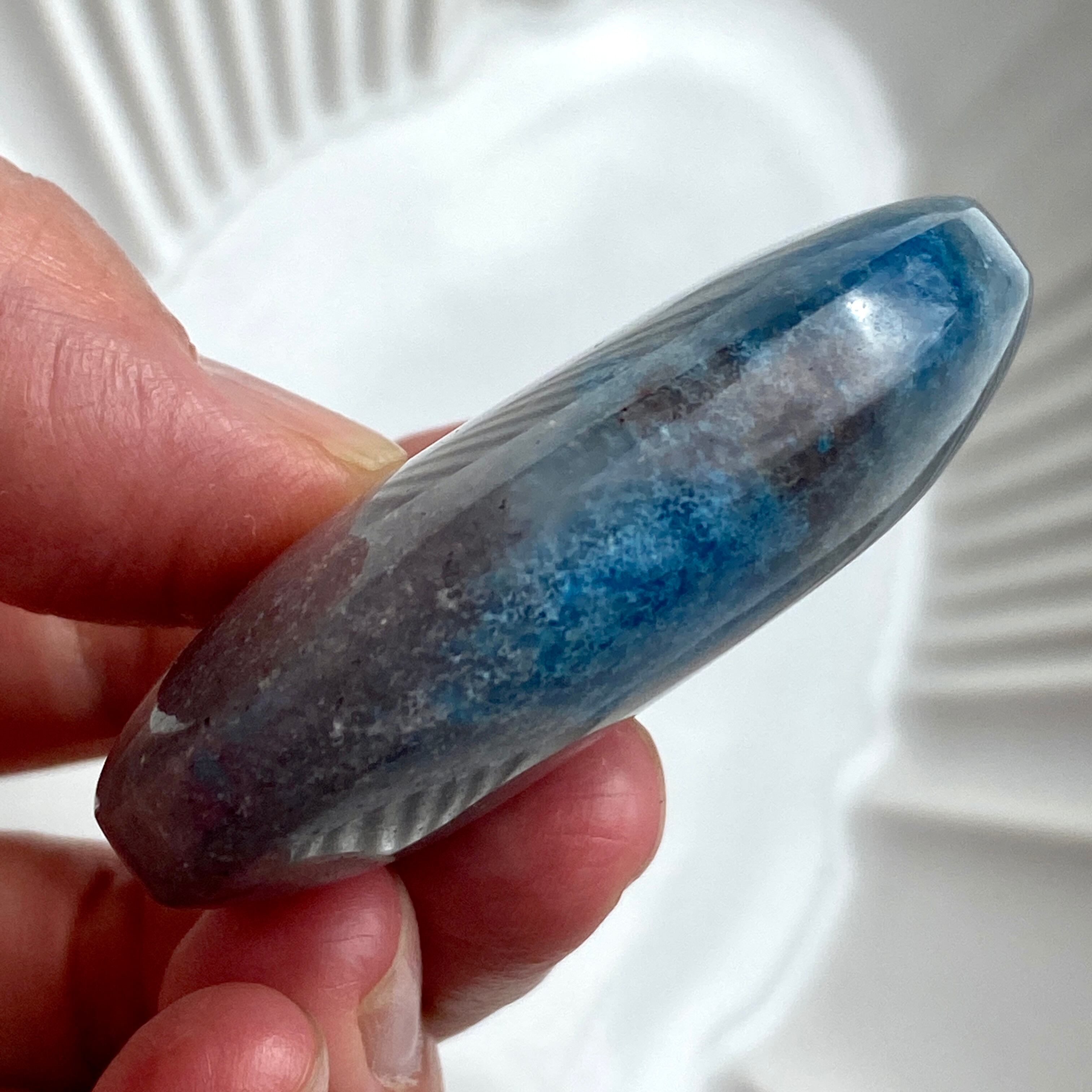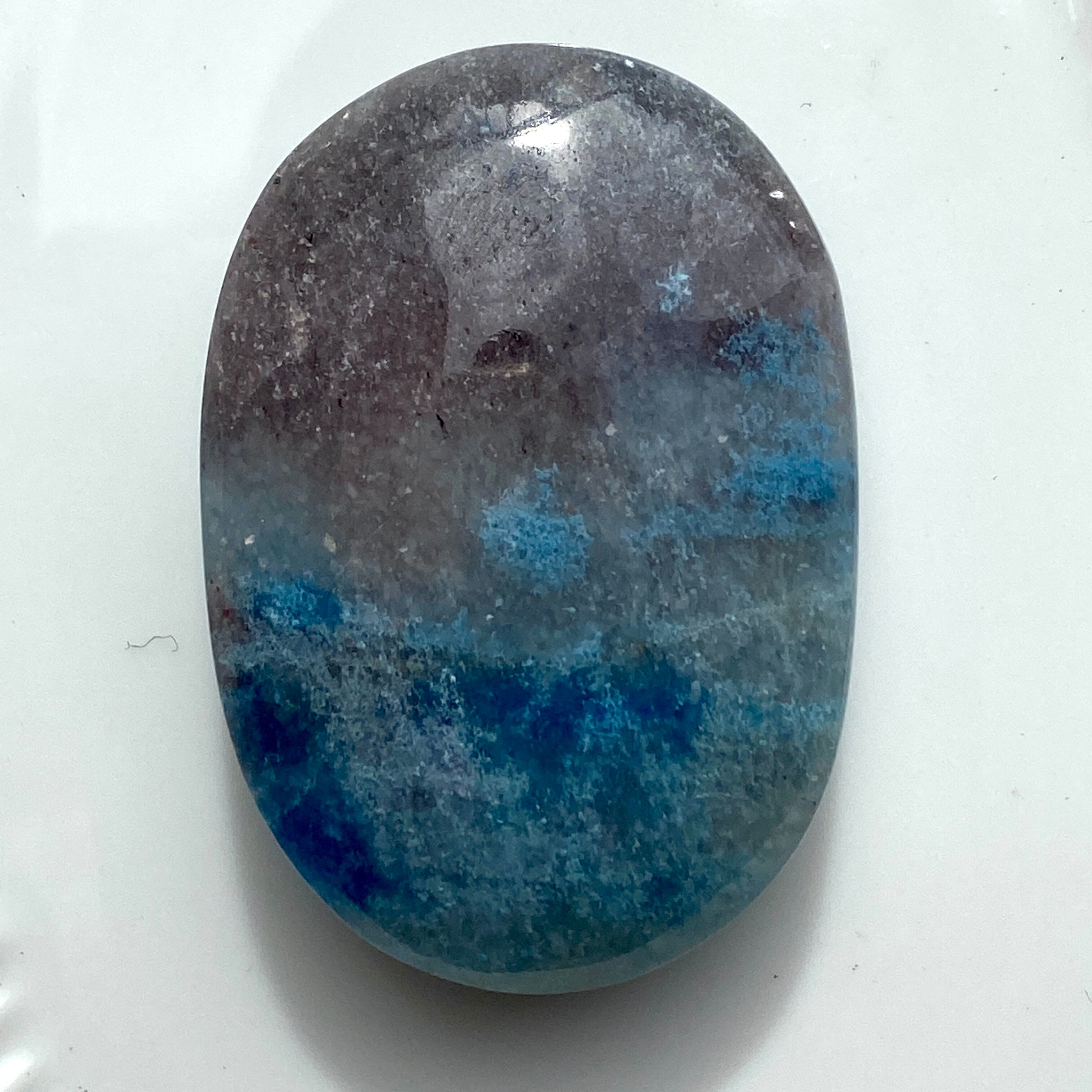 グレーががかったクォーツをベースに青の濃淡模様が入ったパームストーン。清涼感のあるカラーコンビネーションと繊細な模様が絶妙なハーモニーを奏でていて可愛い♡です。