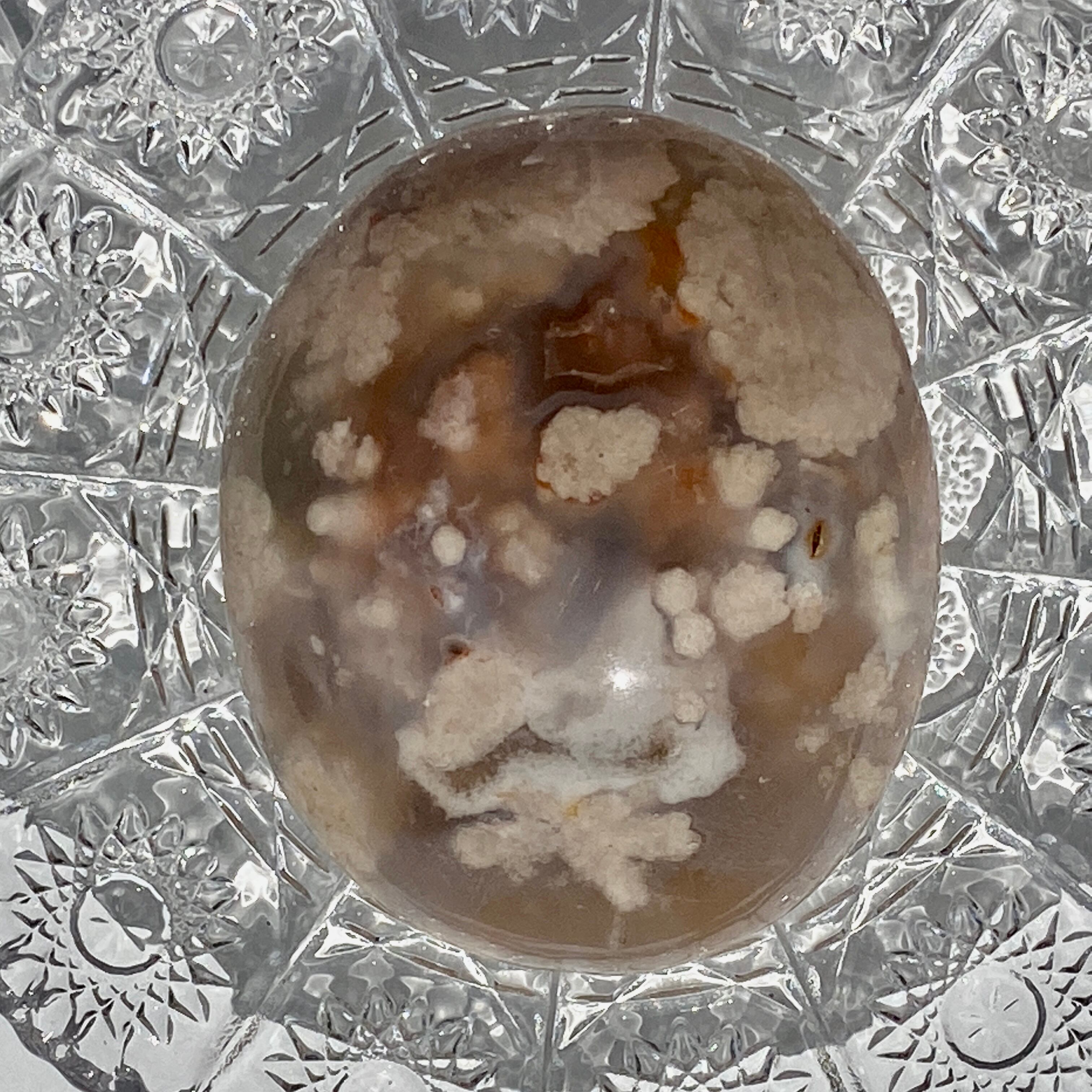 アゲートはカルセドニーと同様に「石英 Quartz」グループの仲間で、岩の空洞や割れ目に入り込んだ地下水から形成され、水に溶け込んでいたSilica(シリカ)が、ゼリーの様になって固まったものだそうです。アゲートの様々な模様は天然が作り出す芸術作品で、世界中の愛好家を魅了してやみません。特にフラワーアゲートはアゲートの中でも人気のアイテムです。