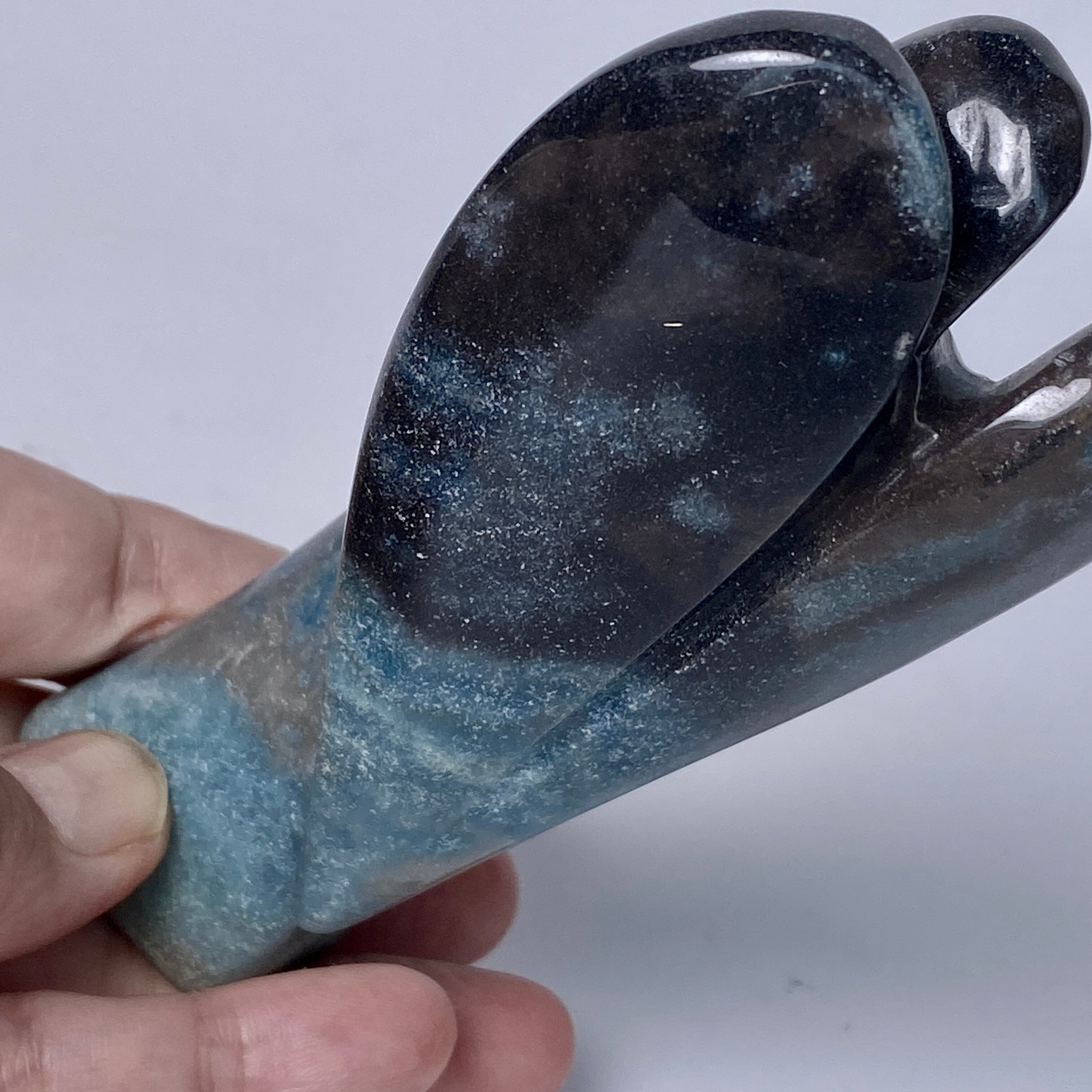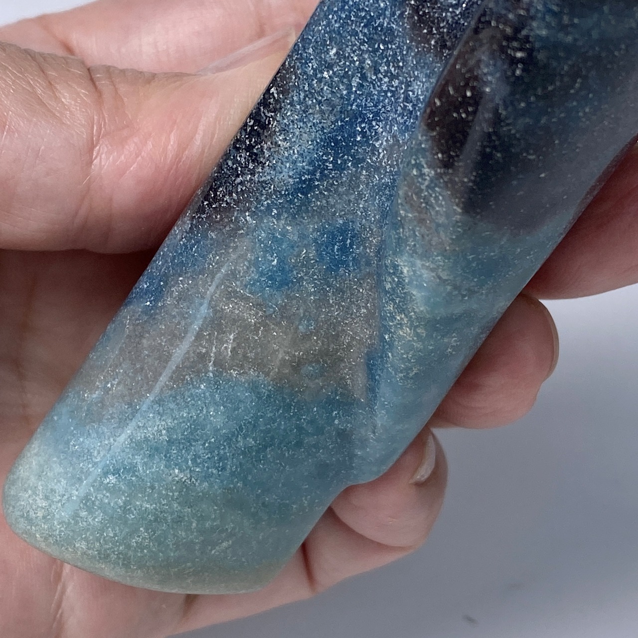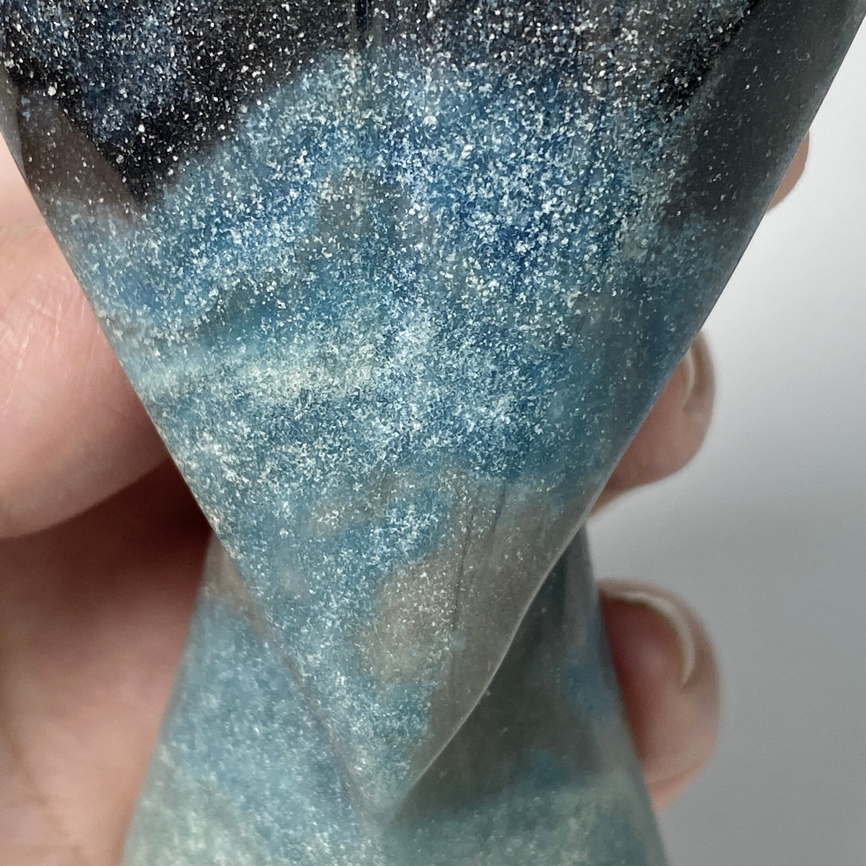 トロレアイトインクォーツ(トロール石)は主にクォーツとブルーの濃淡であるラズライトとスコルザライトから成る石です。その波動の高さゆえ海外ではascention stoneと呼ばれ、高次との繋がりを促すと言われています。ヒーラーやライトワーカーに最適と瞑想のお供等にも使用されます。