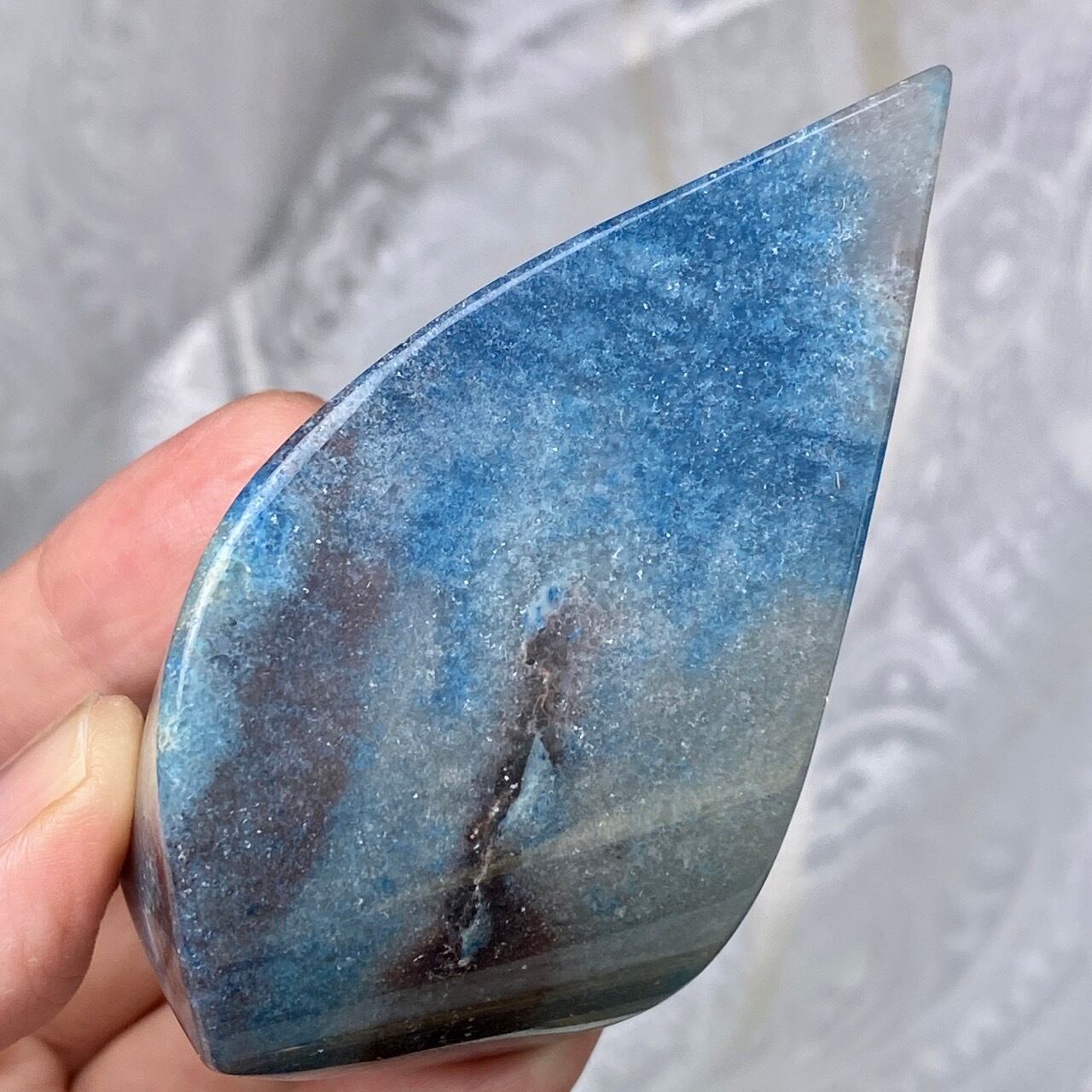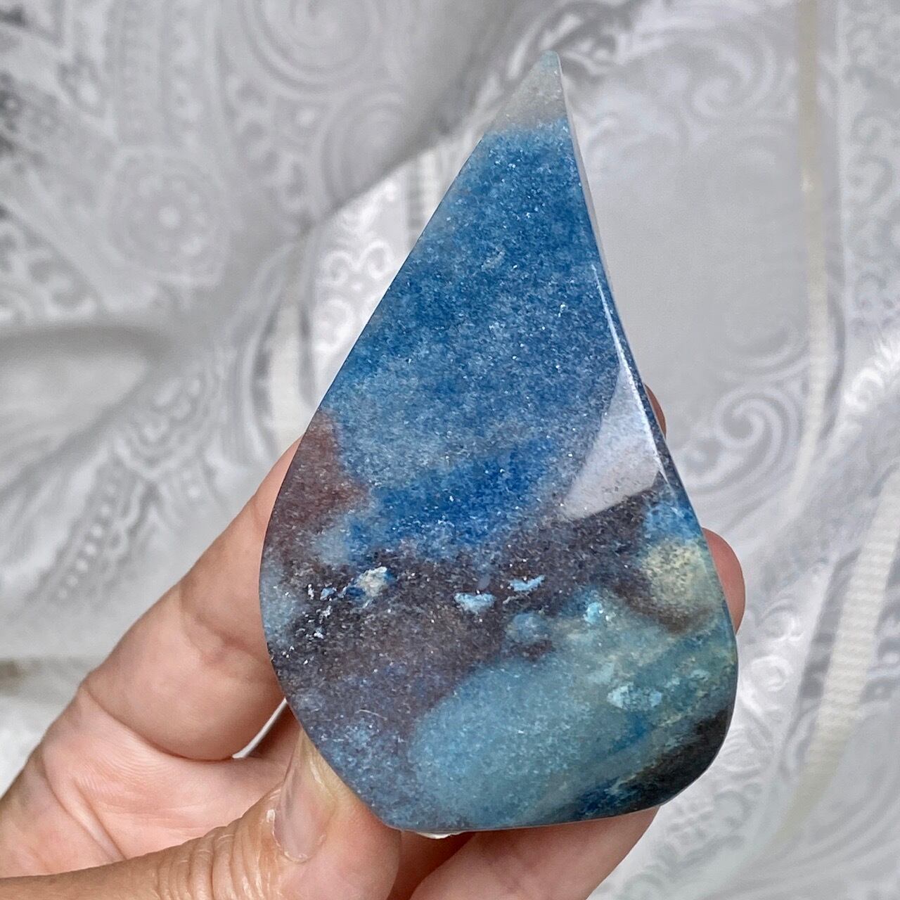 トロレアイトインクォーツ(トロール石)は主にクォーツとブルーの濃淡であるラズライトとスコルザライトから成る石です。その波動の高さゆえ海外ではascention stoneと呼ばれ、高次との繋がりを促すと言われています。ヒーラーやライトワーカーに最適と瞑想のお供等にも使用されます。