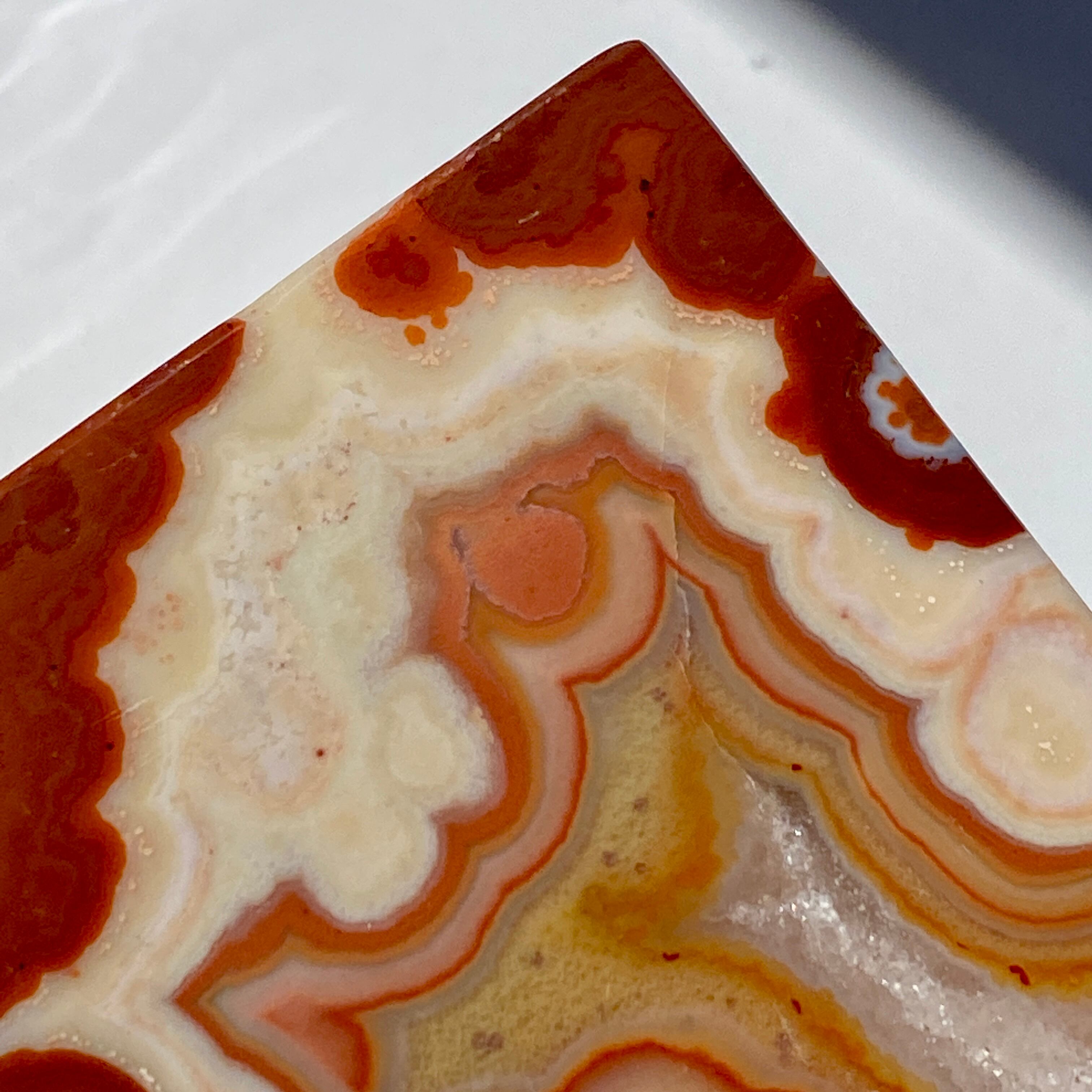 クレージーレースアゲートは、アゲート(瑪瑙)に属する石で、複雑に入り組んだ縞目模様が神秘的で人気が高く、その神秘的なビジュアルから古来より危険を回避する石として先住民族たちのお守りや儀式の道具として大切に崇められてきた神聖な石だと言われています。
