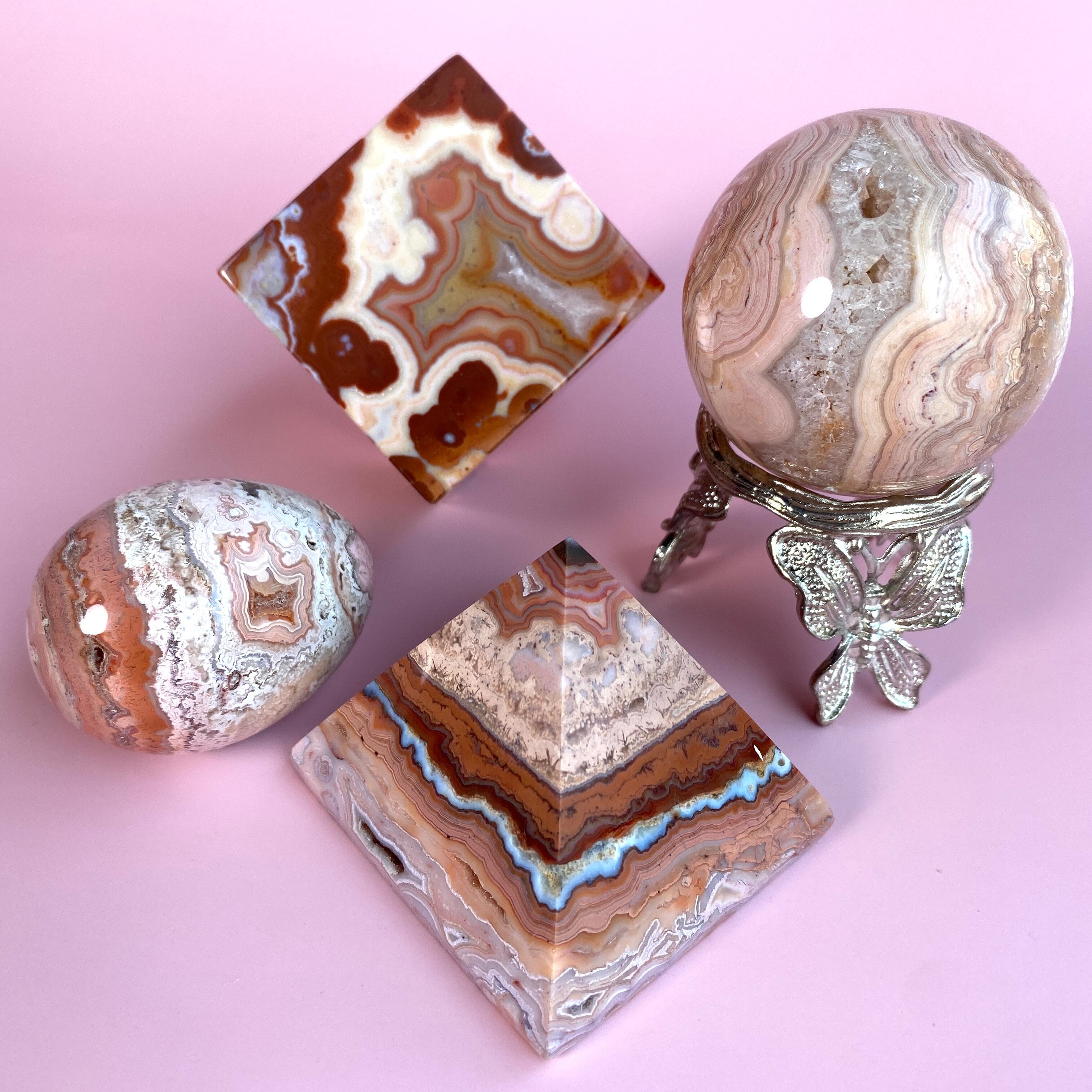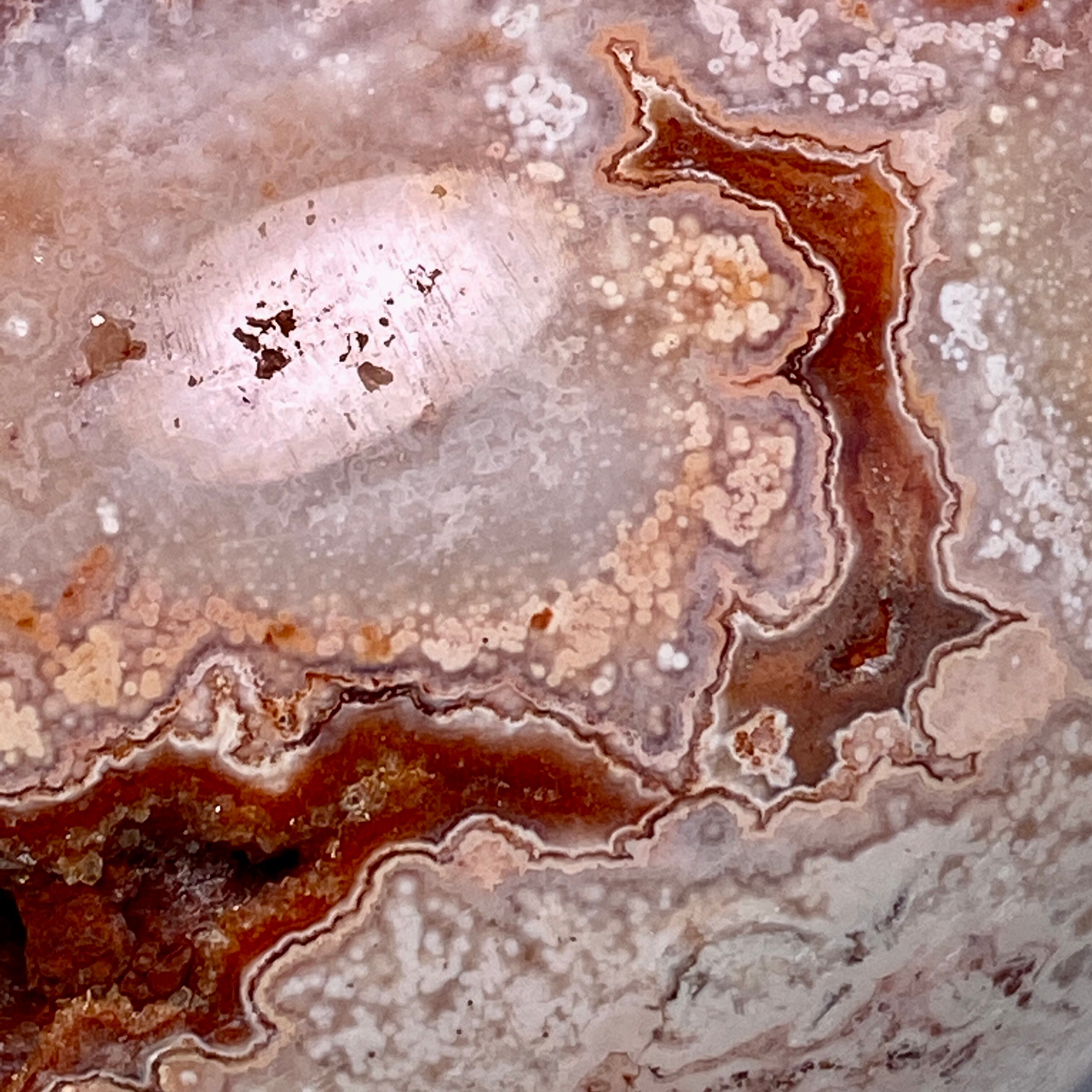 クレージーレースアゲートは、アゲート(瑪瑙)に属する石で、複雑に入り組んだ縞目模様が神秘的で人気が高く、その神秘的なビジュアルから古来より危険を回避する石として先住民族たちのお守りや儀式の道具として大切に崇められてきた神聖な石だと言われています。