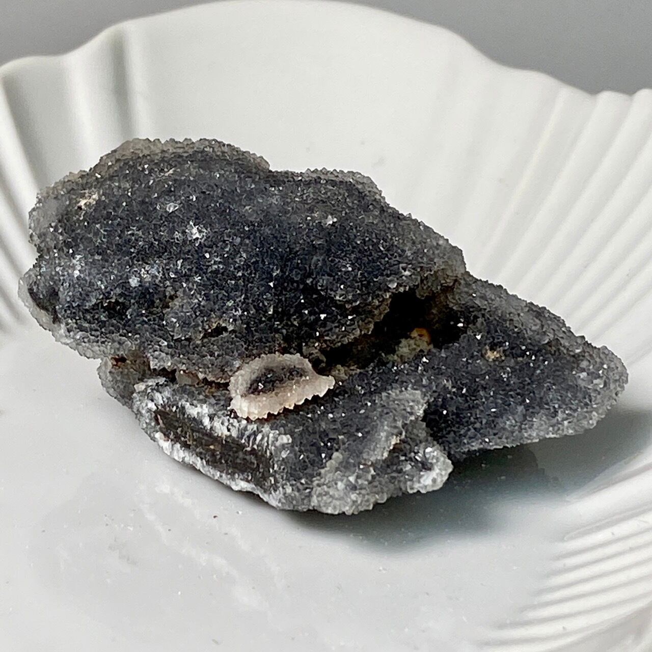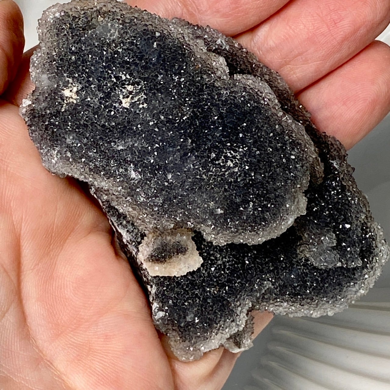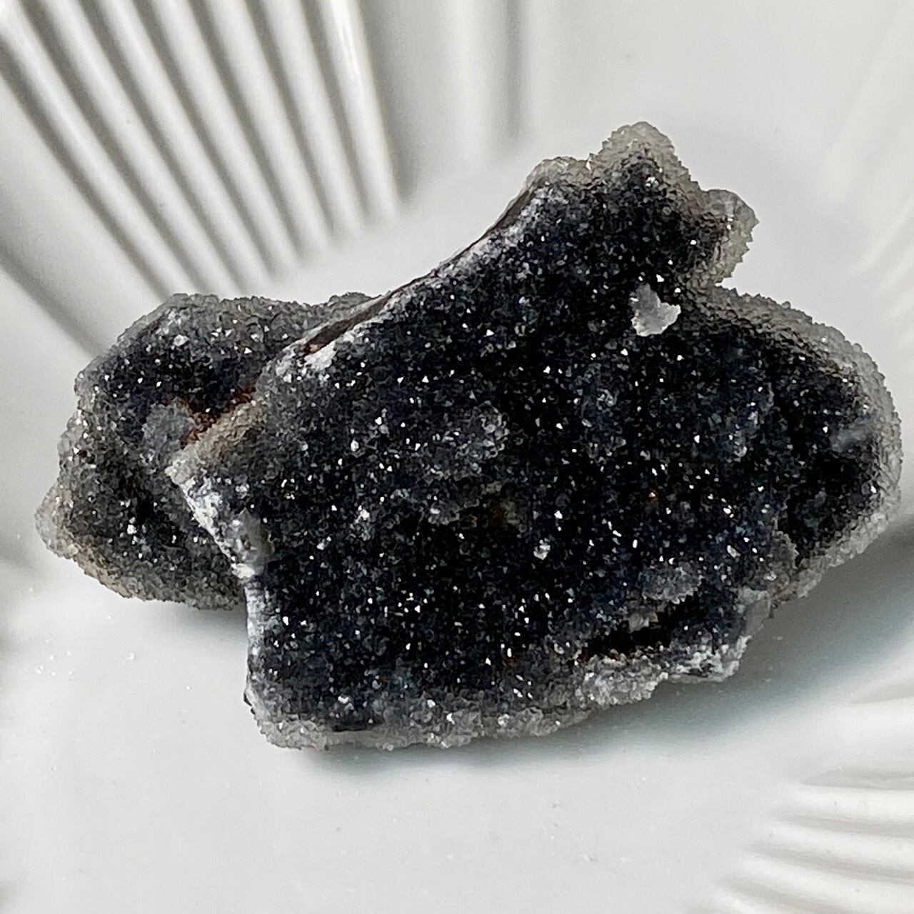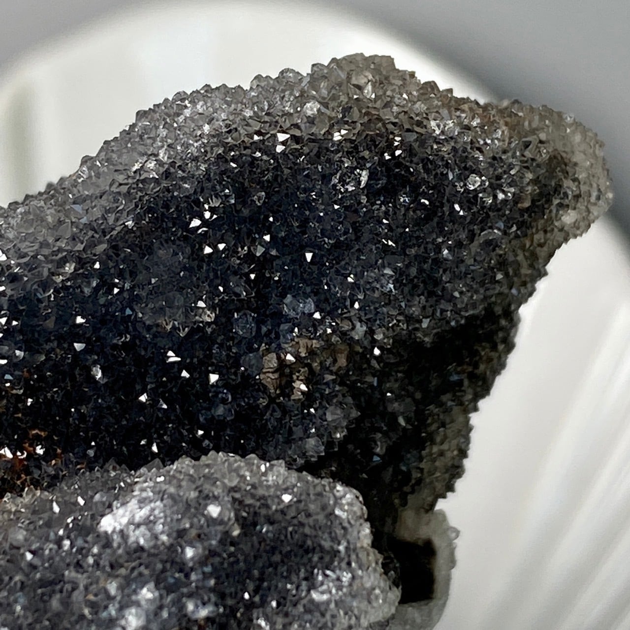 深いグレーの色味に、まるでところどころ粉砂糖がまぶしてある様な感じで、全体的に眩くキラキラと光を放っています。画像でその眩さが表現できず残念です。
