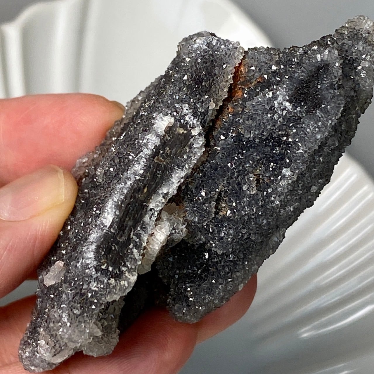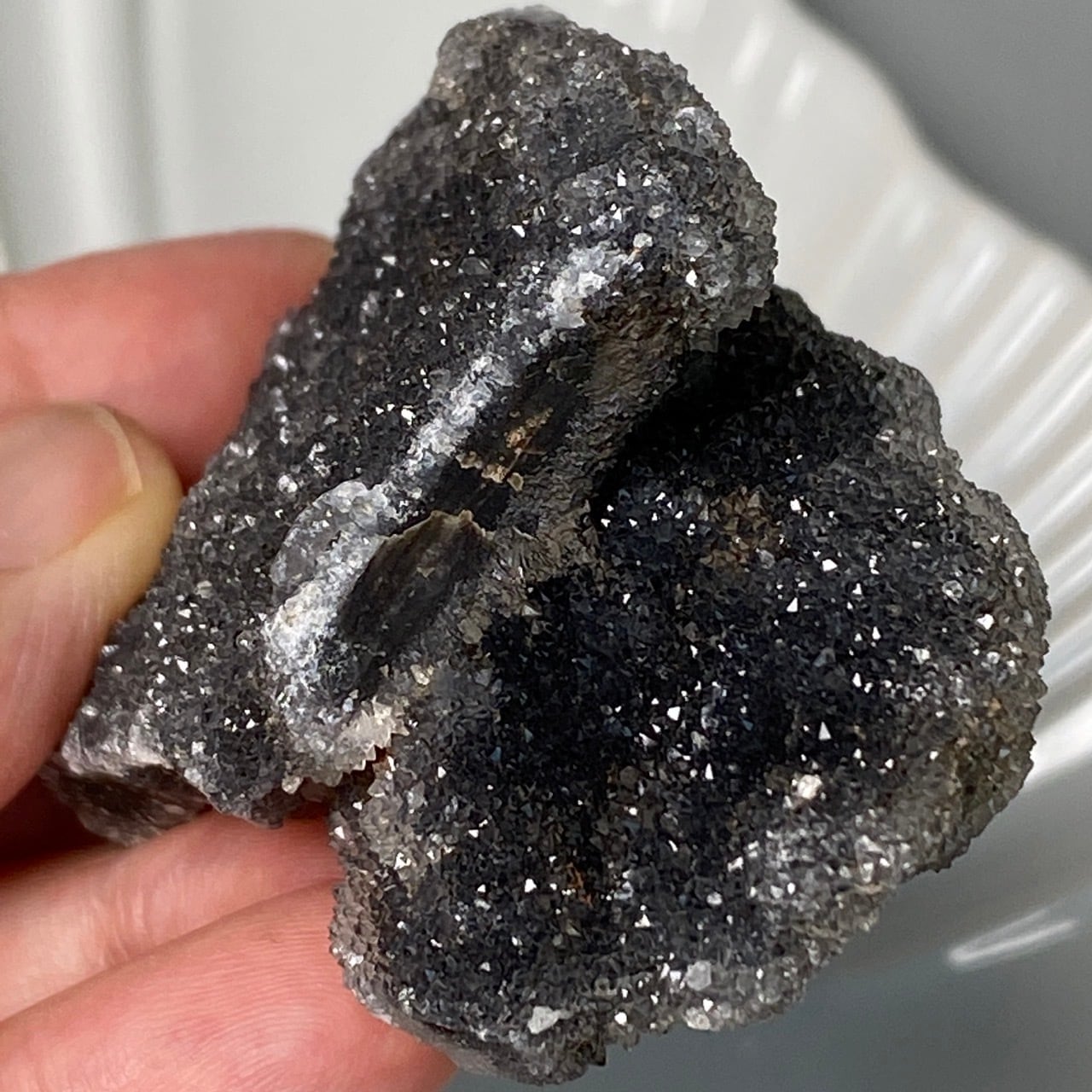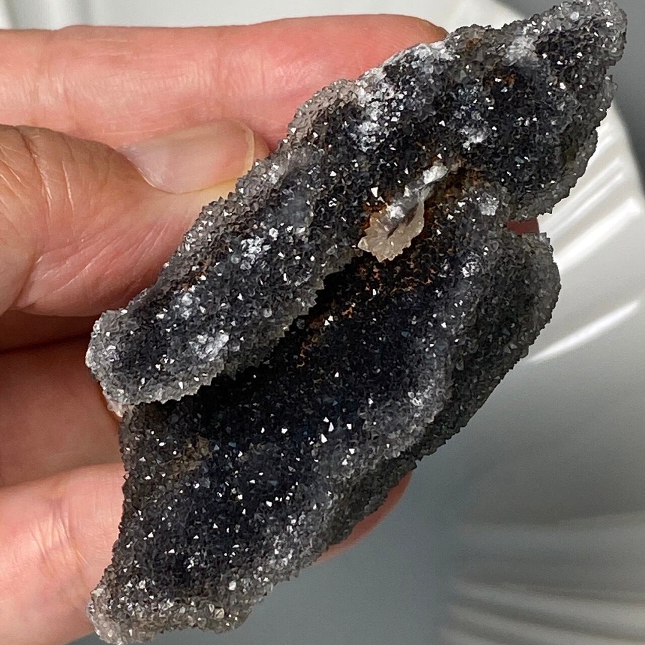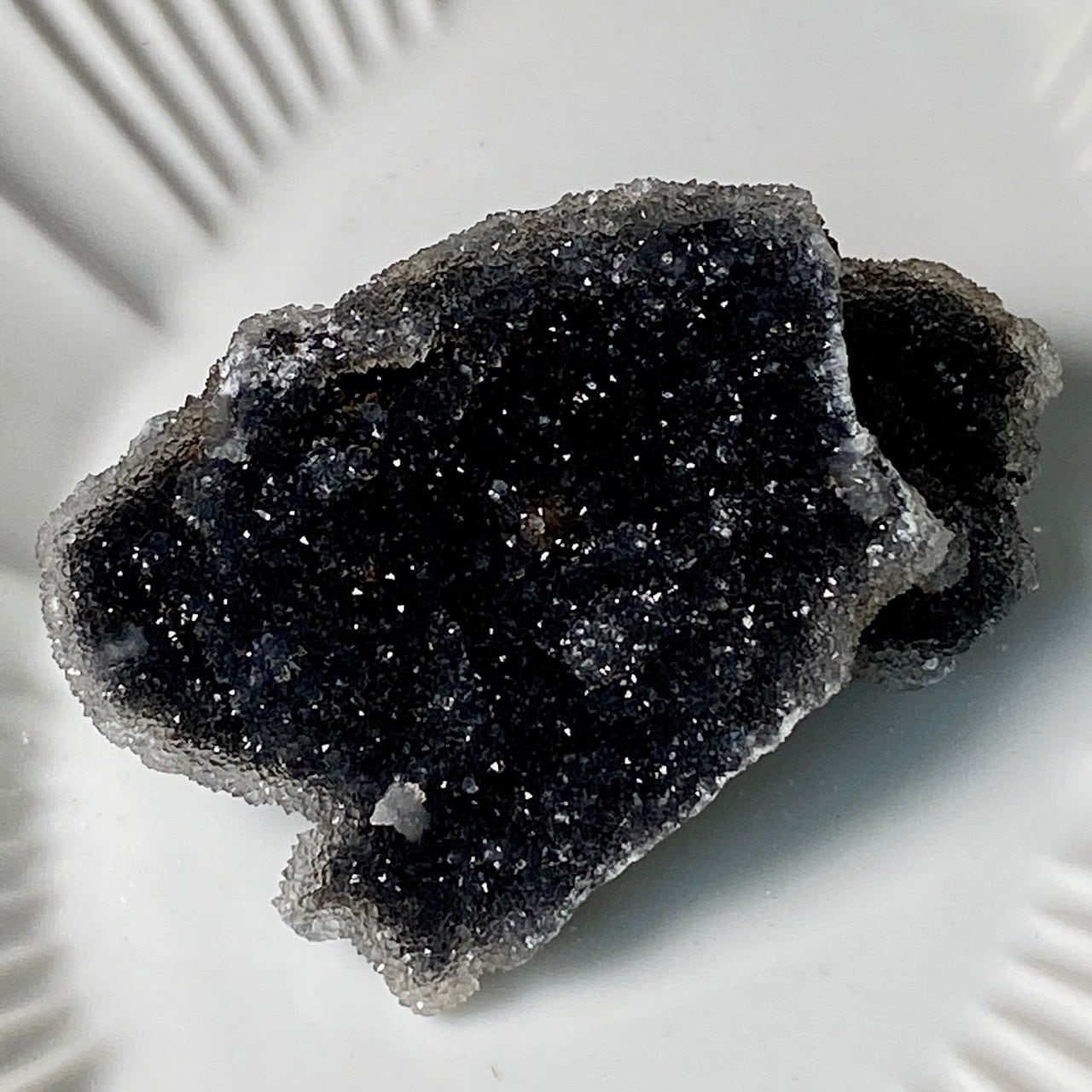 深いグレーの色味に、まるでところどころ粉砂糖がまぶしてある様な感じで、全体的に眩くキラキラと光を放っています。画像でその眩さが表現できず残念です。
