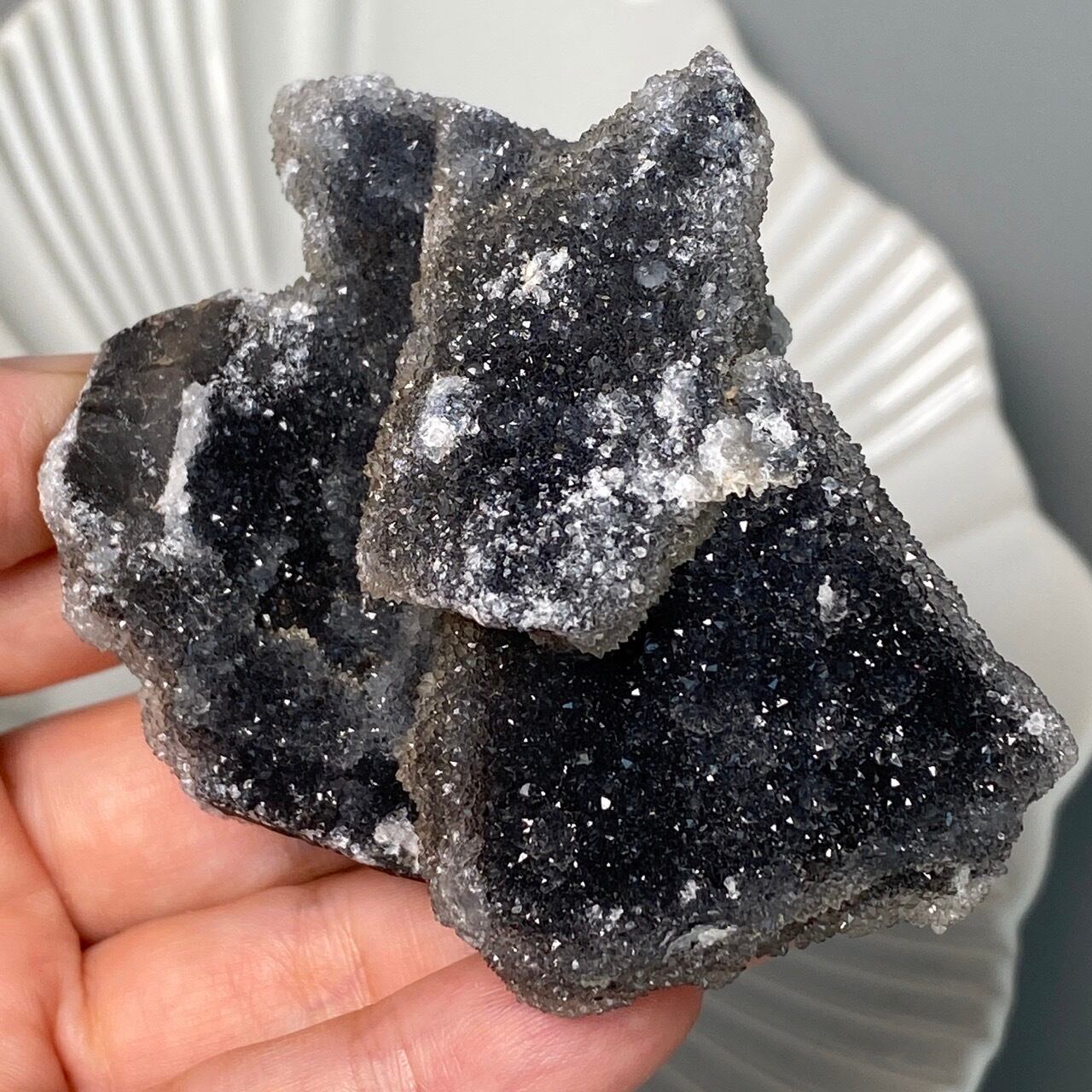 深いグレーの色味に、まるでところどころ粉砂糖がまぶしてある様な感じで、全体的に眩くキラキラ光を放っています。画像で表現できないのが残念です。