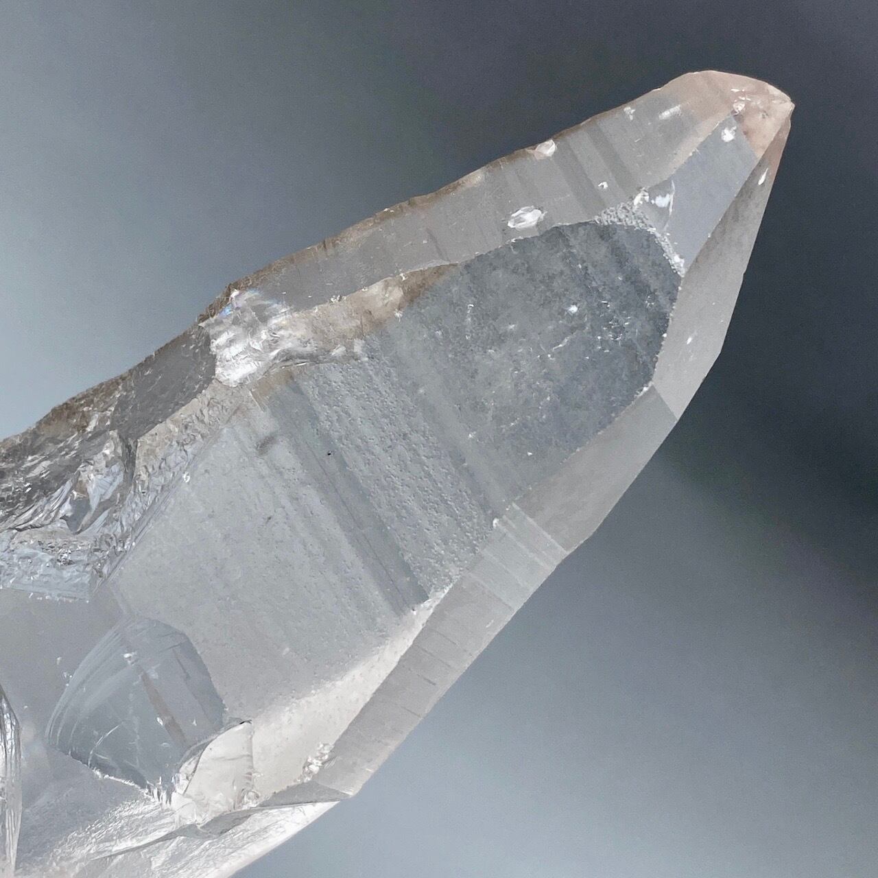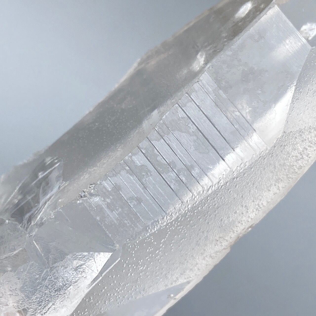 このレムリアンシードクリスタルの最大の特徴は、柱面のレムリアンリッジと言われるバーコードを思わせる条線(横線)です。