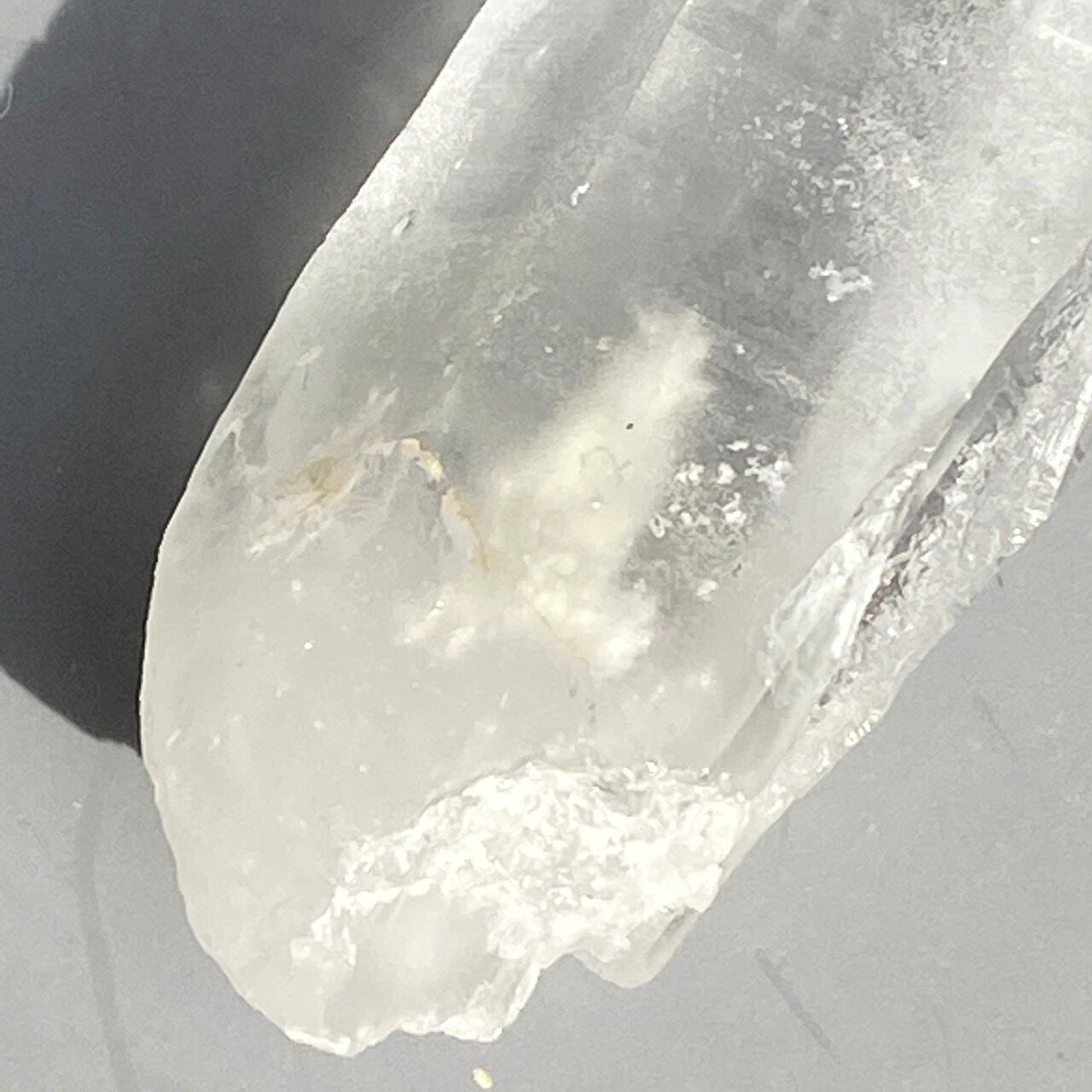 このピースの内部(下部)にはエクリュ色の可愛い内包物があります。透過性もあるため、その内包物を愛でるのも良いですし、握った際に手の収まりが良いサイズ感です。レムリアンシードに惹かれる方はこの機会にお是非求め下さい。