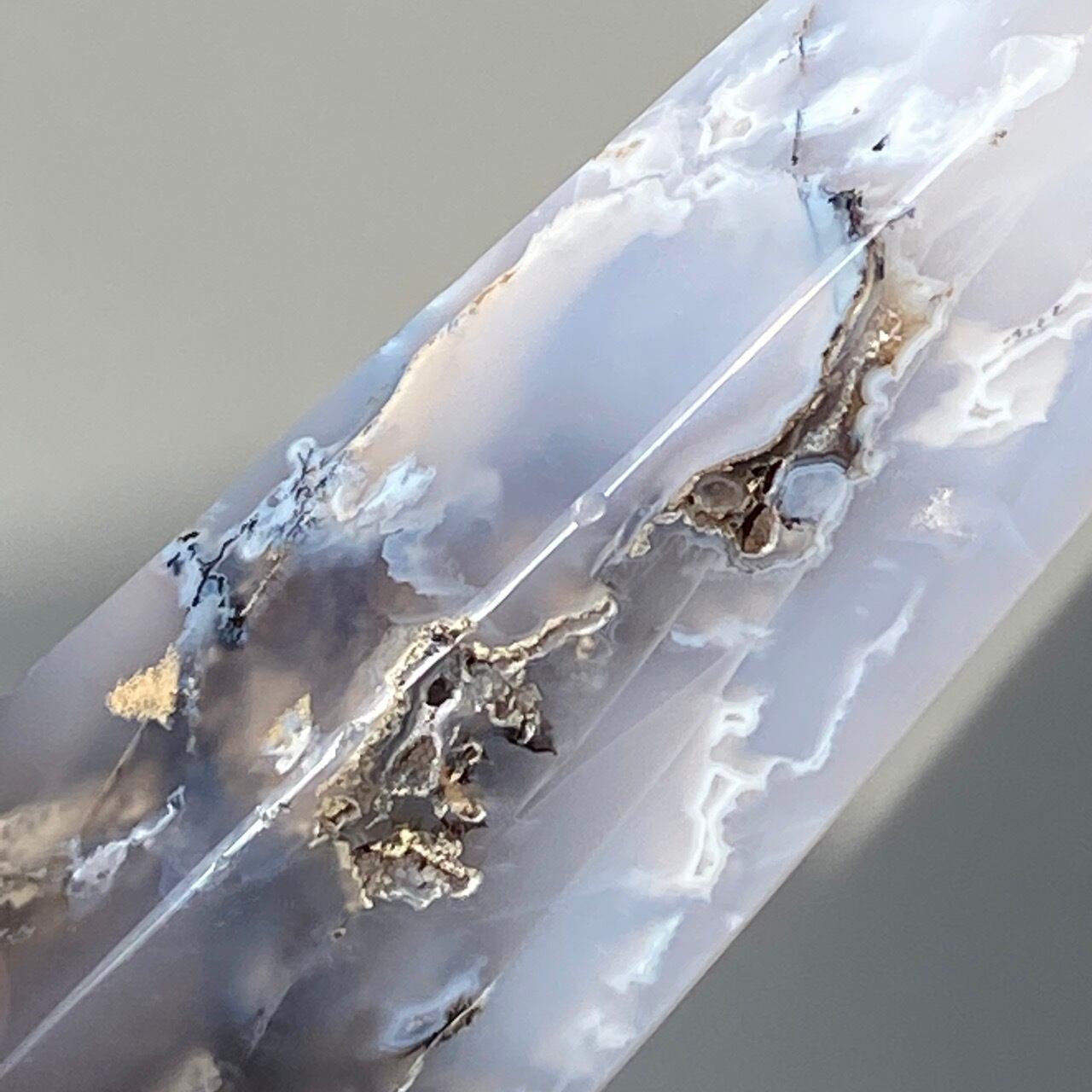 所々にアゲート特有のクラックや穴、そして石質な部分が露出している部分がございます。この石の魅力として捉えて下さる方、ご購入をお願いします。