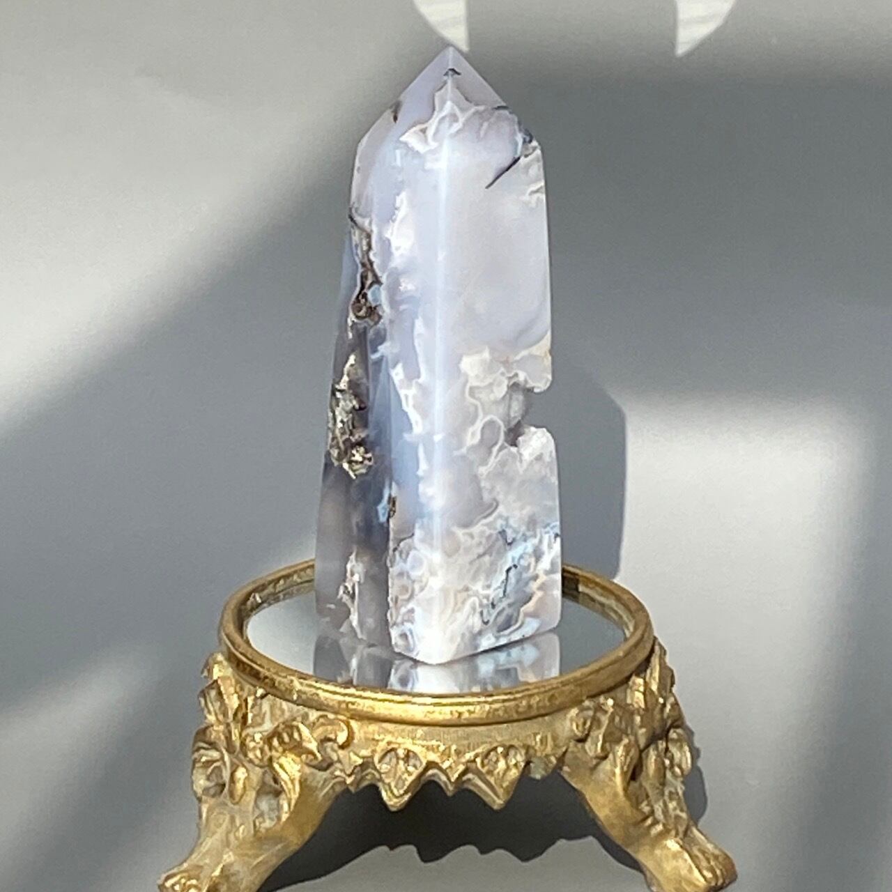 〈デンドライト入り〉ホワイトアゲート・タワー Dendritic White Agate Tower TW1256