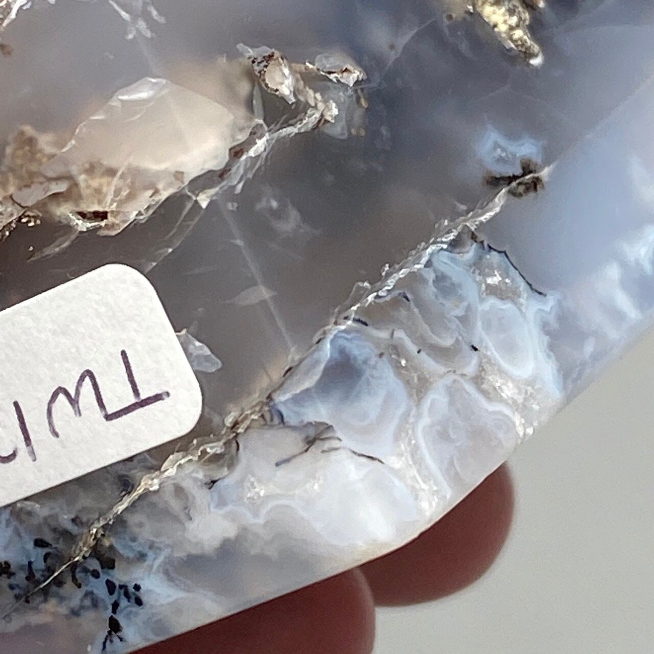 白をベースに、ミックスされているインディゴ/パープル系の色味が清涼感を添えているだけで無く、北欧的なイメージを醸し出しているのがポイント。実際はトロピカルな気候のインドネシアで採掘・カット・研磨されており、この様な愛らしい姿で目の前に現れてくれくれました。