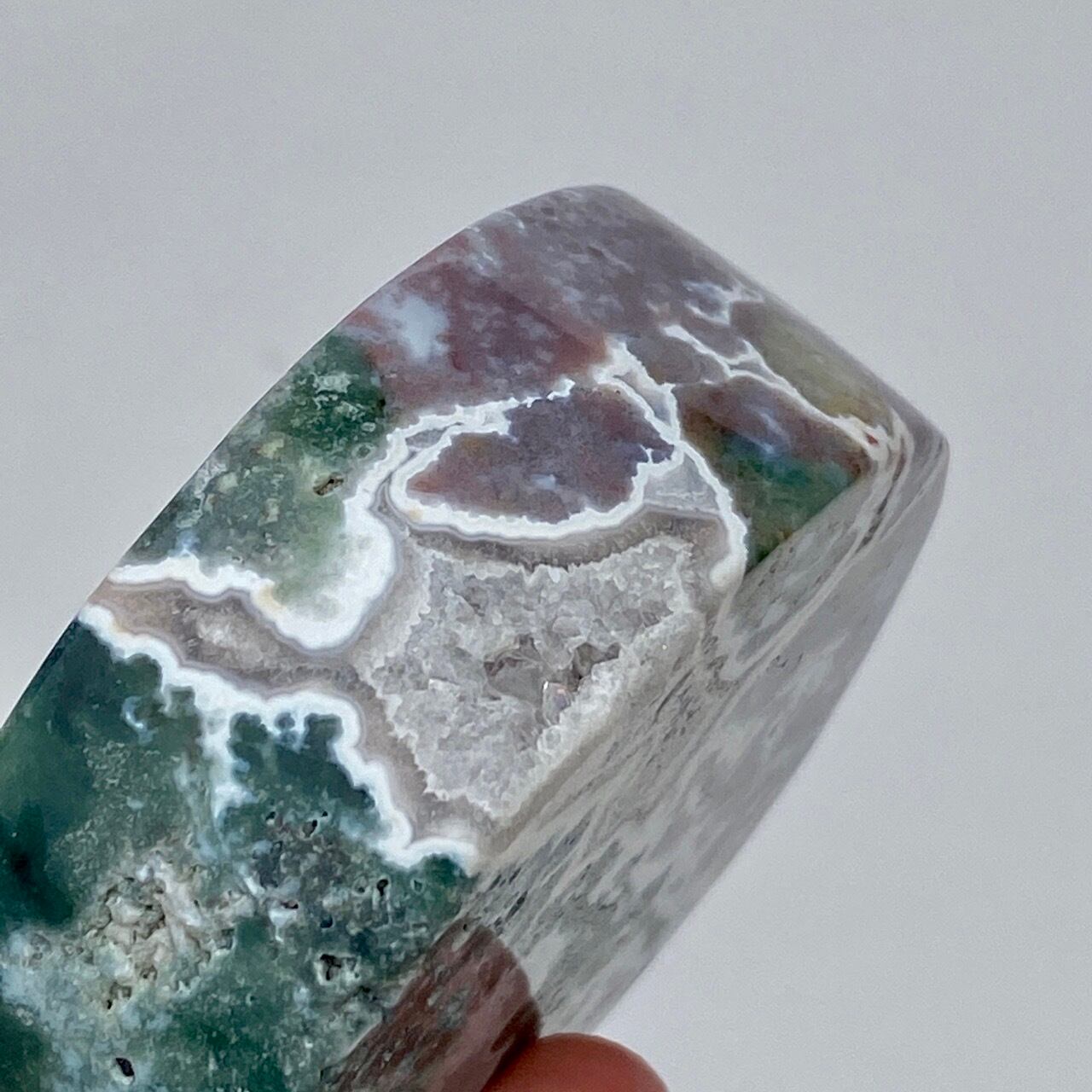 色味はパープル+白+グリーン系で、オーシャーンジャスパーを思わせます。