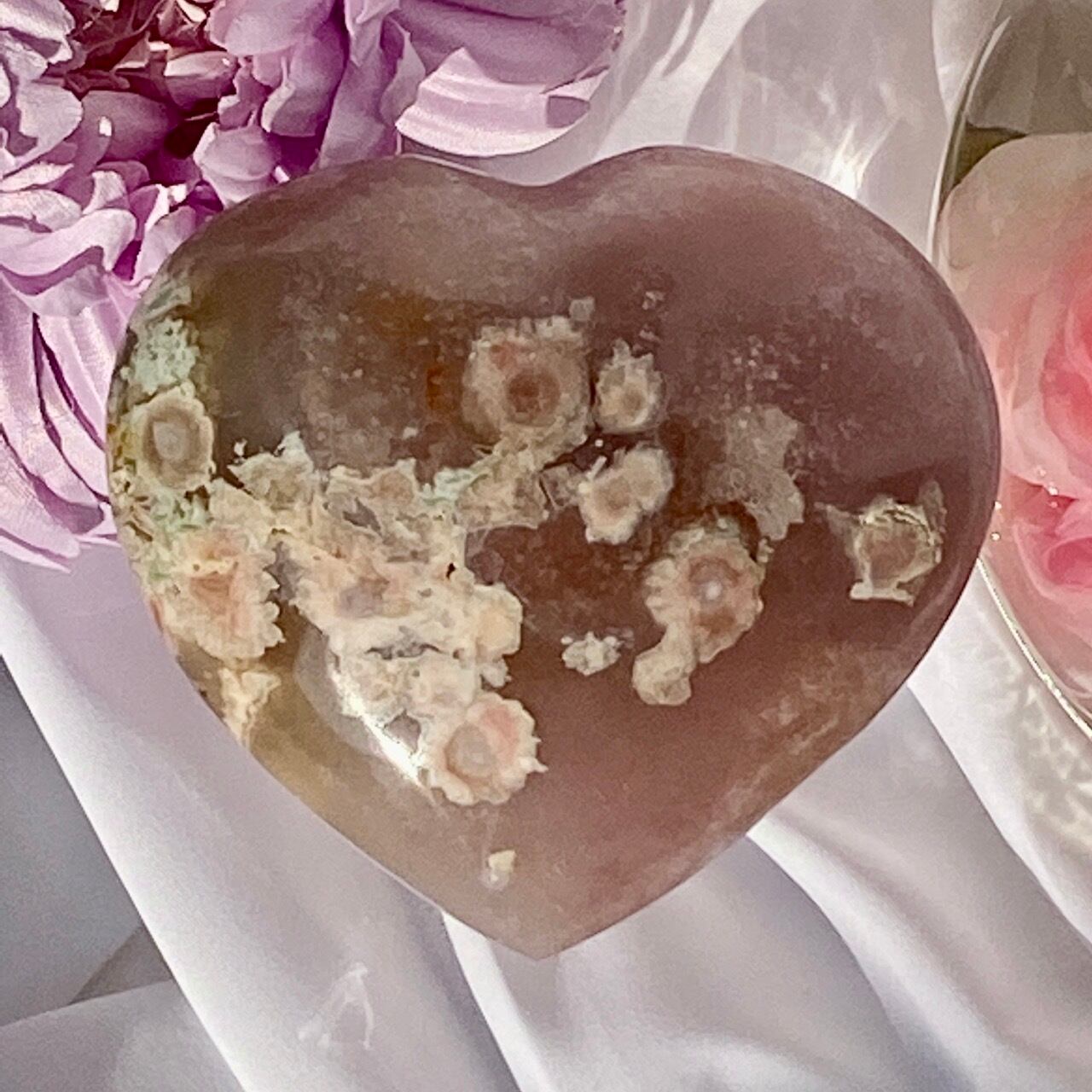 【W77mm】フラワーアゲートのハート Flower Agate Heart AC3234