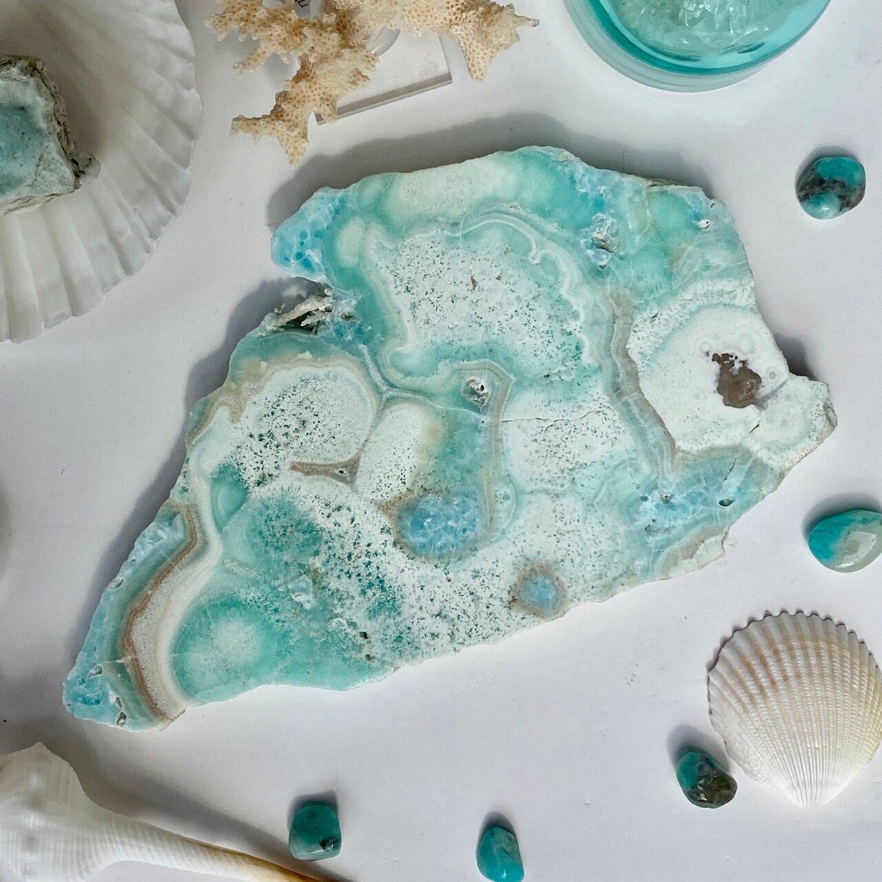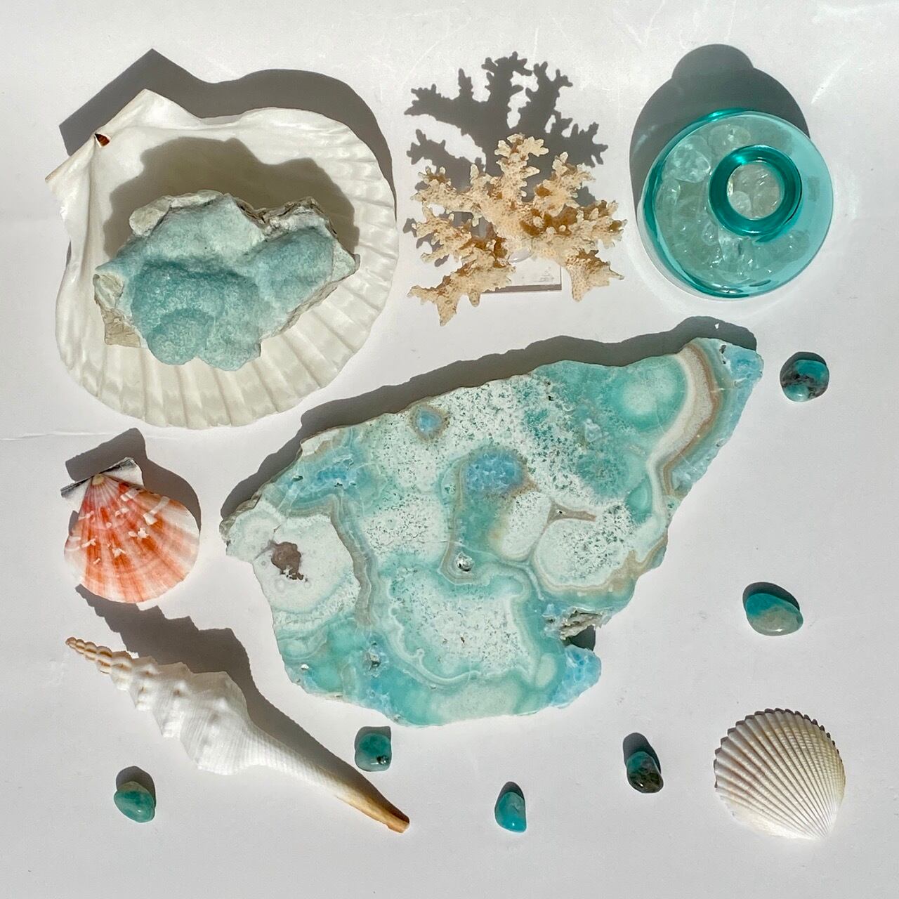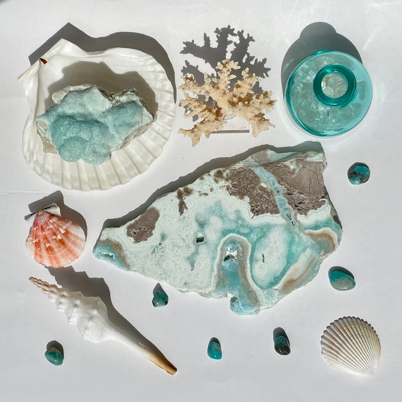 貝や珊瑚、マーメイドやアクセサリー、そして他の石達を置いても可愛いです。