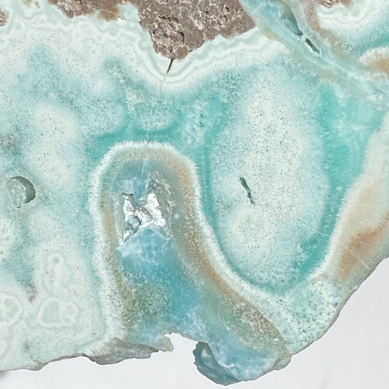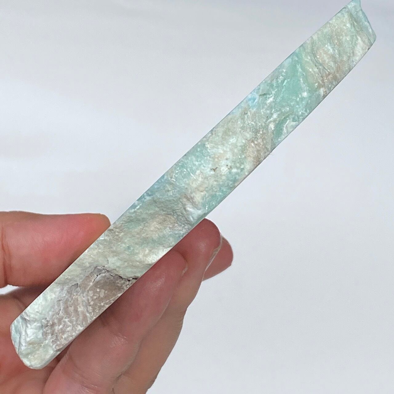 尚、厳重に梱包いたしますが、この天然石の特性・構造上、輸送中に部分的に破損を起こす場合がございます。ブルーアラゴナイトは、雲母の様に、ポロポロと粉が落ちてくる事がありますので、ハンドリングにはご注意下さい。