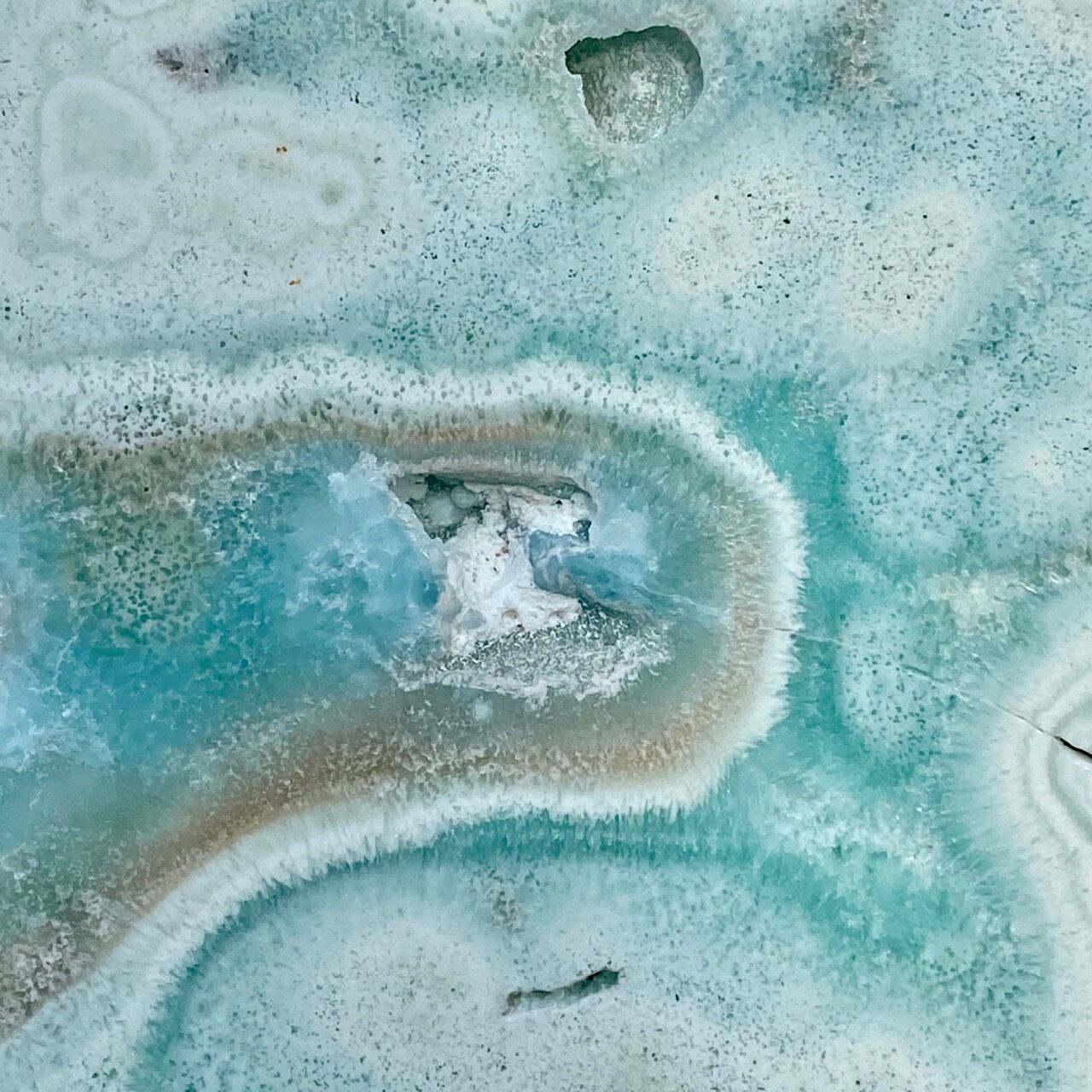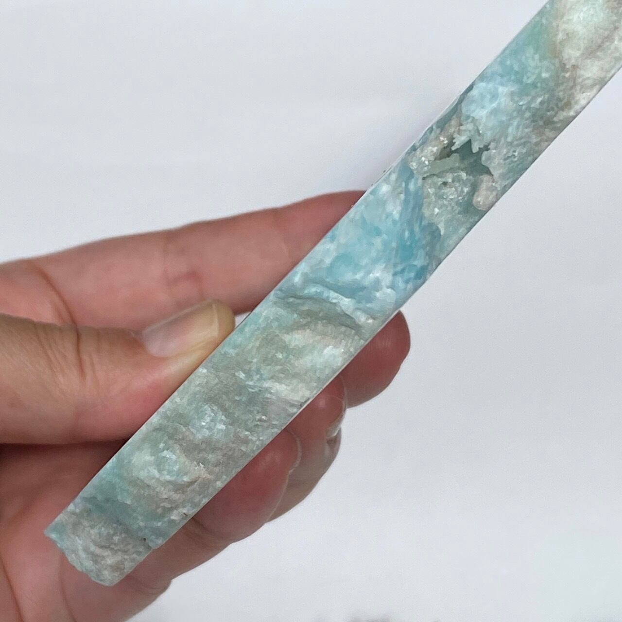 ブルーアラゴナイト特有のクラック(ひび)や穴・溝・凹凸等がございます。画像でご確認下さい。