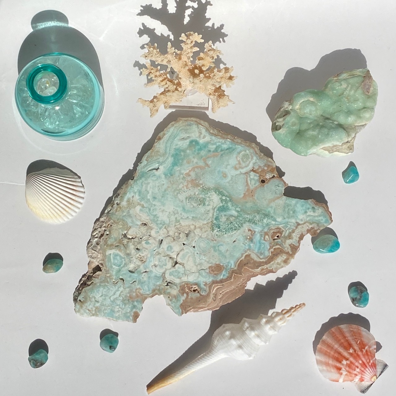貝や珊瑚、マーメイドやアクセサリー、そして他の石達を置いても可愛いです。