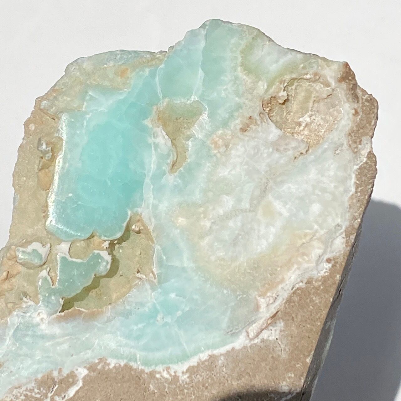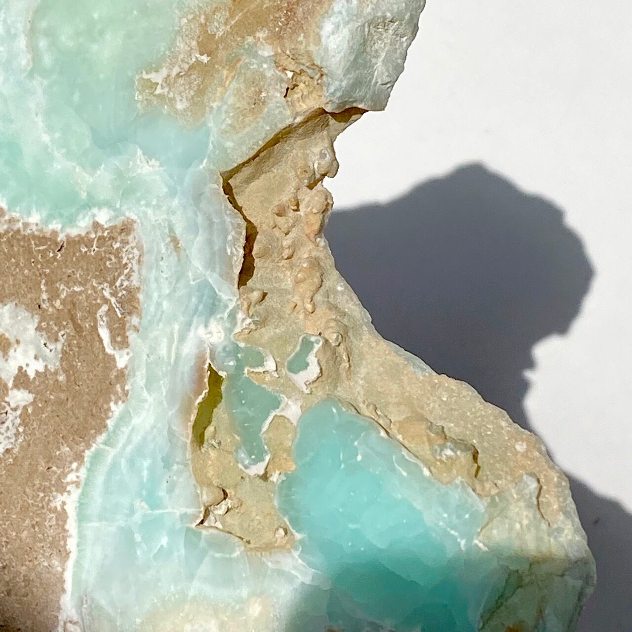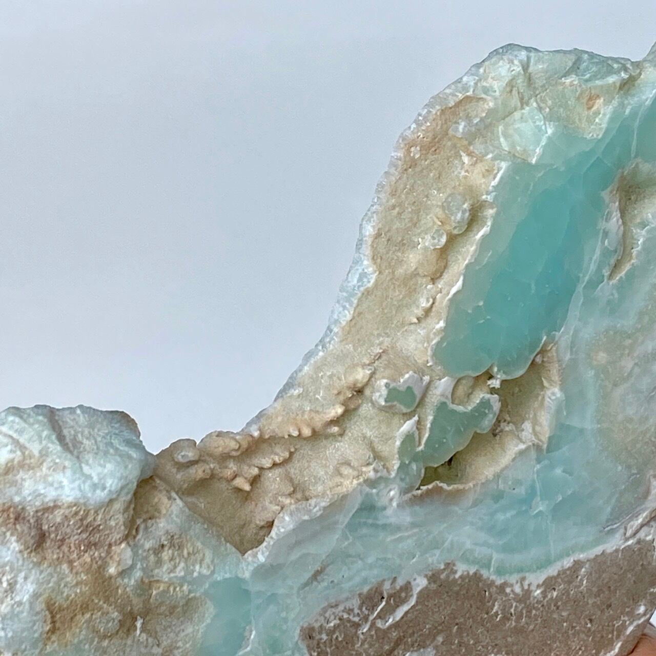 尚、厳重に梱包いたしますが、この天然石の特性・構造上、輸送中に部分的に破損を起こす場合がございます。ブルーアラゴナイトは、雲母の様に、ポロポロと粉が落ちてくる事がありますので、ハンドリングにはご注意下さい。
