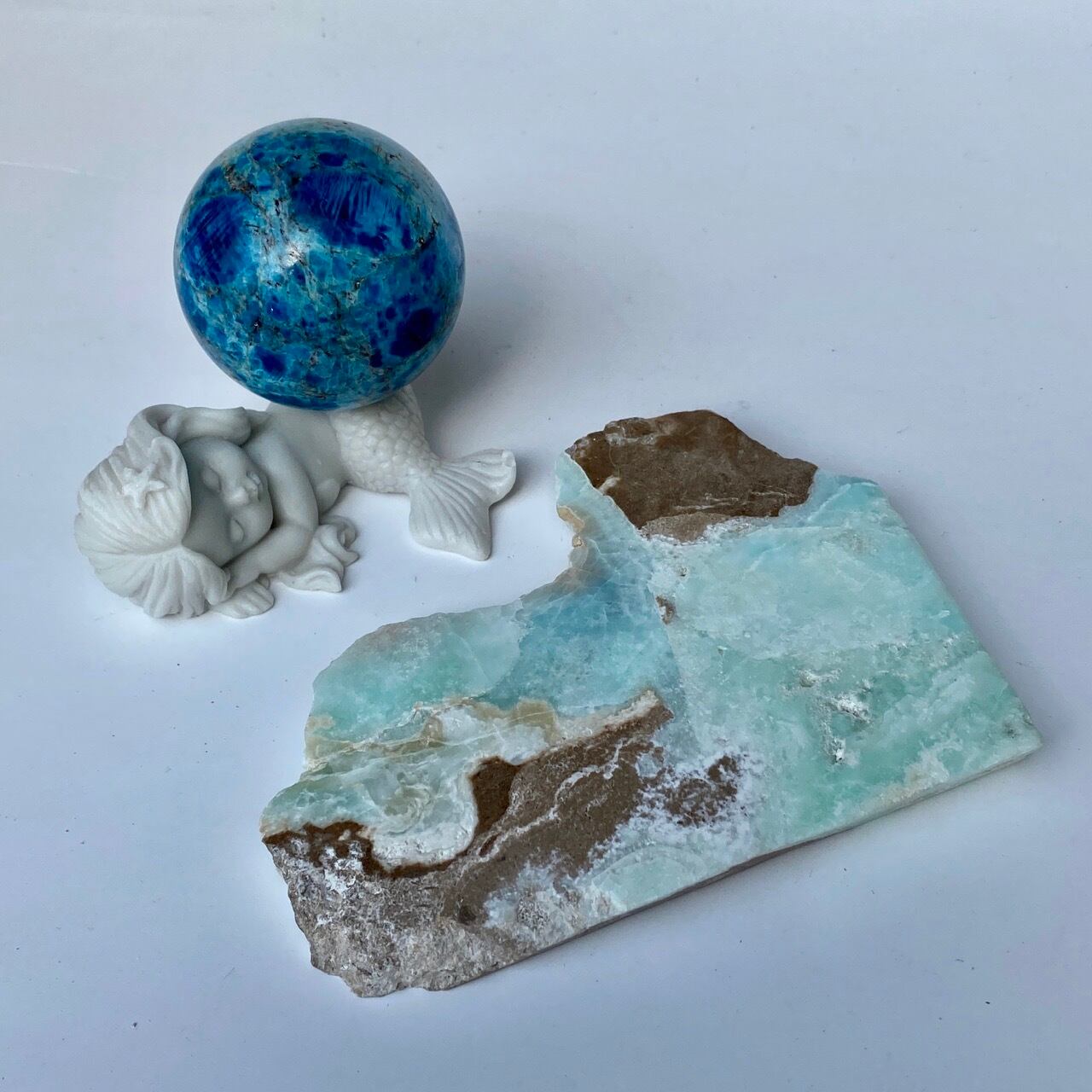 ブルーアラゴナイトは、感情体を落ち着かせ/癒し、心の底に隠された本当の気持ちを表に出すサポートをすると言われています。海外ではヒーラーさんに最適とも。