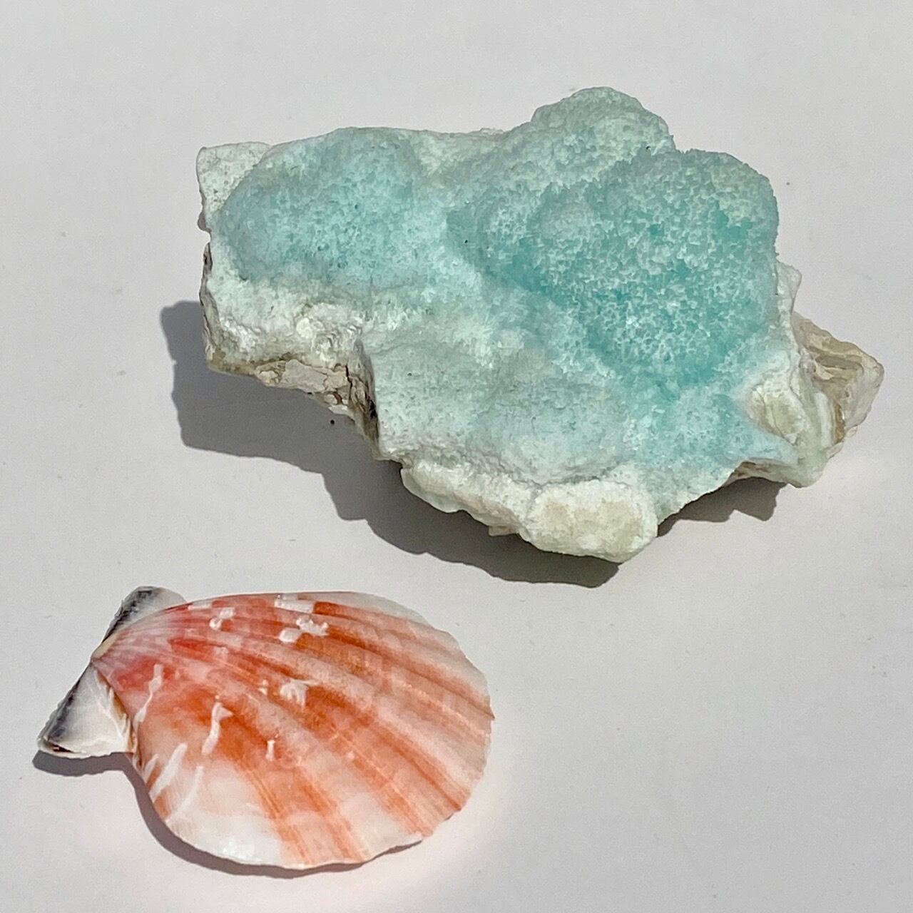 ブルーアラゴナイトは、感情体を落ち着かせ/癒し、心の底に隠された本当の気持ちを表に出すサポートをすると言われています。海外ではヒーラーさんに最適とも。