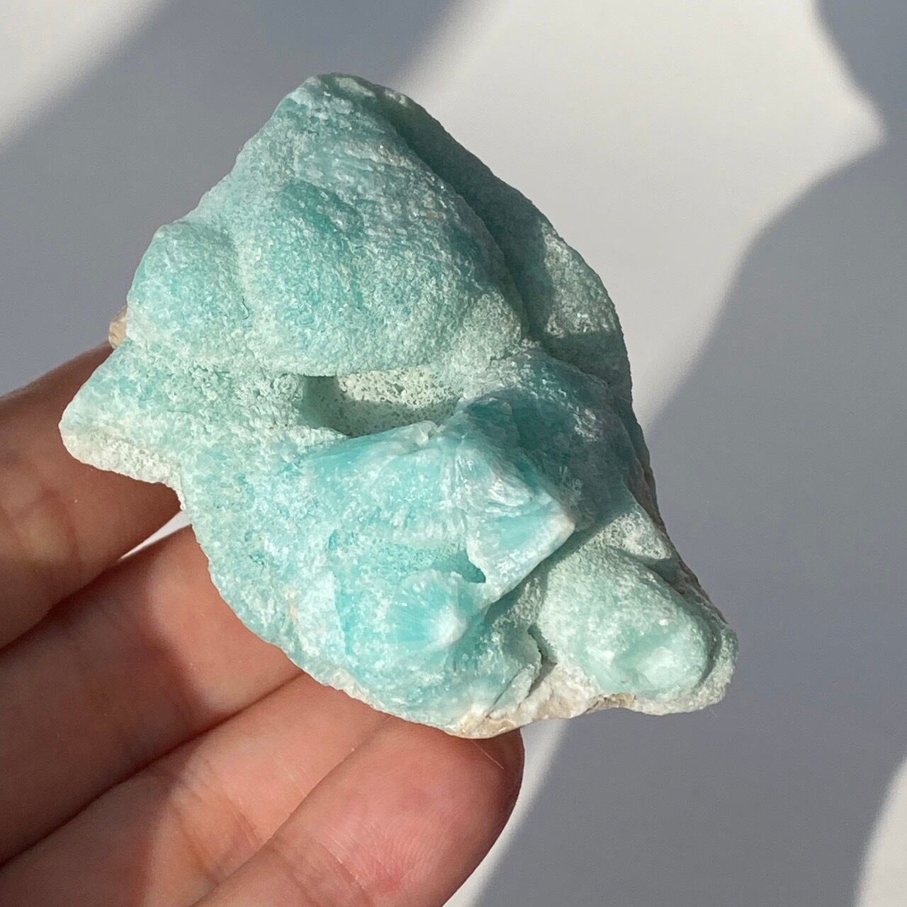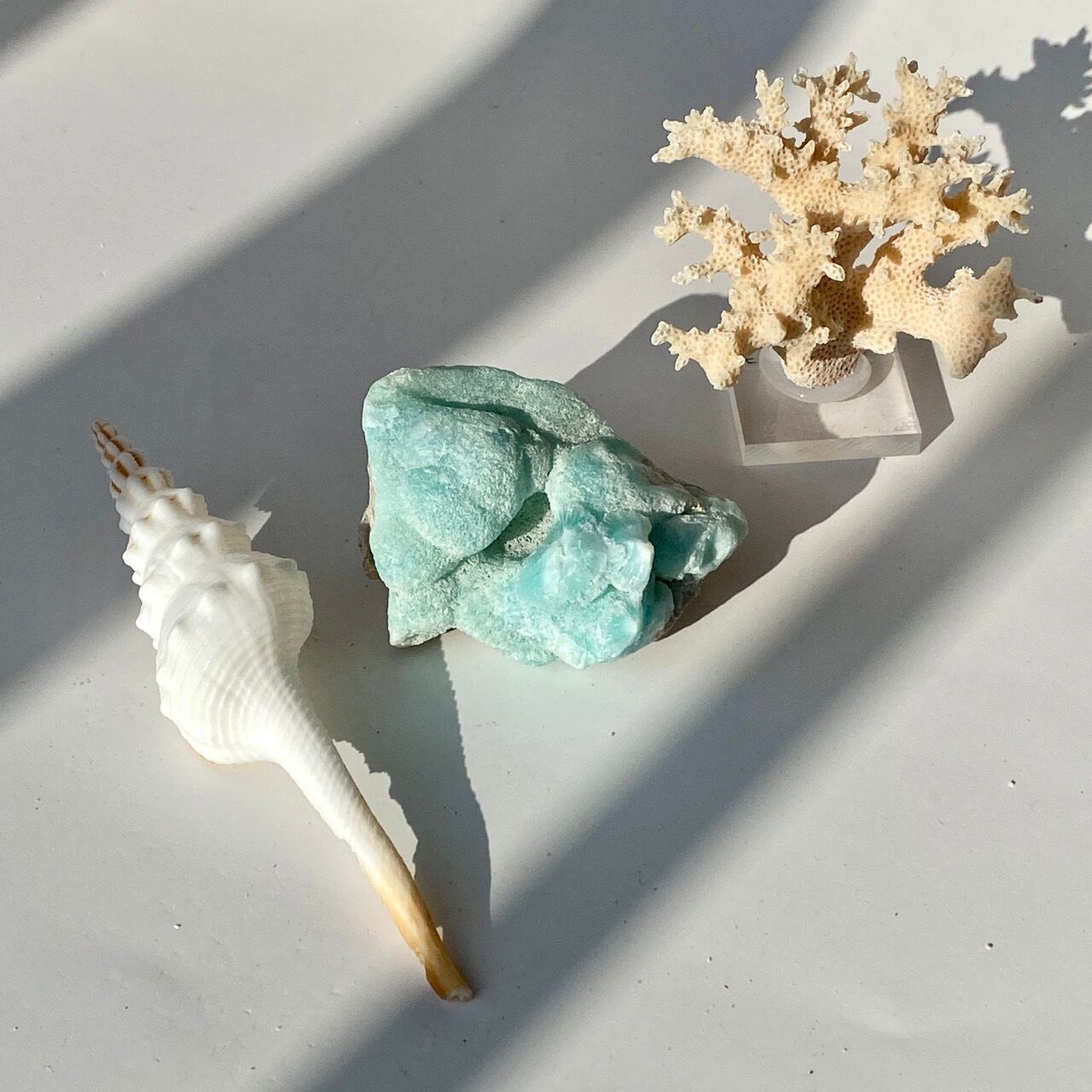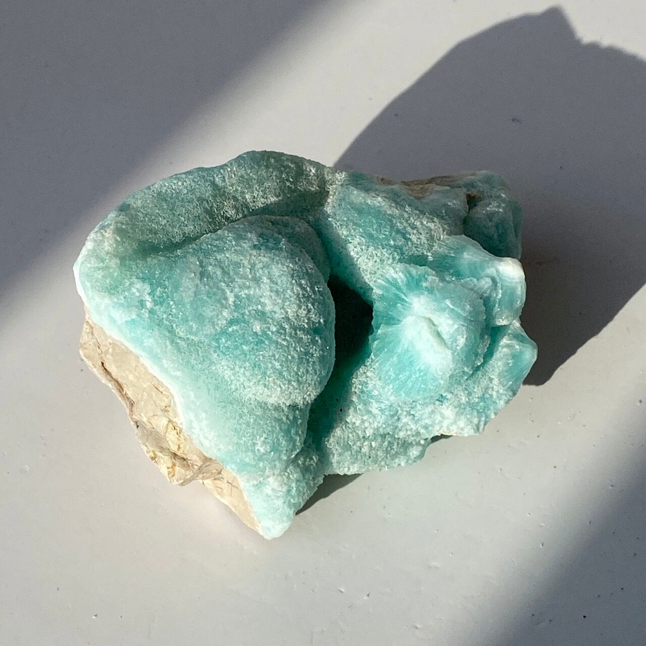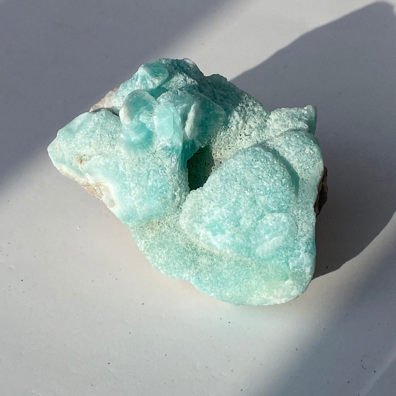 ブルーアラゴナイトは、感情体を落ち着かせ/癒し、心の底に隠された本当の気持ちを表に出すサポートをすると言われています。海外ではヒーラーさんに最適とも。