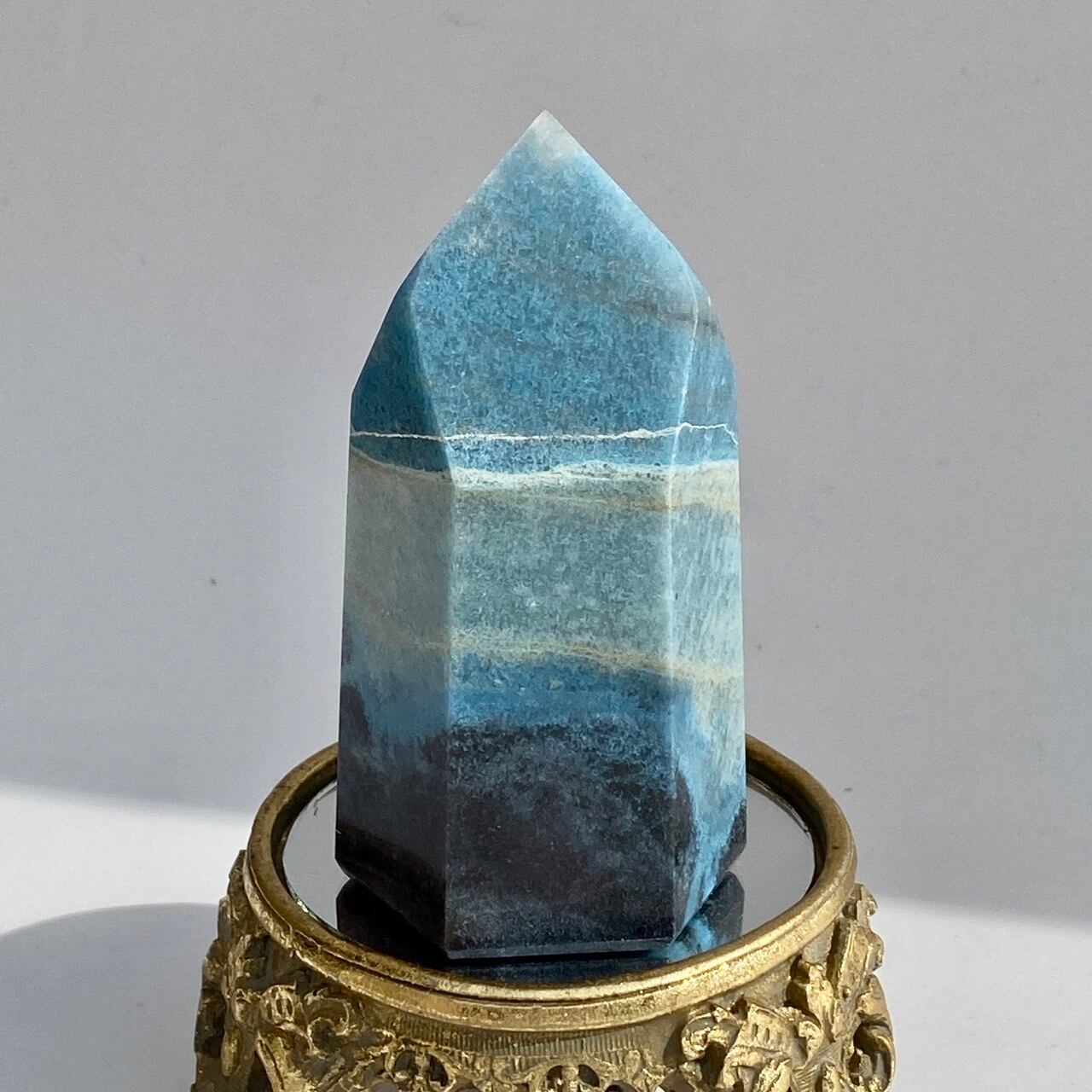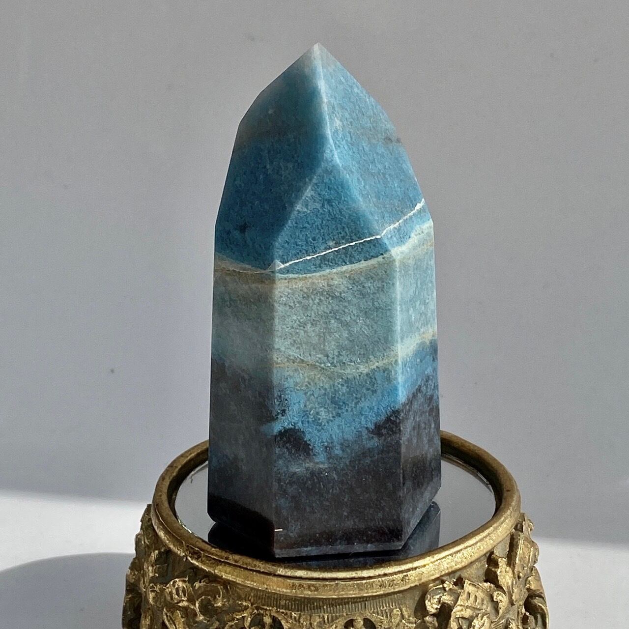 トロレアイトインクォーツ(トロール石)は主にクォーツとブルーの濃淡であるラズライトとスコルザライトら成る石です。その波動の高さゆえ海外ではascention stoneと呼ばれ、高次との繋がりを促すと言われています。ヒーラーやライトワーカーに最適と瞑想のお供等にも使用されます。