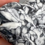 黒いドロマイト/グラファイト部分に見られる白っぽい(時には黄身がかった)マグネサイトの花(葉)のような模様が芸術的です。