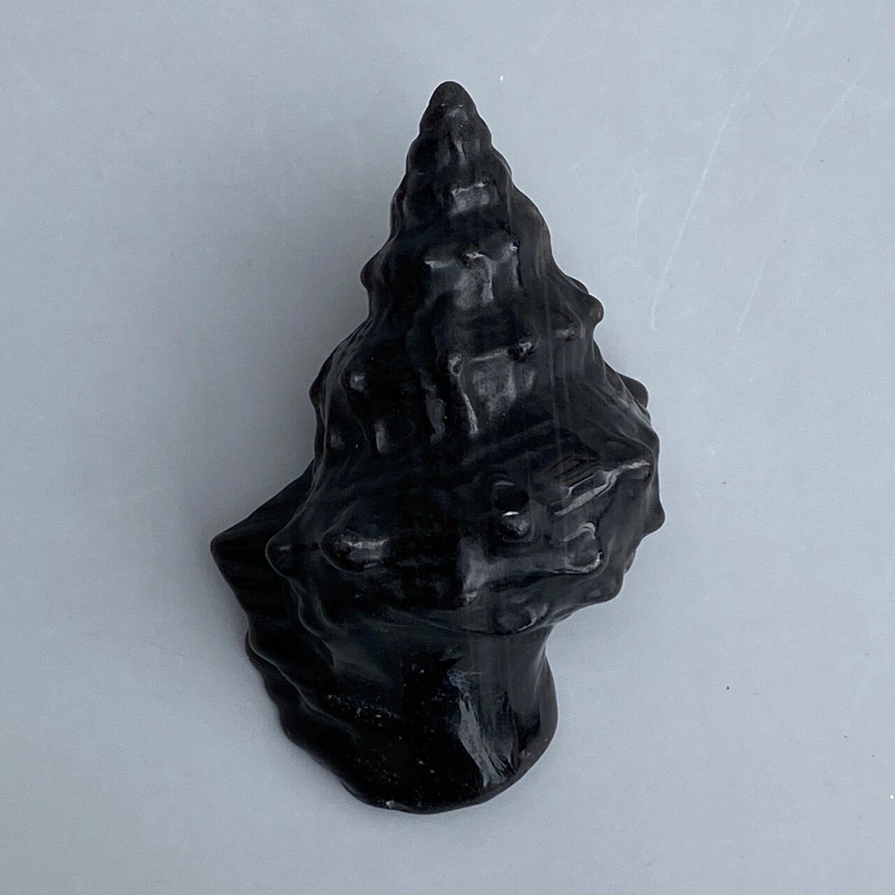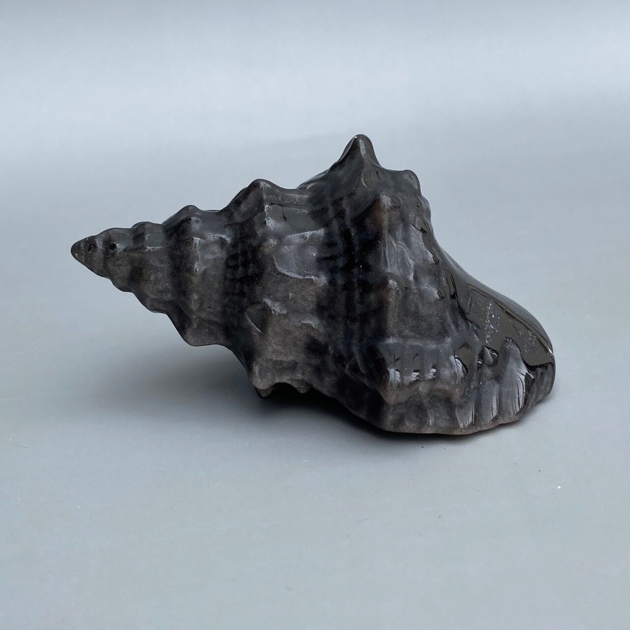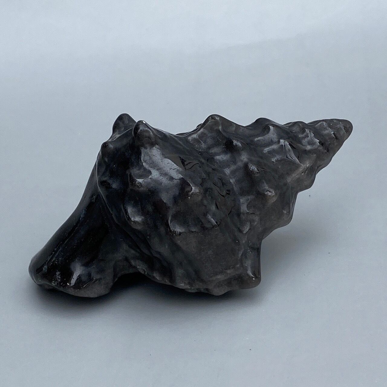 【シルバーシラー入】ブラックオブシディアン 貝の置物 Black Obsidian Conch Shell AC3063