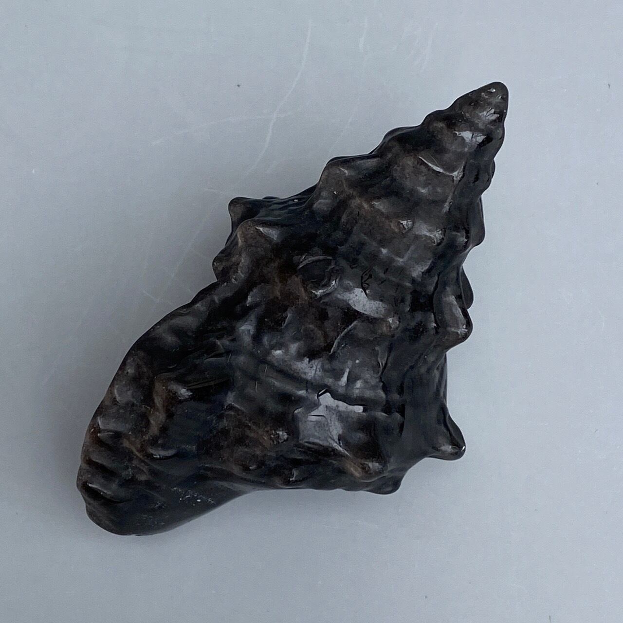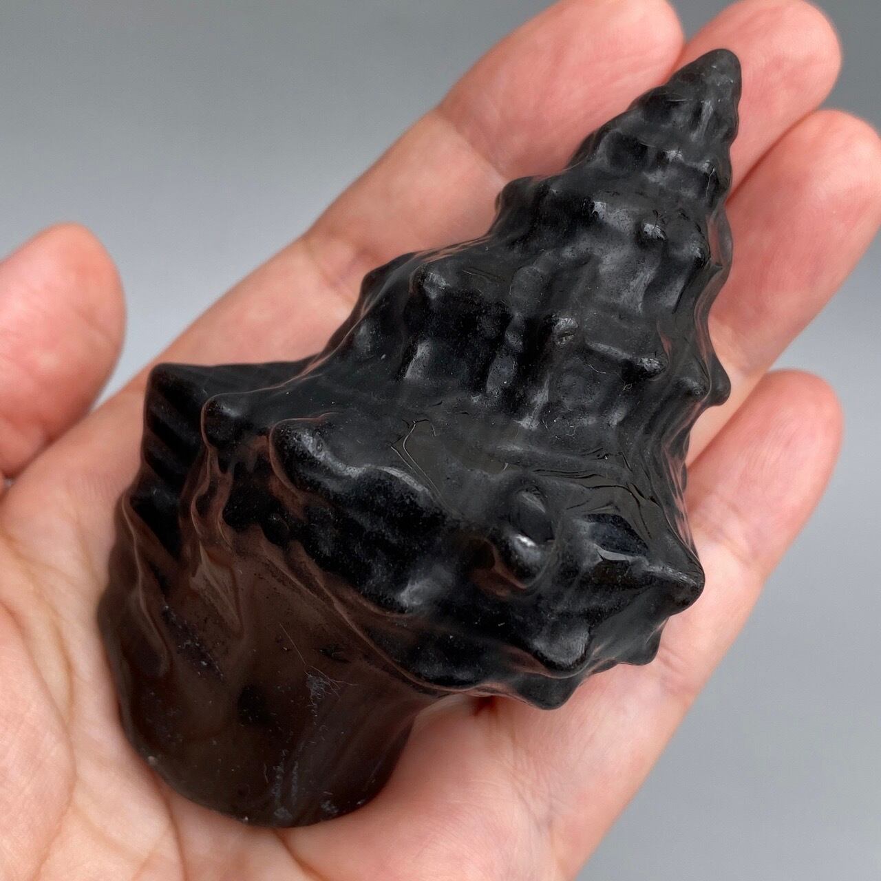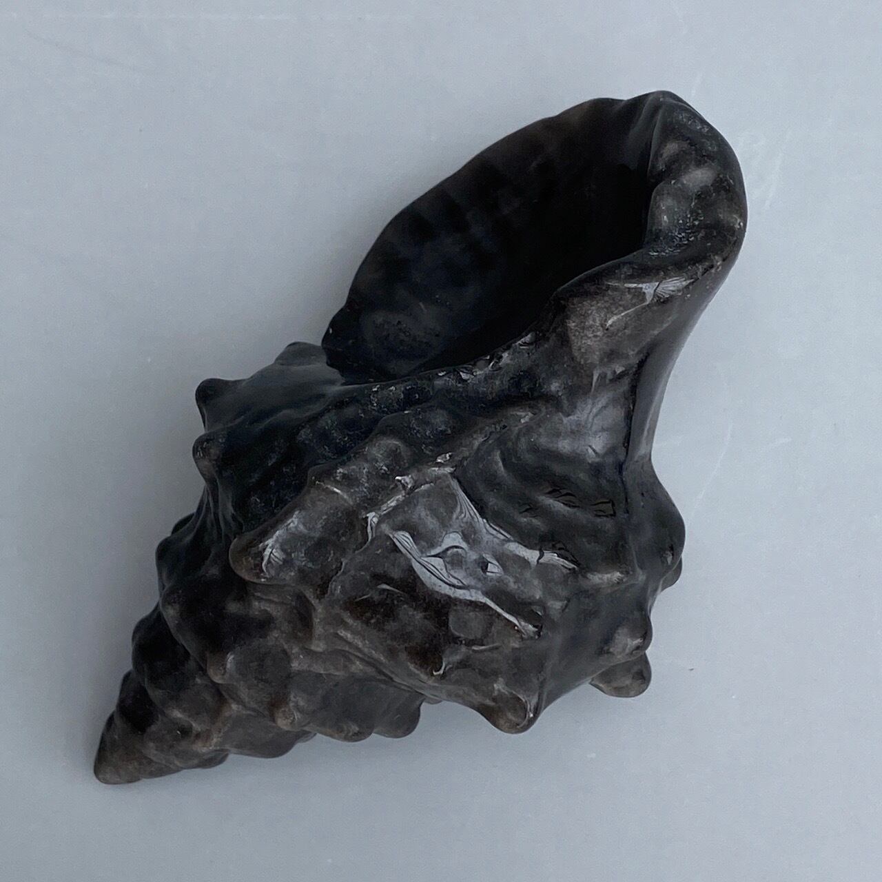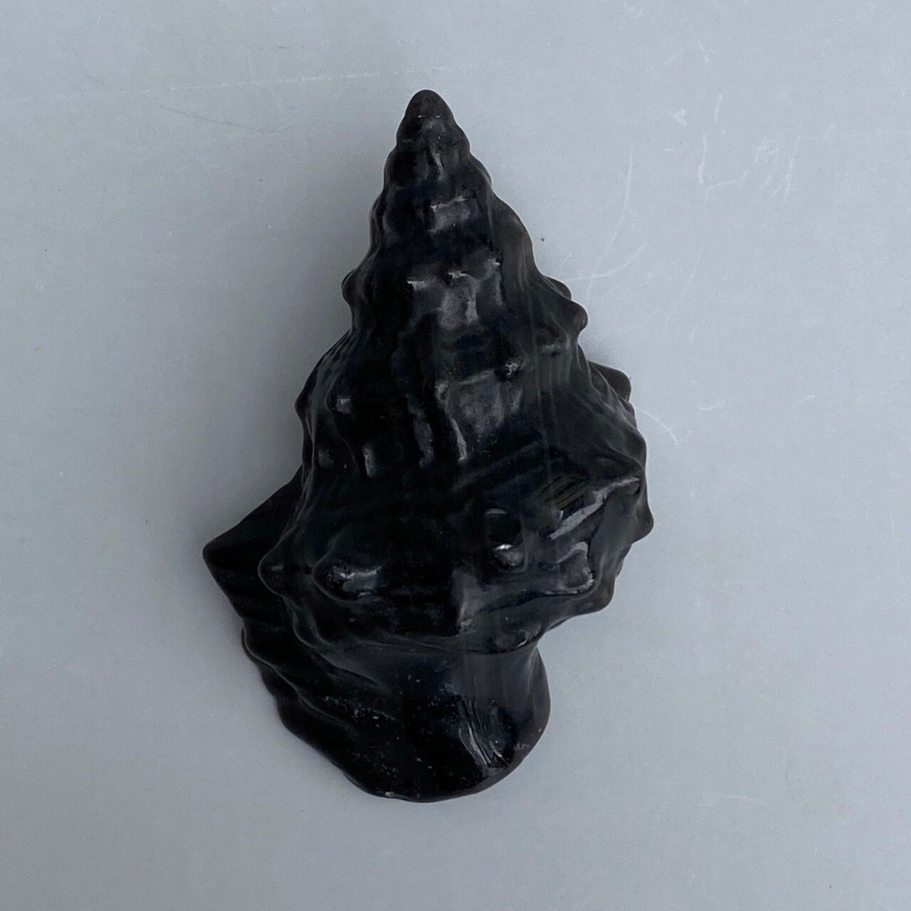 【シルバーシラー入】ブラックオブシディアン 貝の置物 Black Obsidian Conch Shell AC3063
