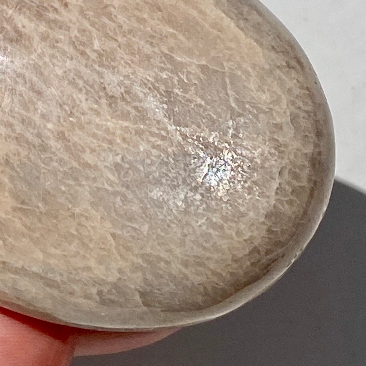 また、ムーンストーンにつき、両面に素敵な白いシラー(光のフラッシュ・輝き)入りです。