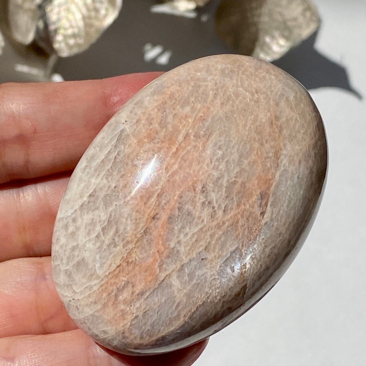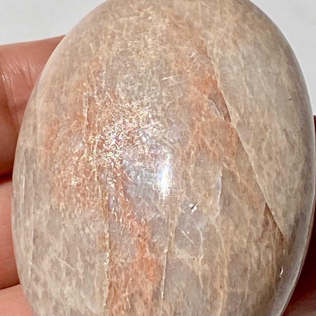 ピーチムーンストーンのパームストーン Peach Moonstone Palm Stone AC3205
