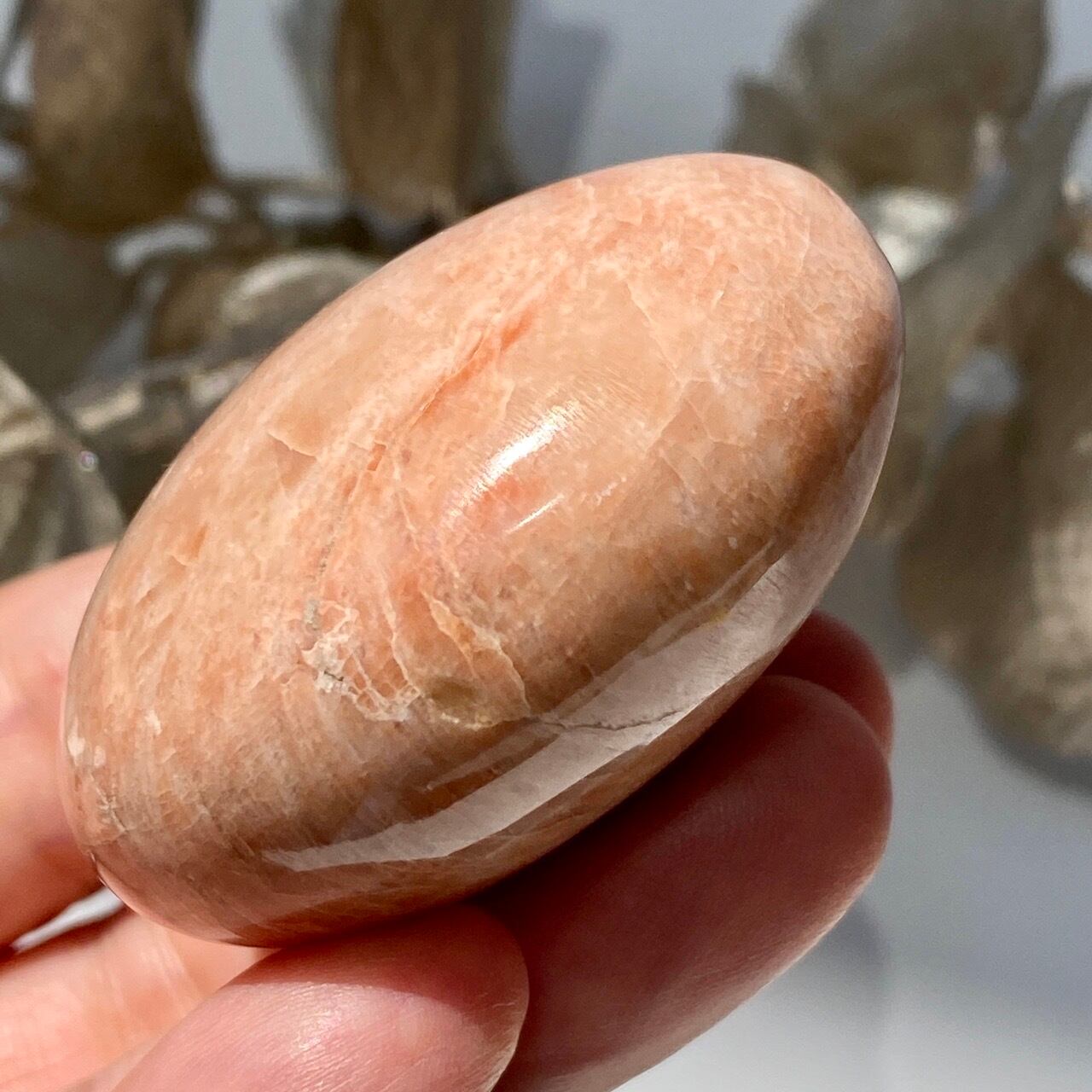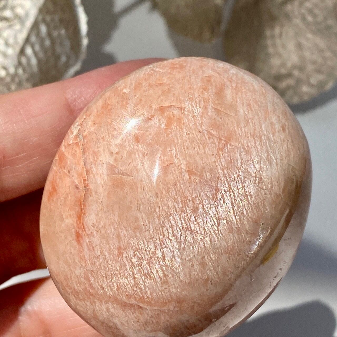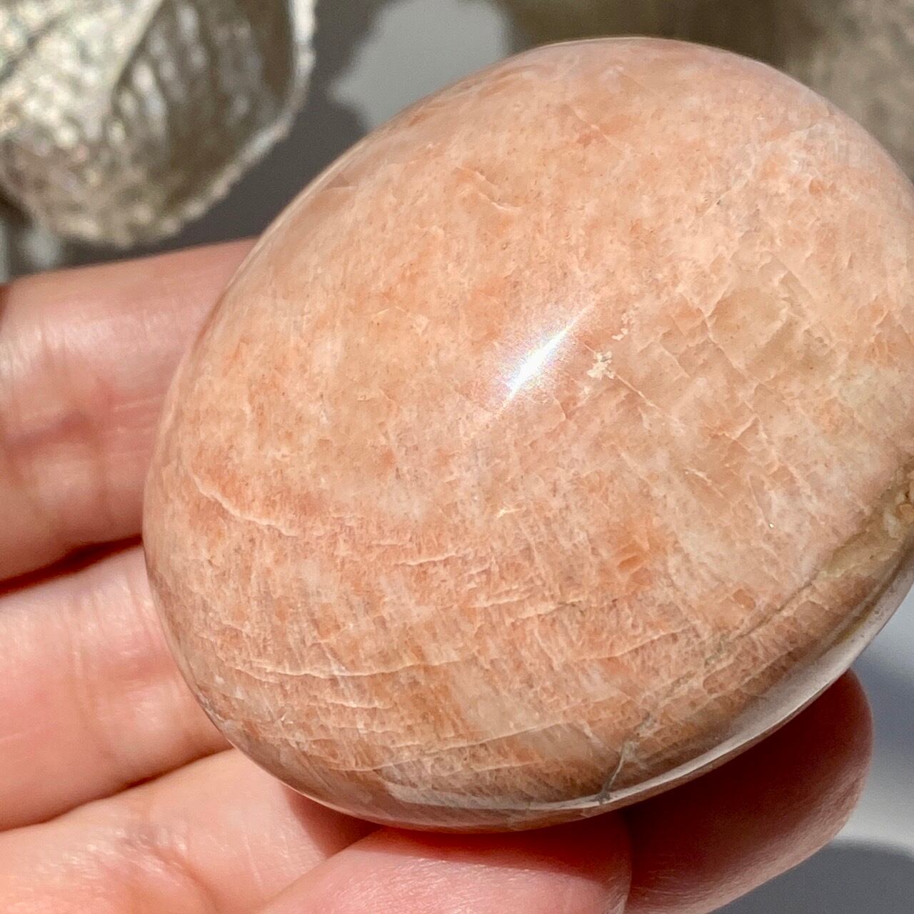 ピーチムーンストーンのパームストーン Peach Moonstone Palm Stone AC3232