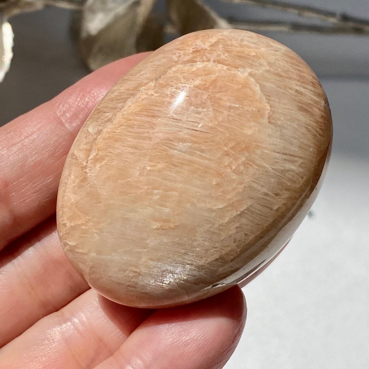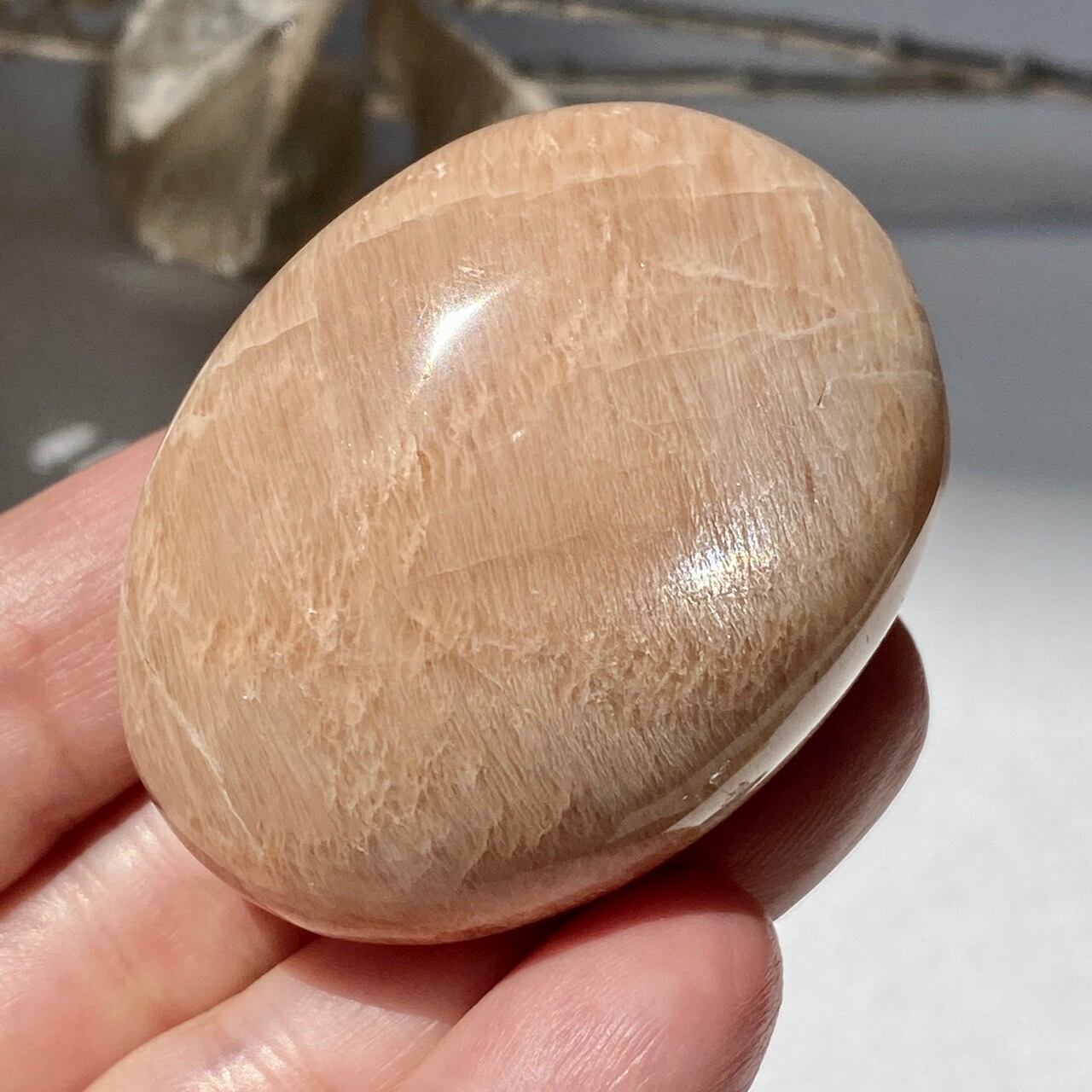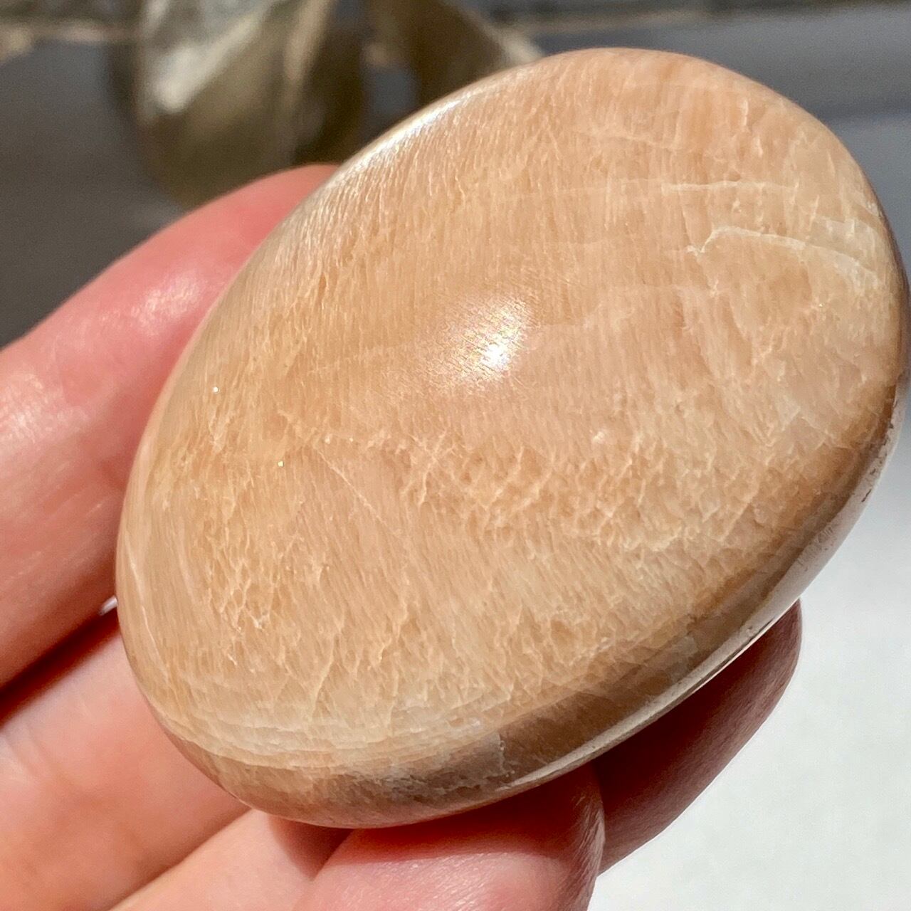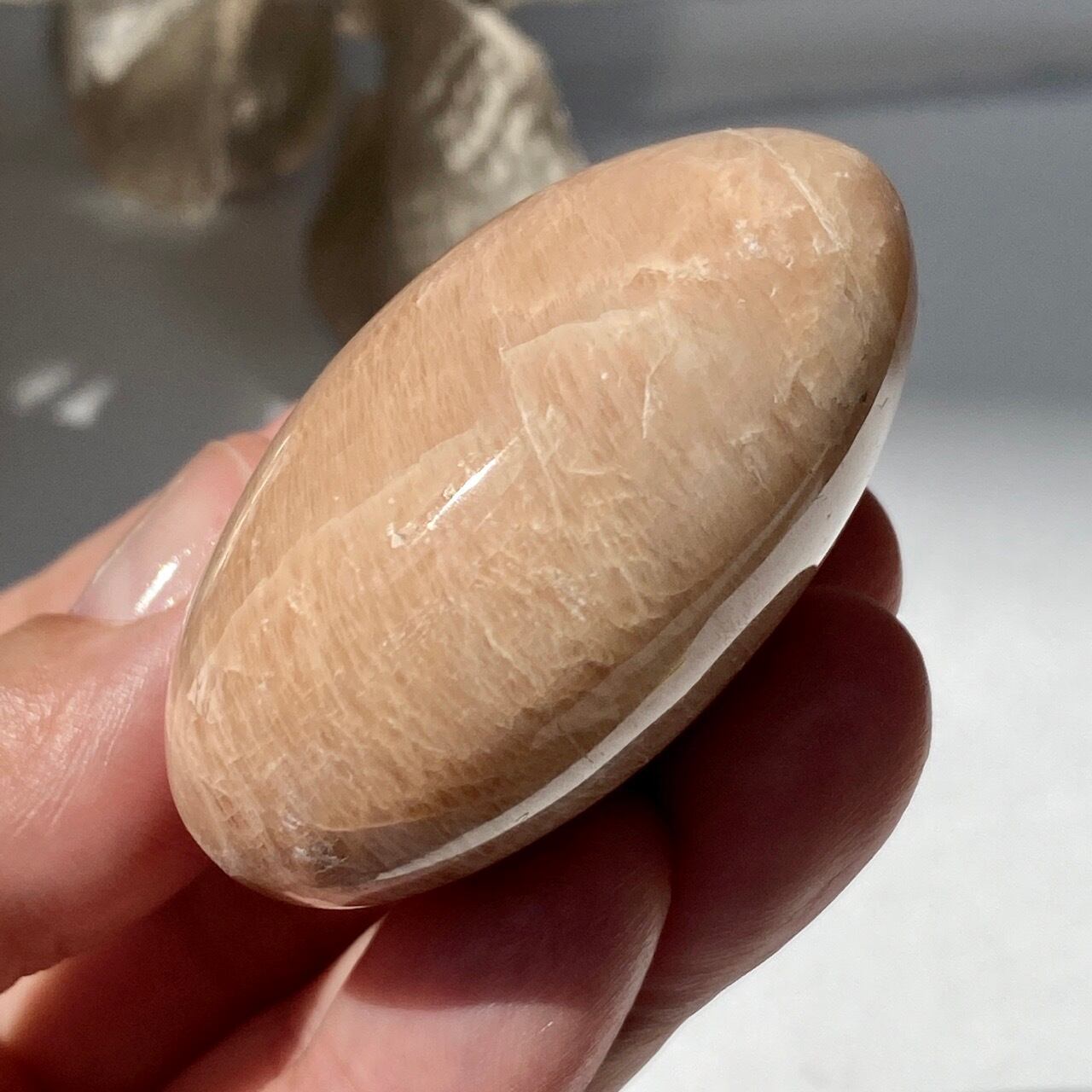 ピーチムーンストーンのパームストーン Peach Moonstone Palm Stone AC3206