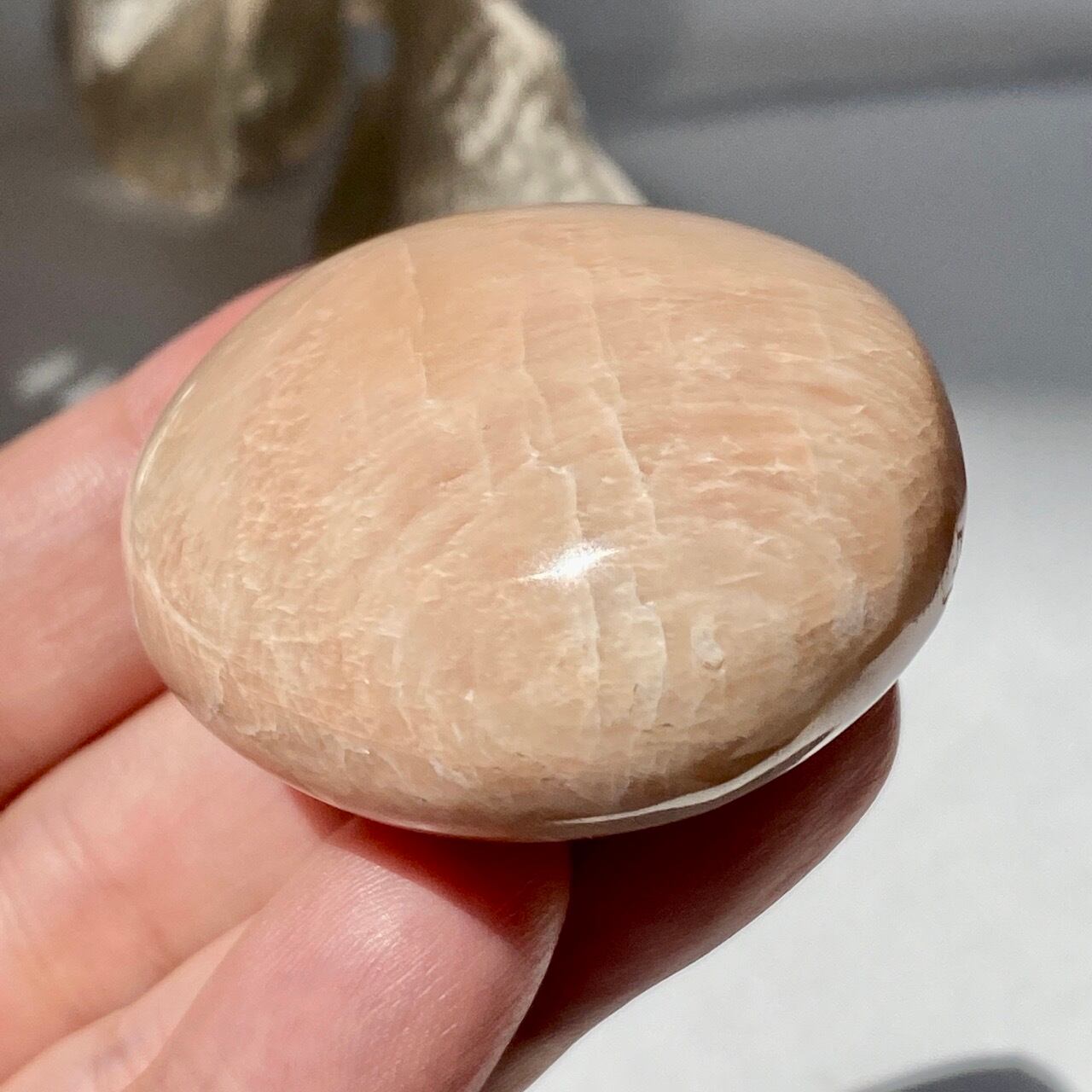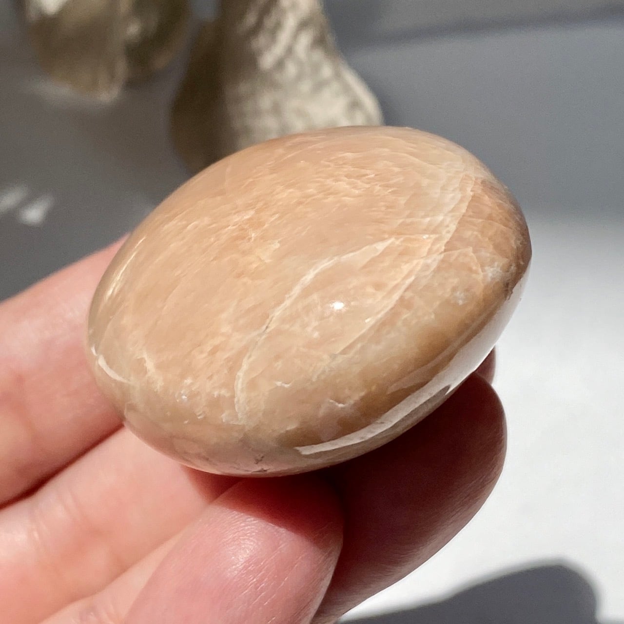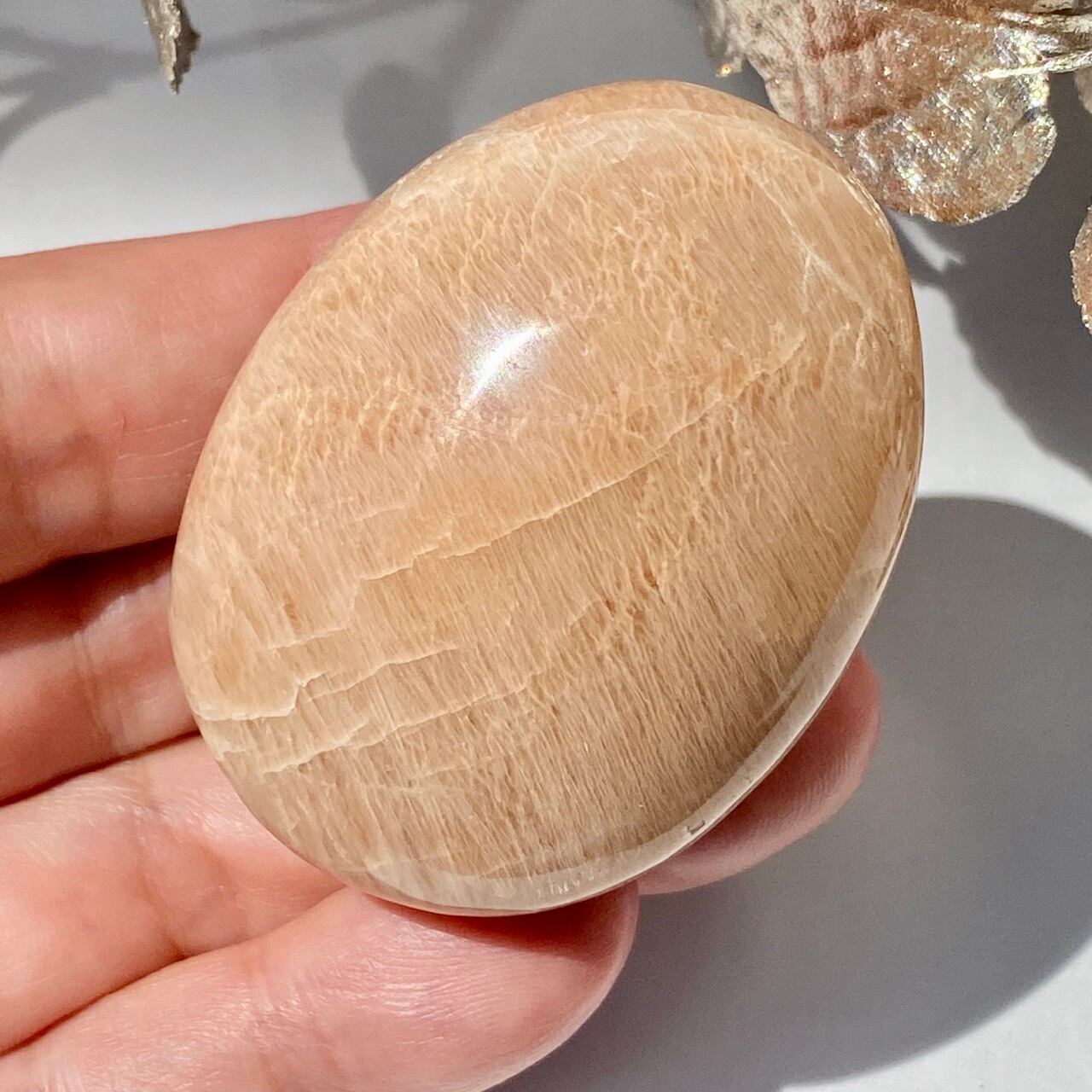ピーチムーンストーンのパームストーン Peach Moonstone Palm Stone AC3206