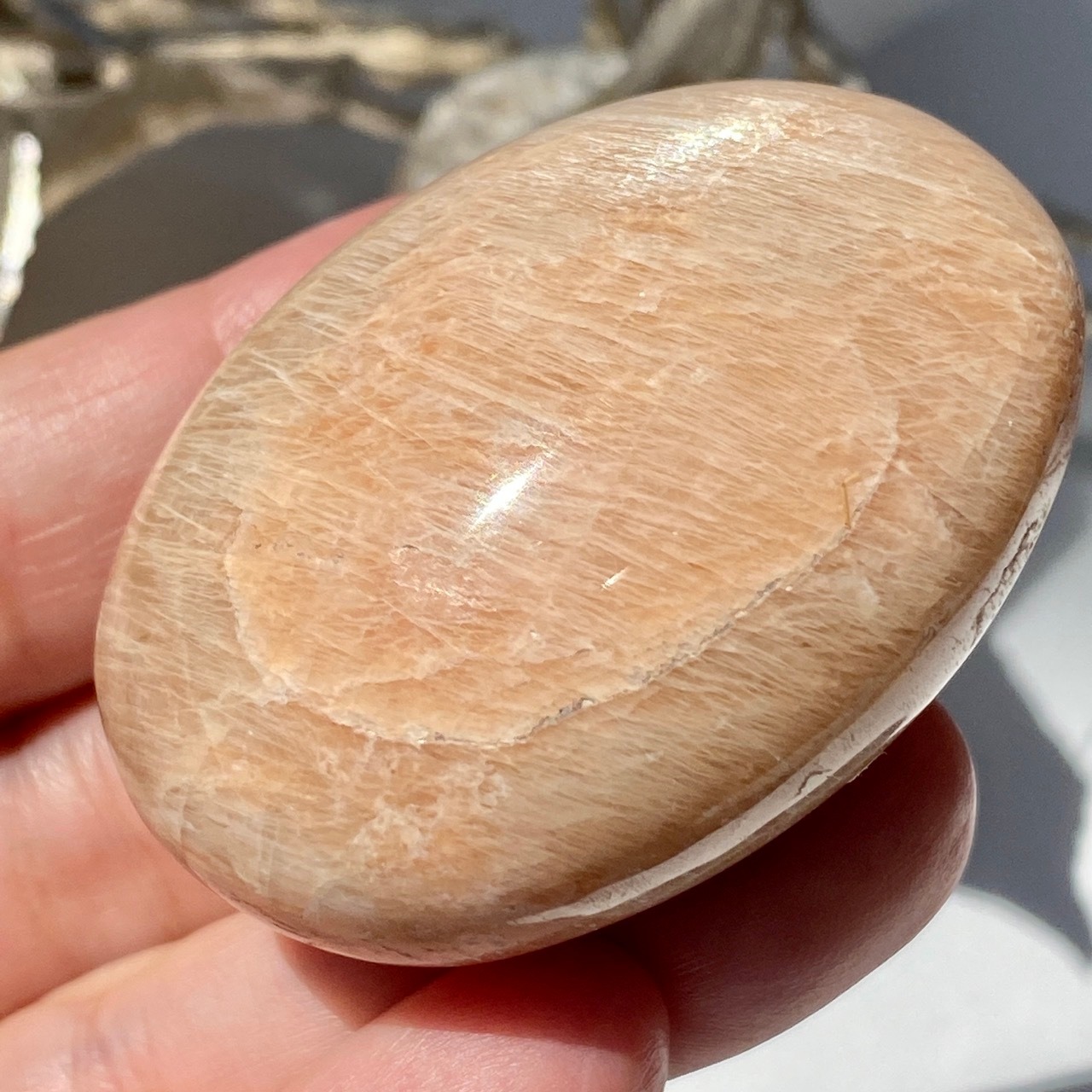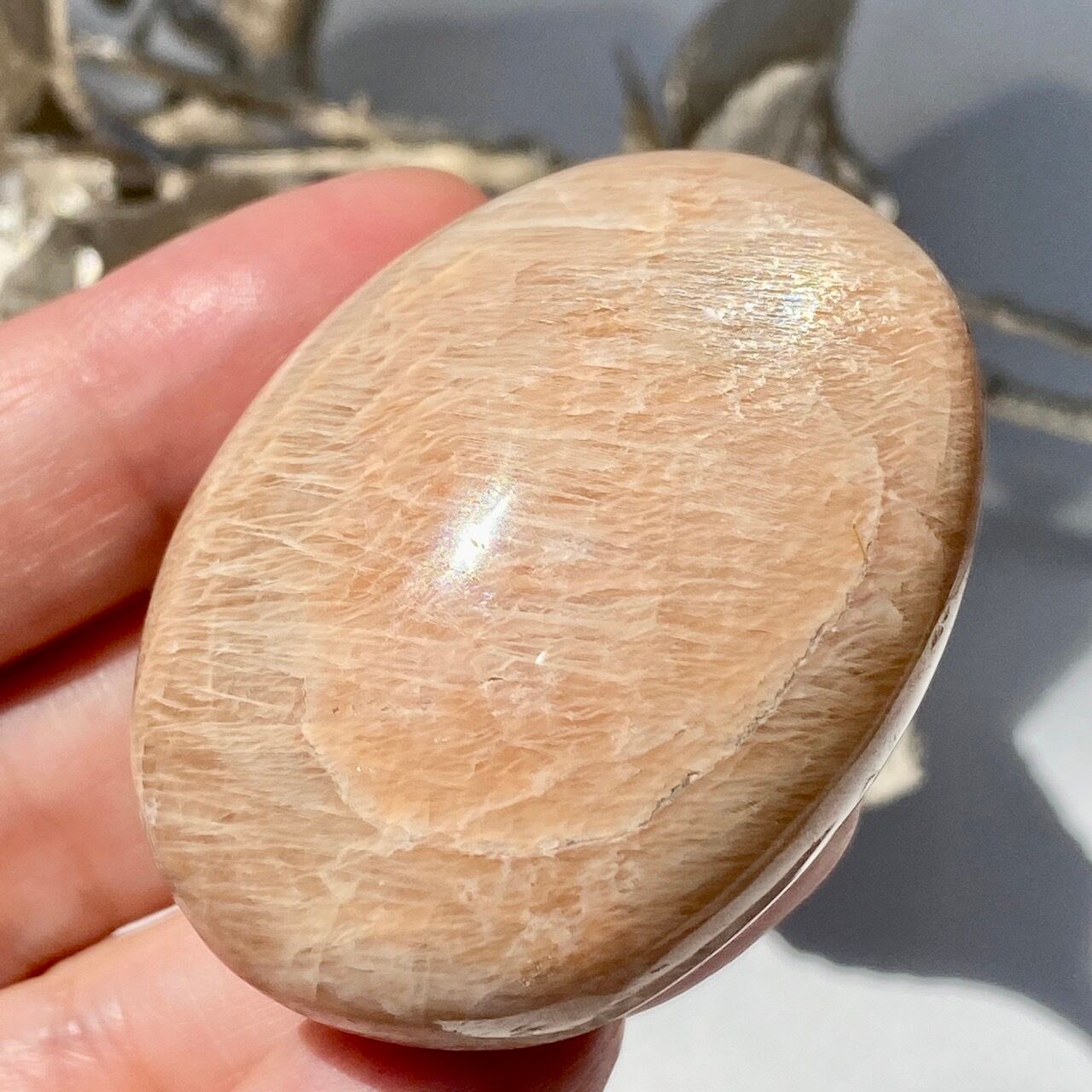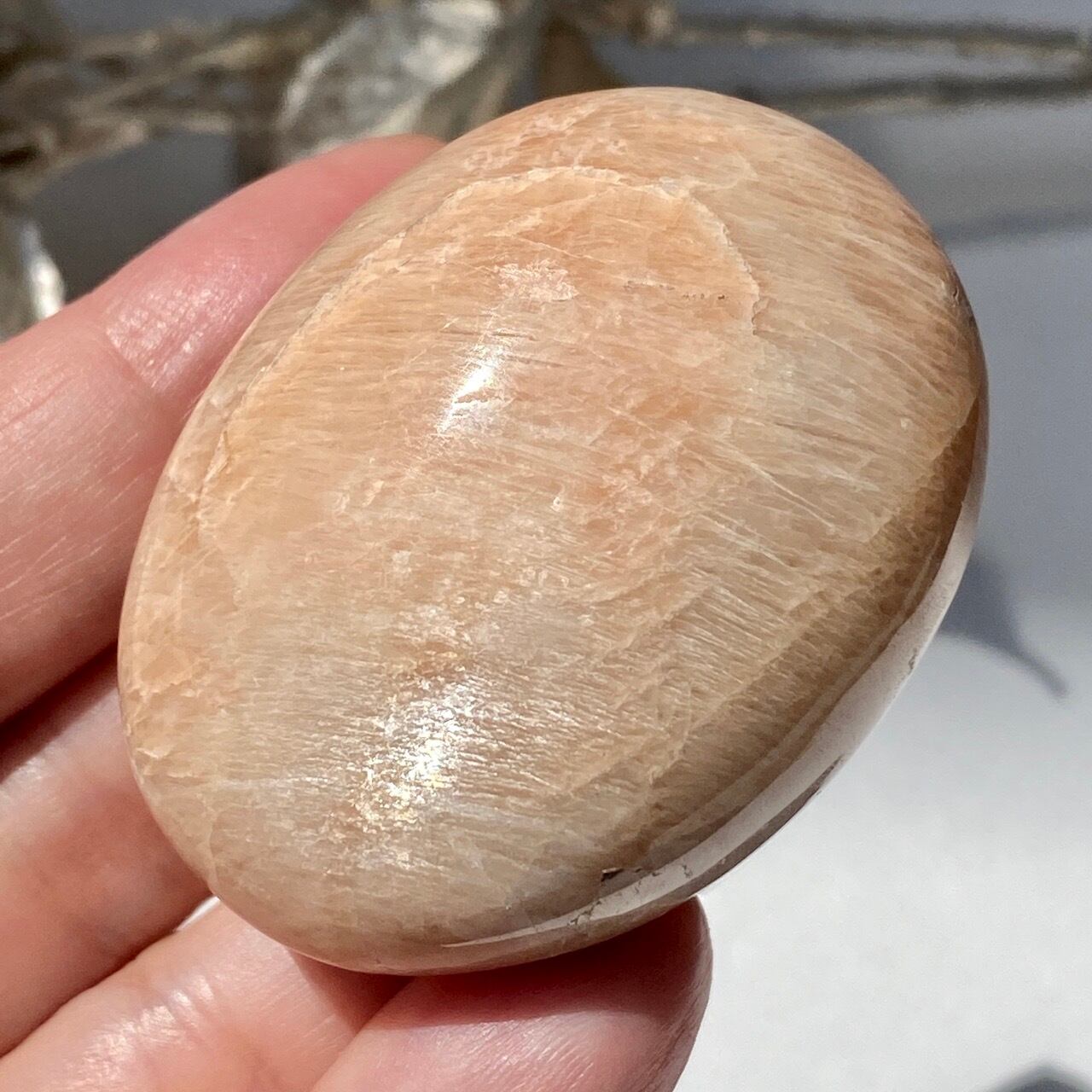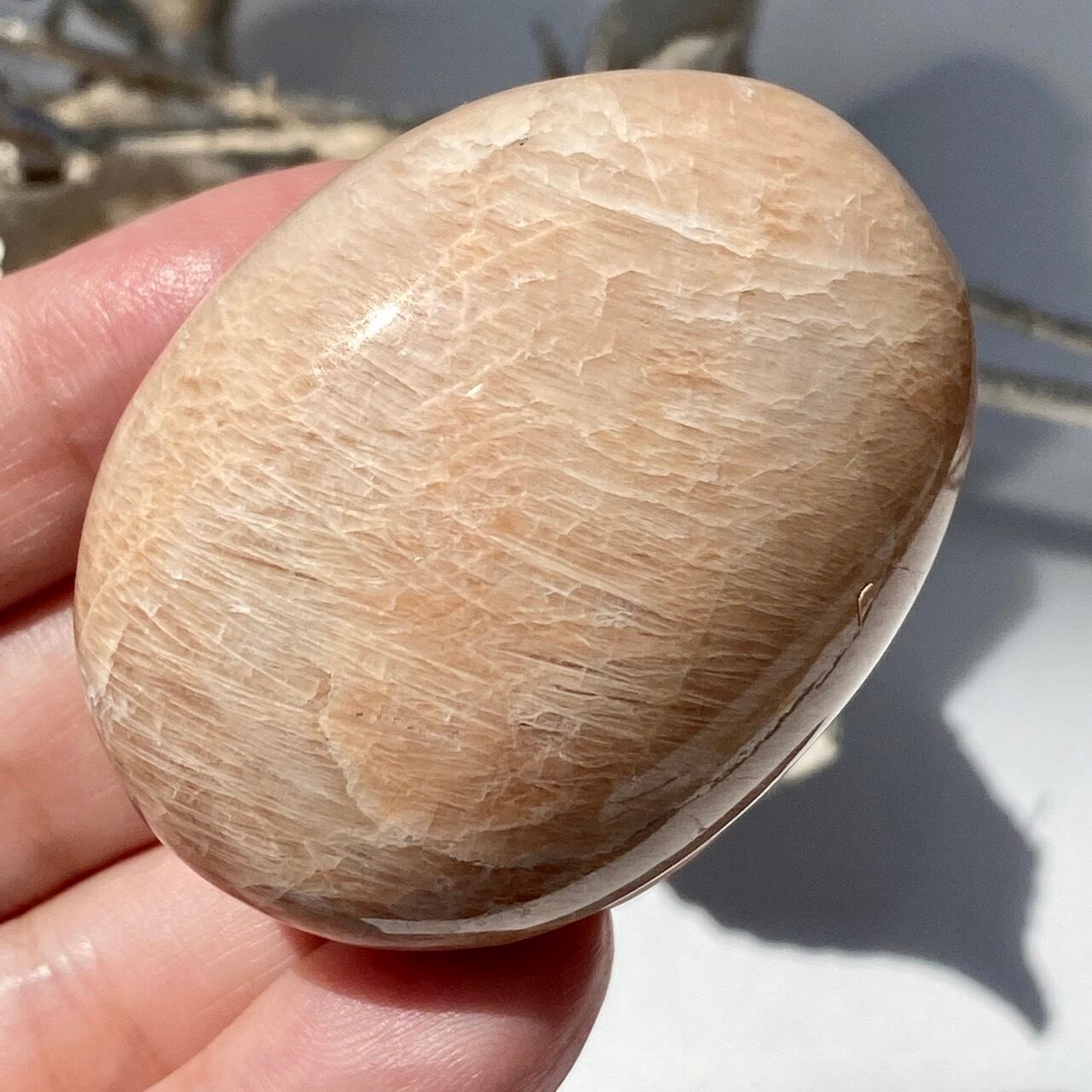 ピーチムーンストーンのパームストーン Peach Moonstone Palm Stone AC3206