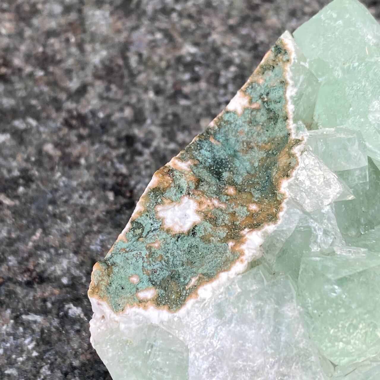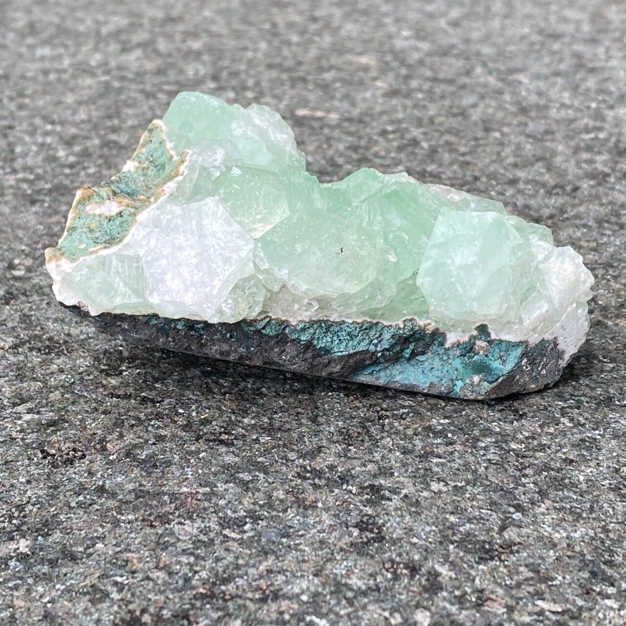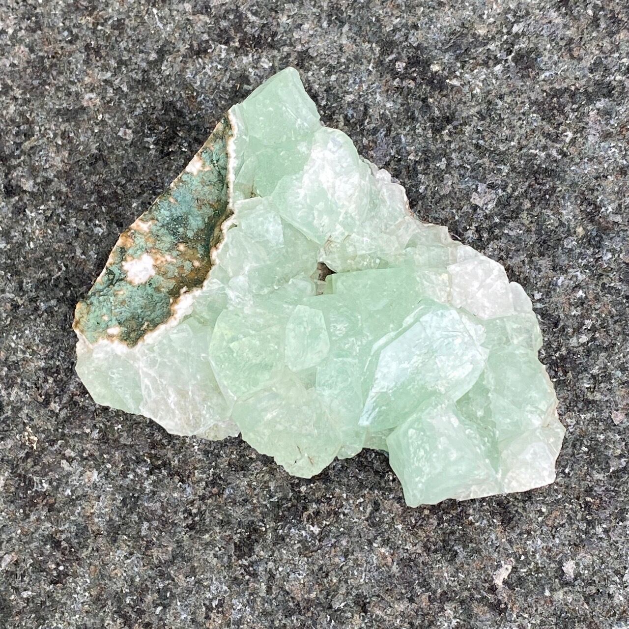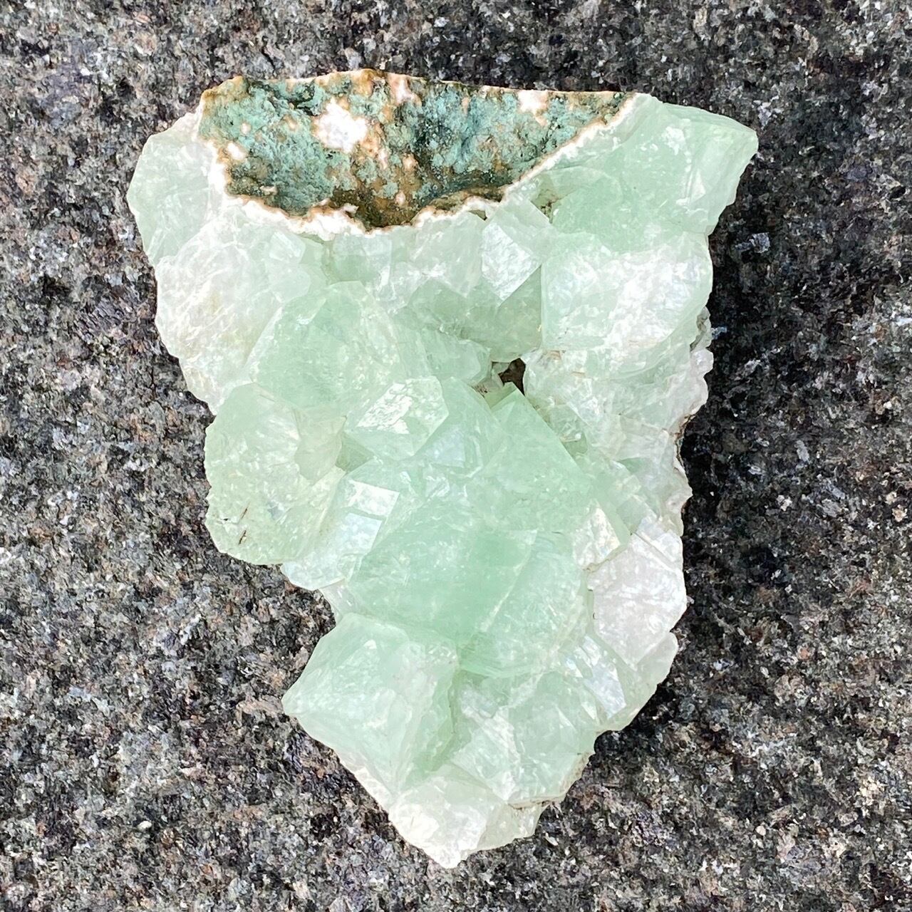 アポフィライトは大好きな石のひとつ。アポフィライトの独特な艶感はダイヤモンドや水晶とまた違って美しく、魅力的です。それも目に優しいグリーン。クラスターなので、色々な方向からファセットの表情や艶感を楽しめます。