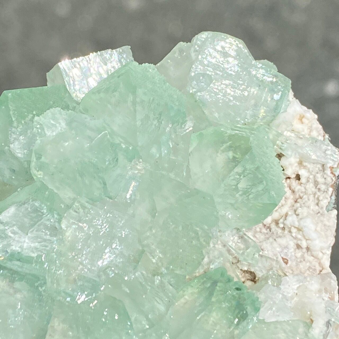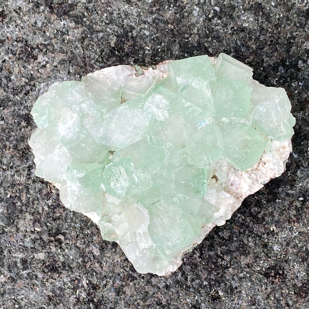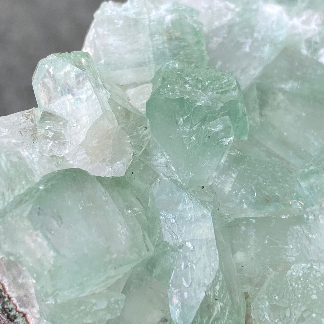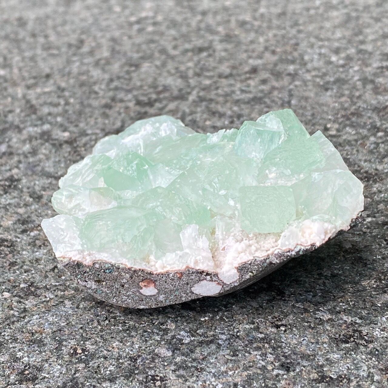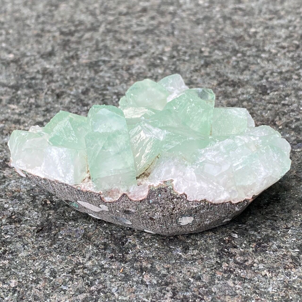 アポフィライトは大好きな石のひとつ。アポフィライトの独特な艶感はダイヤモンドや水晶とまた違って美しく、魅力的です。それも目に優しいグリーン。クラスターなので、色々な方向からファセットの表情や艶感を楽しめます。