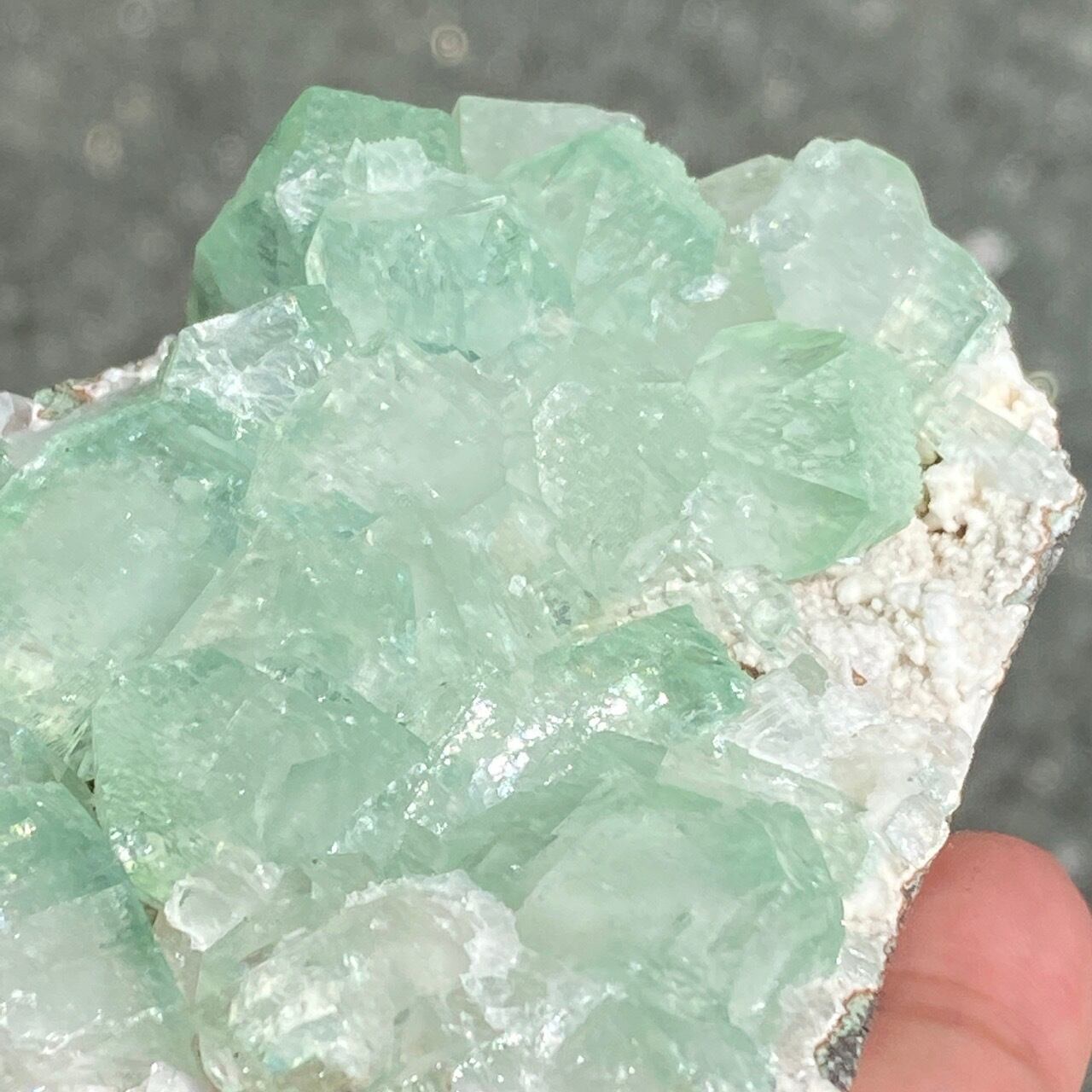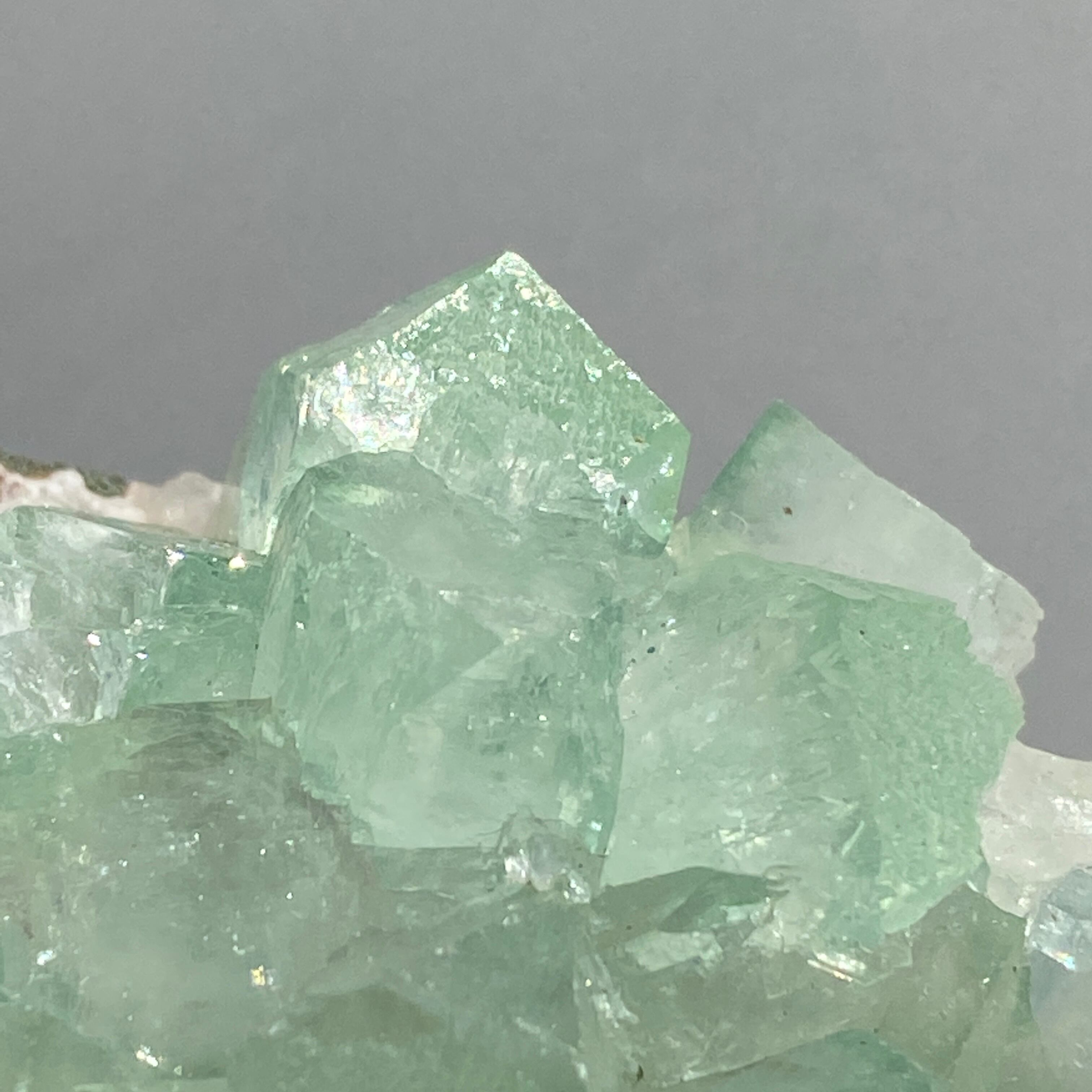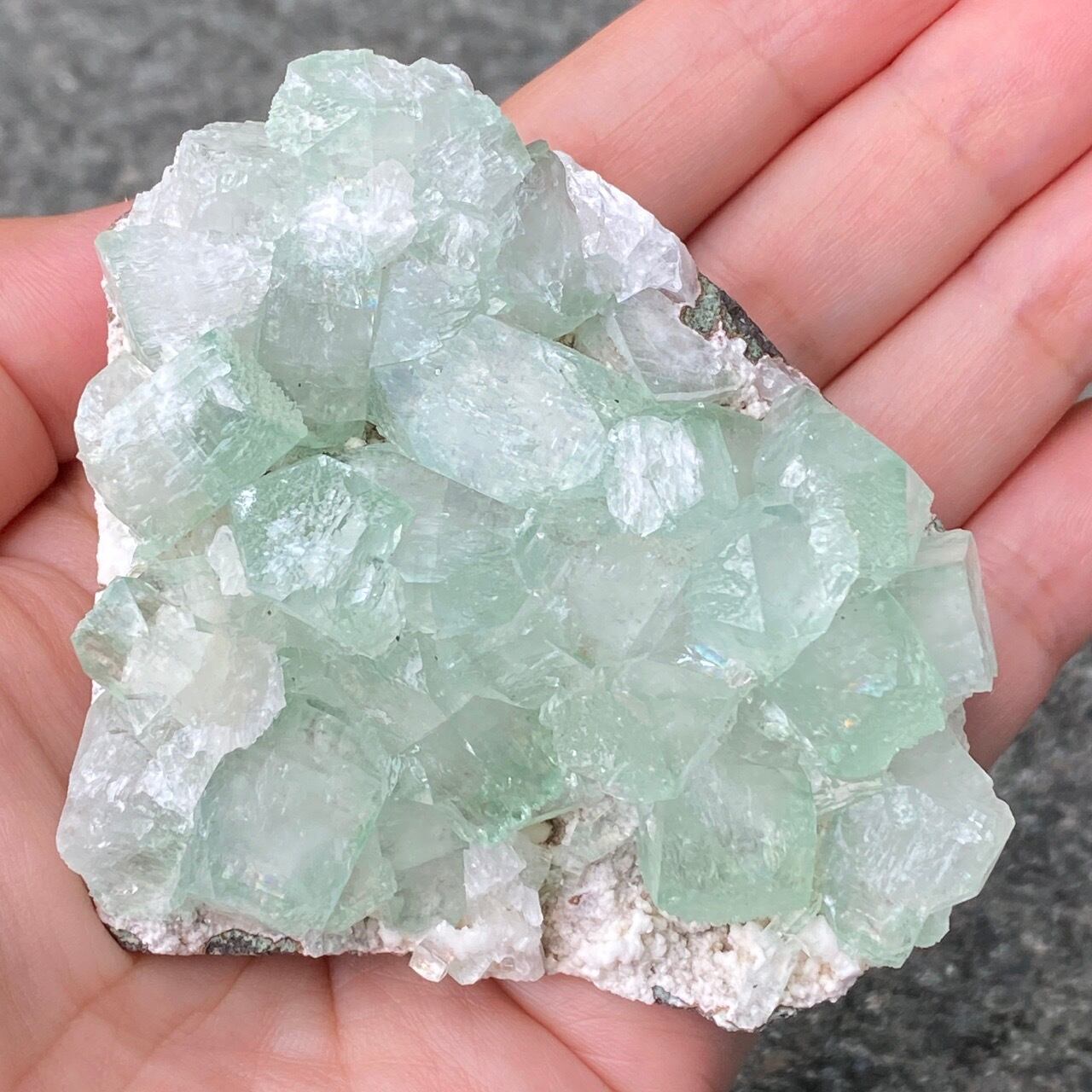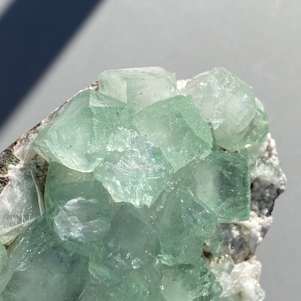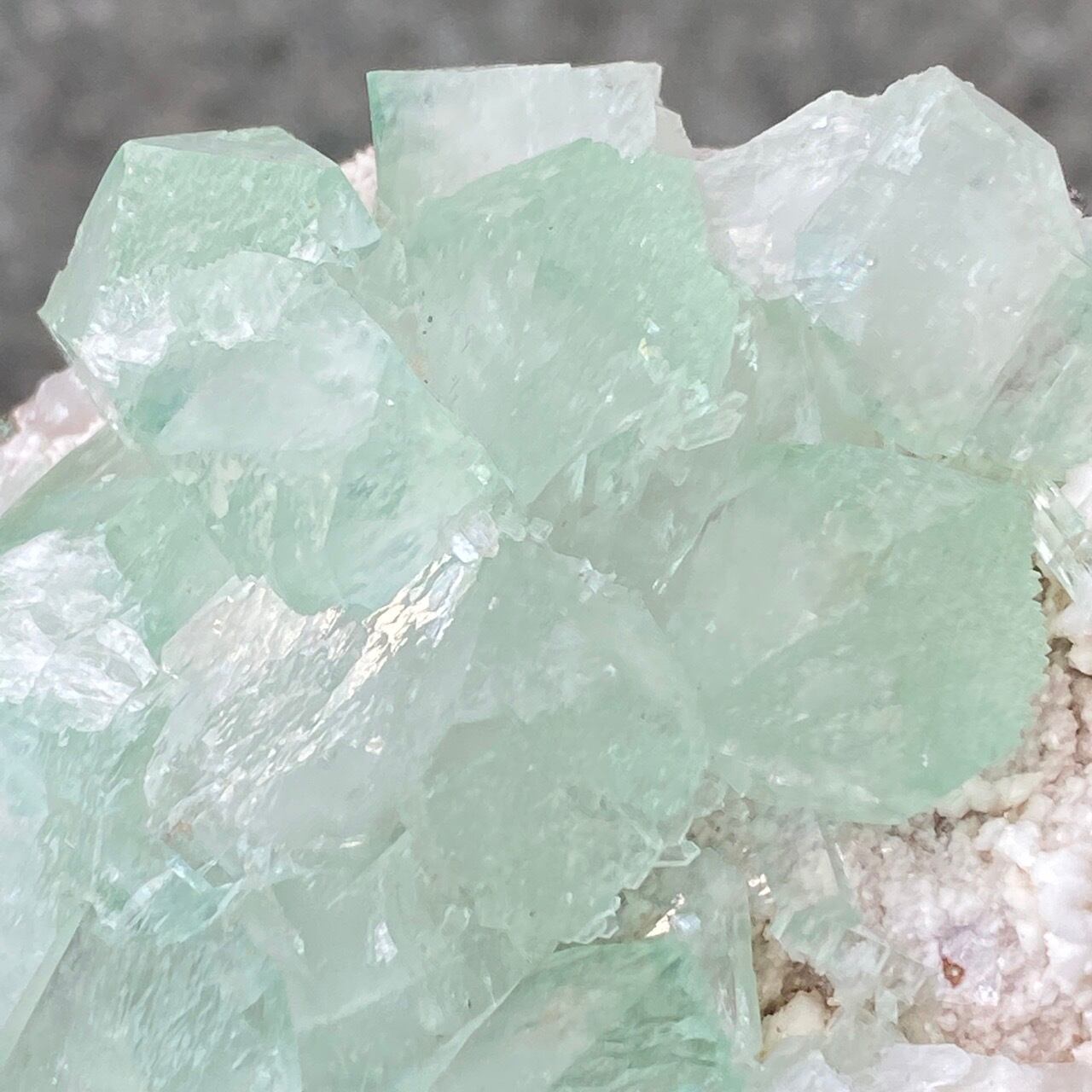 アポフィライトは大好きな石のひとつ。アポフィライトの独特な艶感はダイヤモンドや水晶とまた違って美しく、魅力的です。それも目に優しいグリーン。クラスターなので、色々な方向からファセットの表情や艶感を楽しめます。