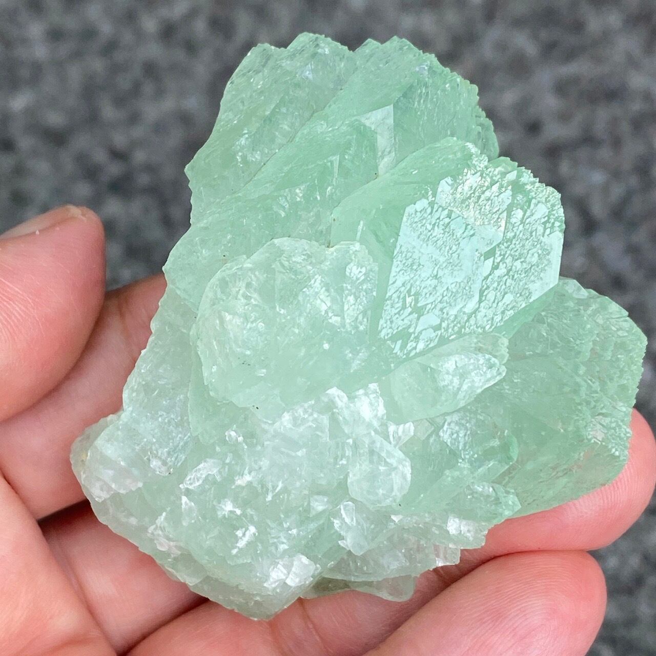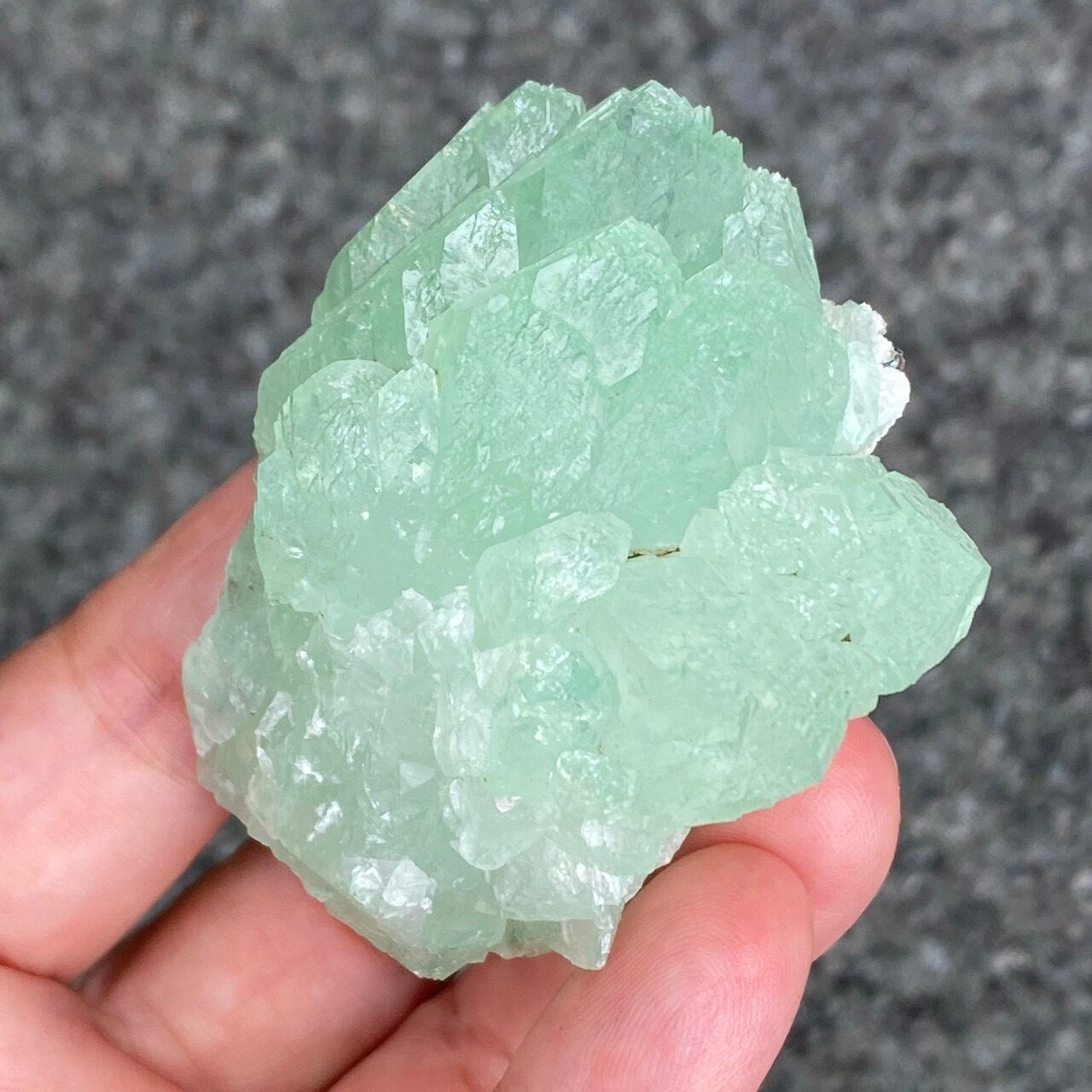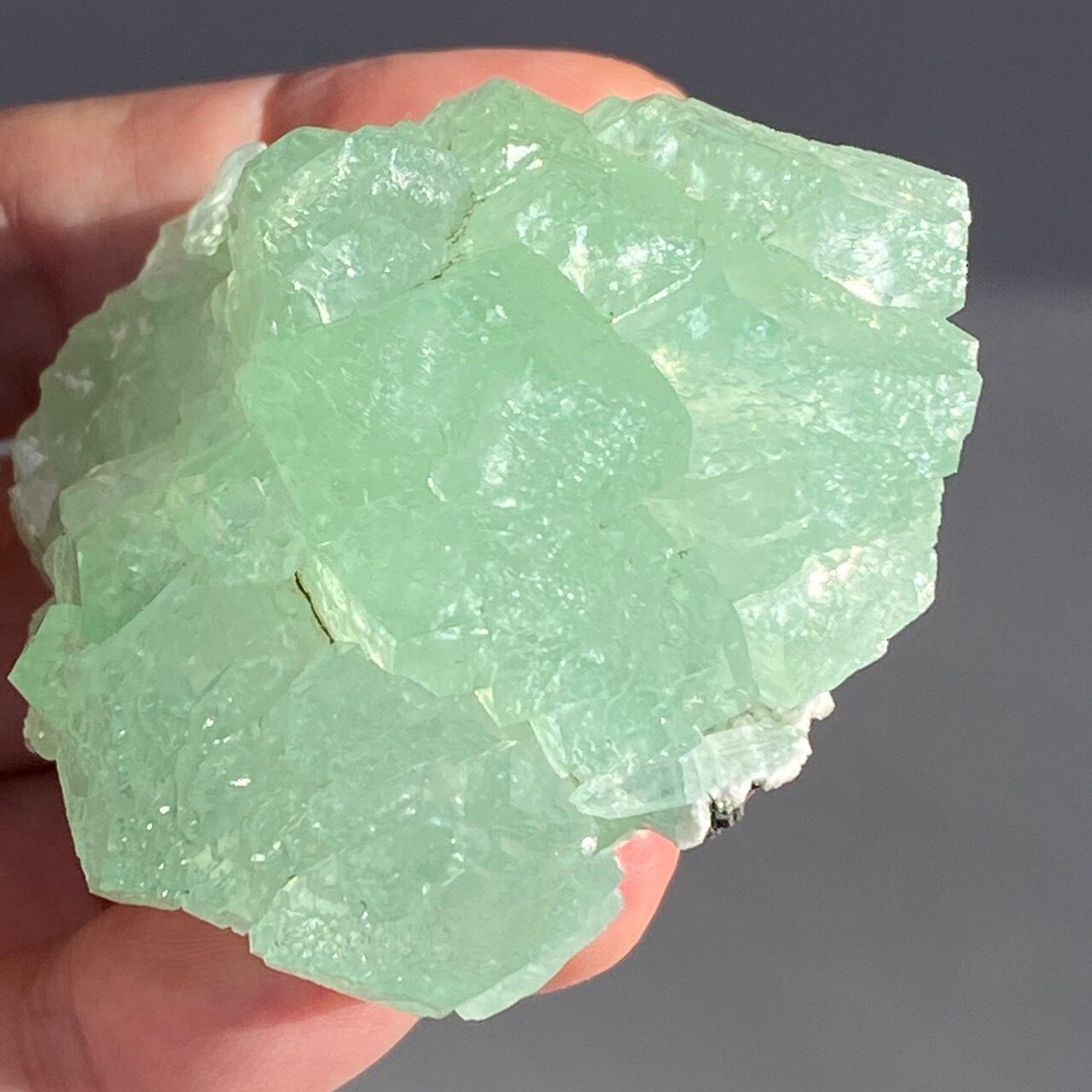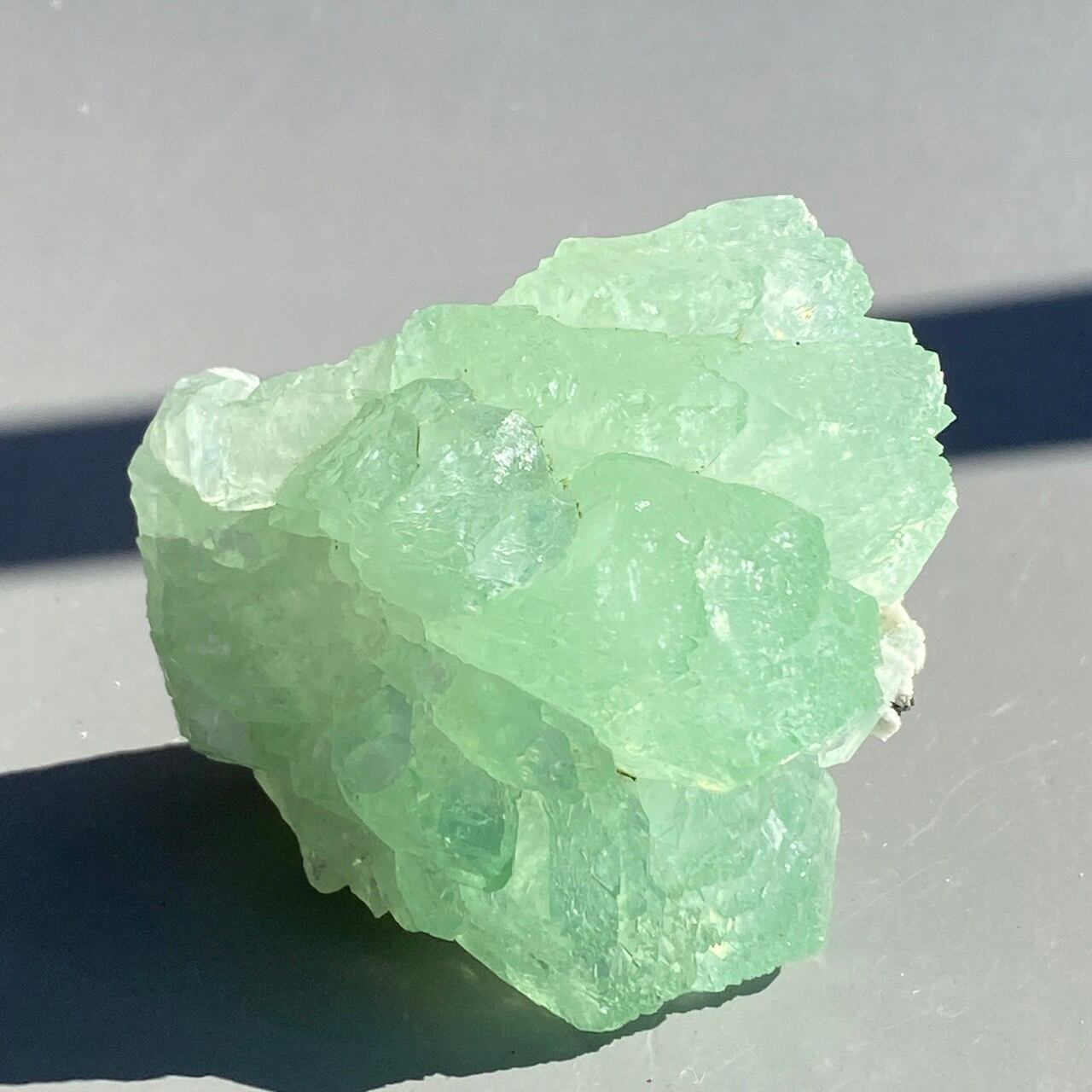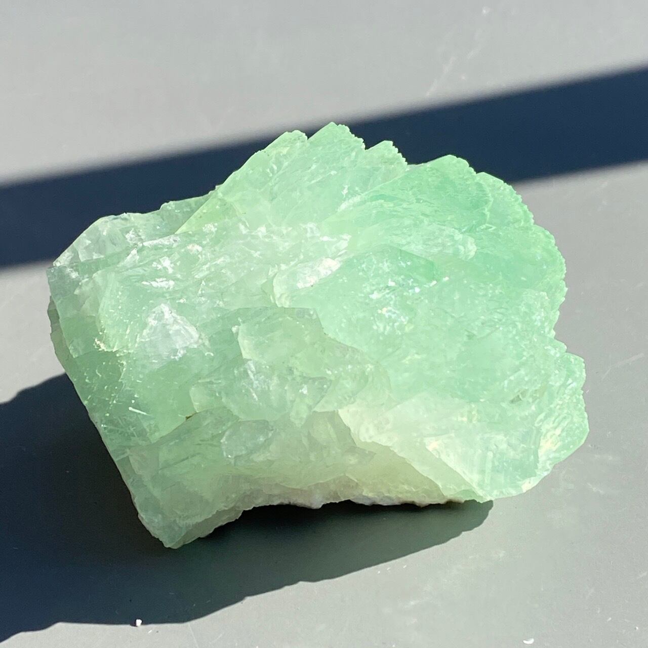 アポフィライトは大好きな石のひとつ。アポフィライトの独特でシルキーな艶感はダイヤモンドや水晶とまた違って美しく、魅力的です。それも目に優しいグリーン。特にこの子は同時にお迎えしたグリーンアポフィライトの中で色味が最も濃いです。