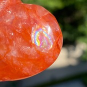 水晶に赤いレピドクロサイト(鱗鉄鉱)を内包する石で、その見た目から力強さを象徴し、持ち主に自信や決断力、そして前進する力をを与えてくれると言われています。