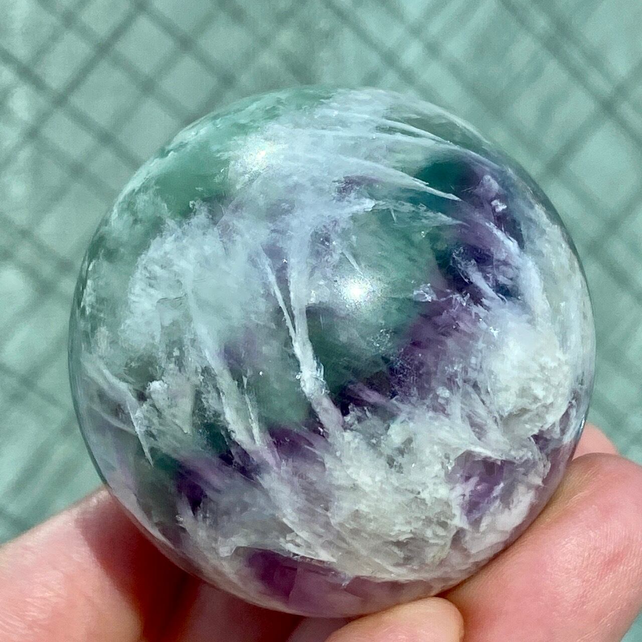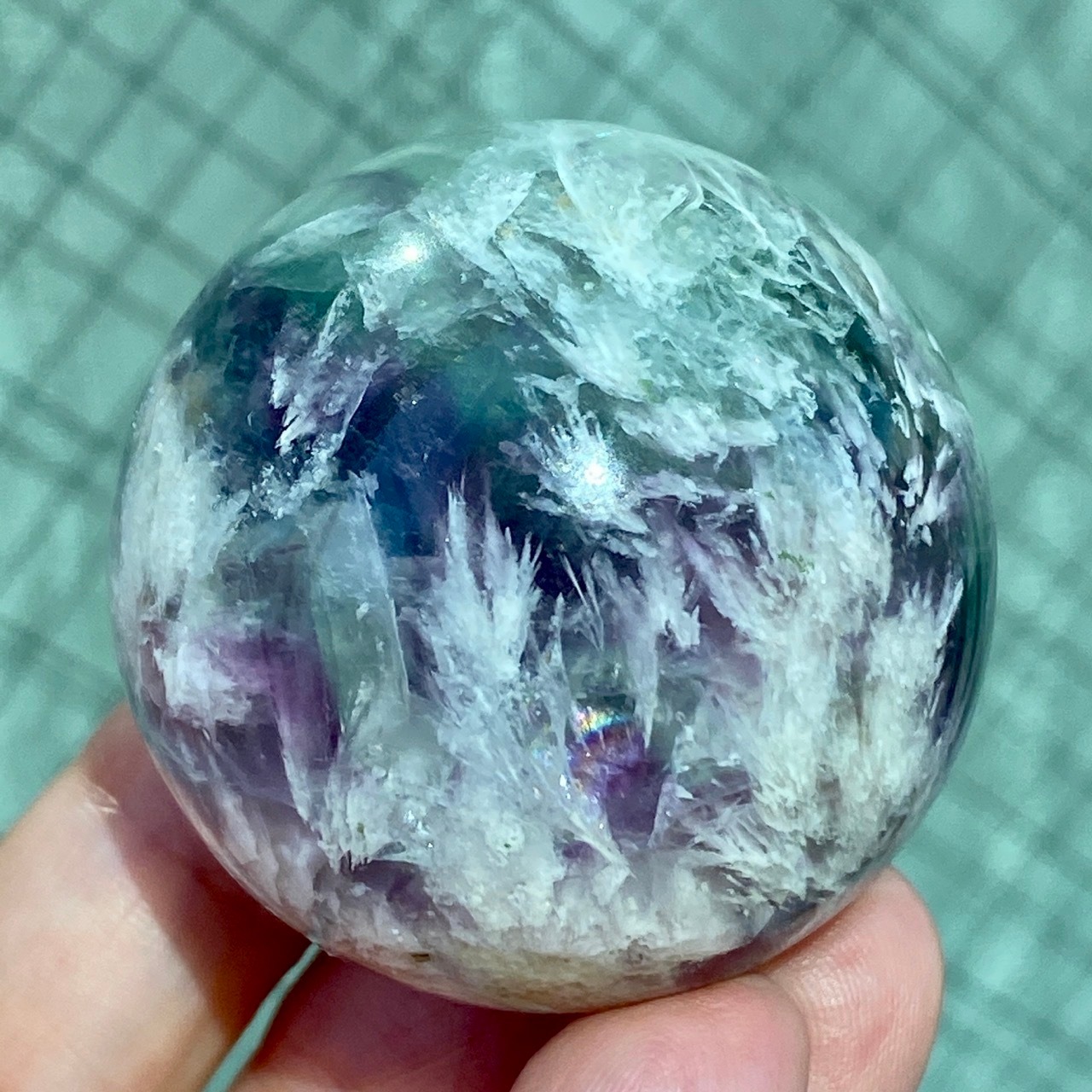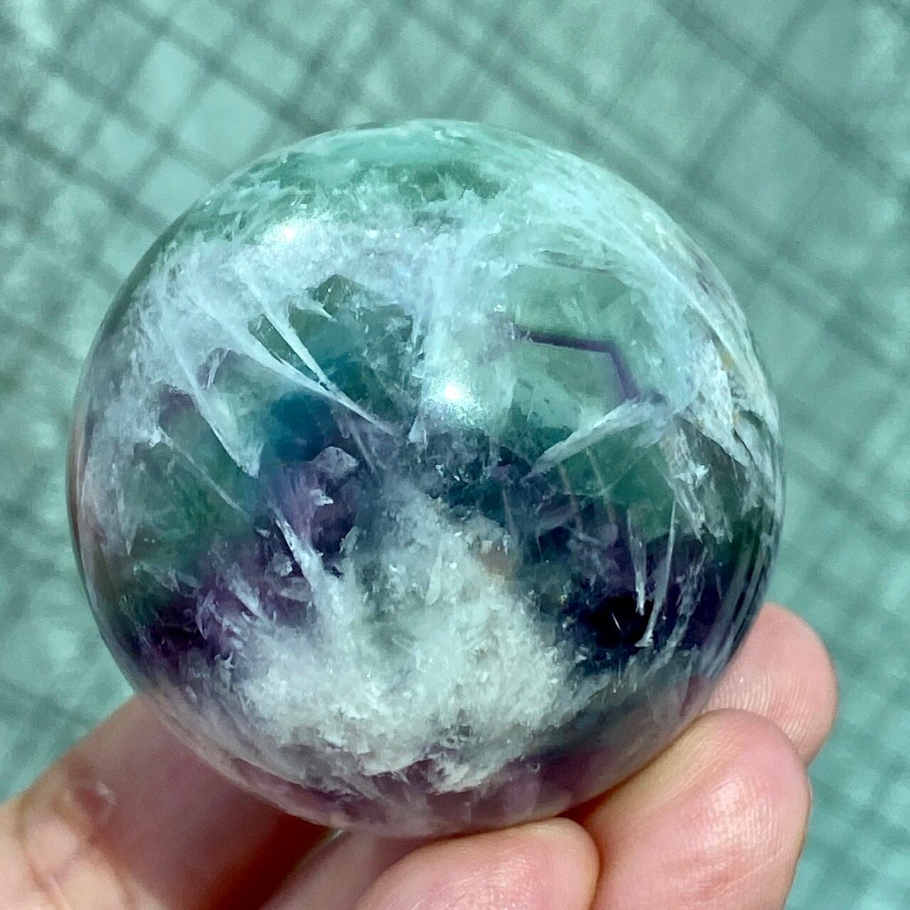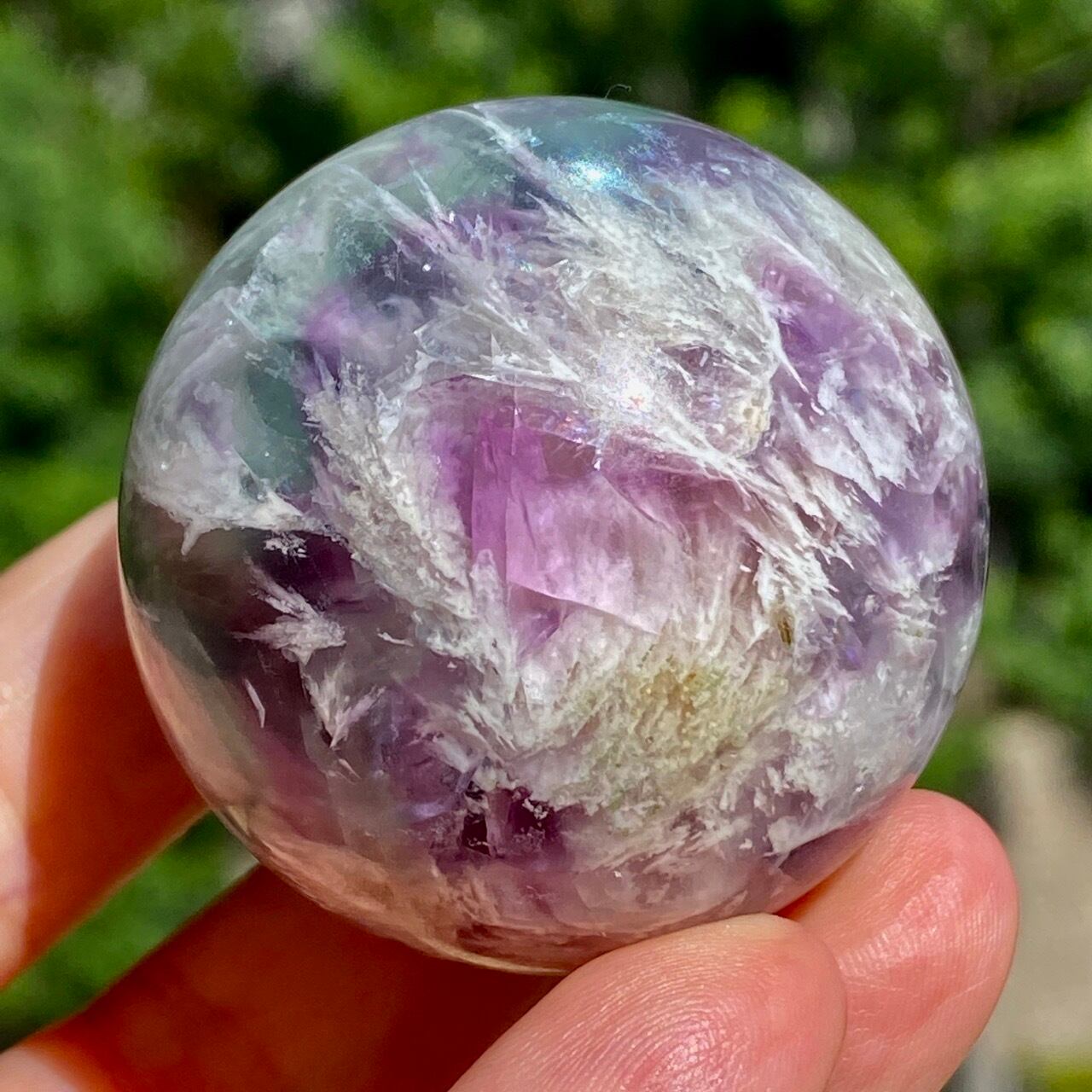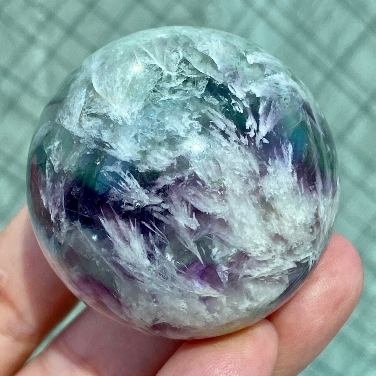 スノーフレーク(エンジェルフェザー)フローライトのスフィア Snowflake Fluorite Sphere SP2077