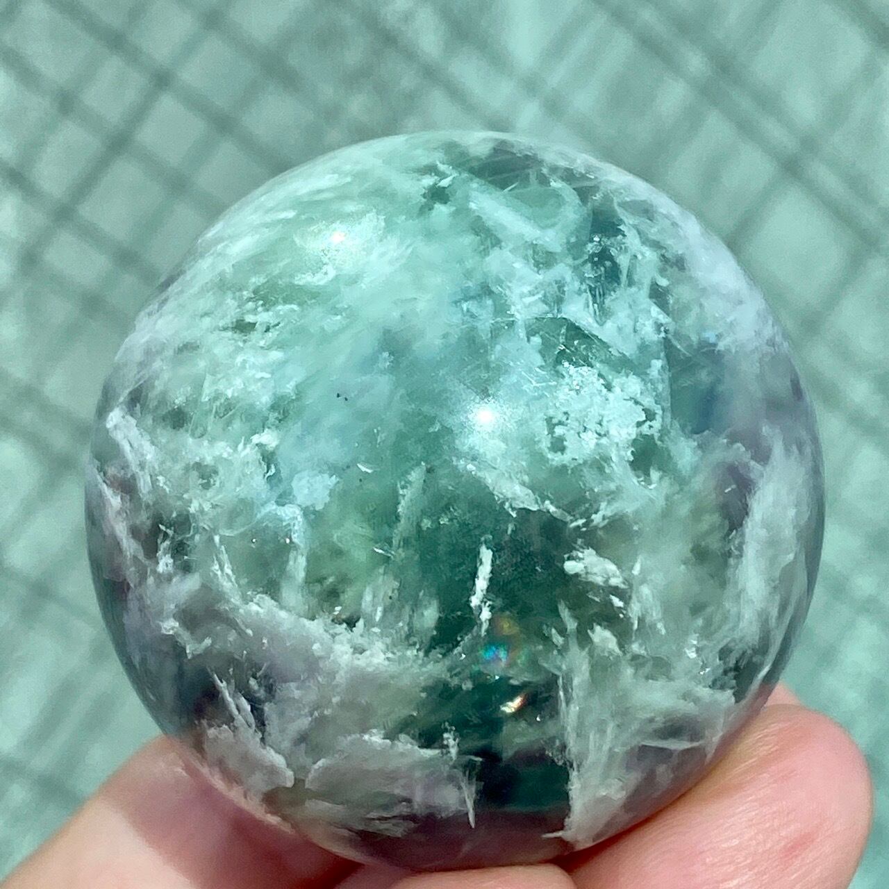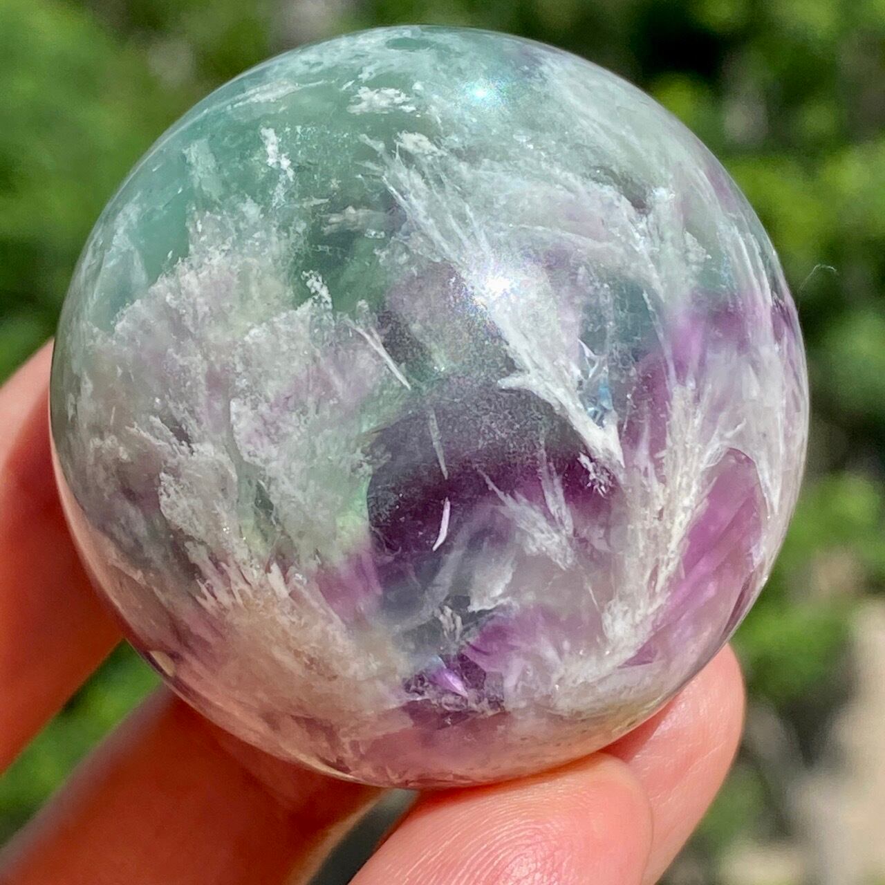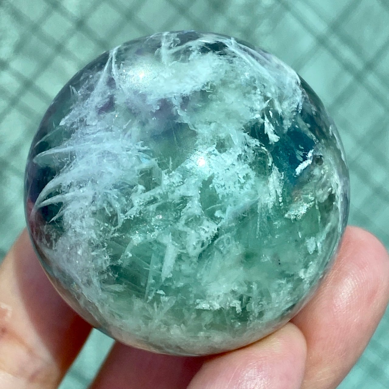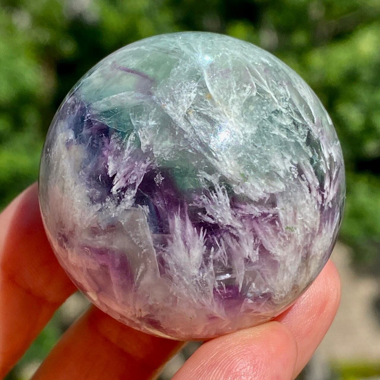 スノーフレーク(エンジェルフェザー)フローライトのスフィア Snowflake Fluorite Sphere SP2077
