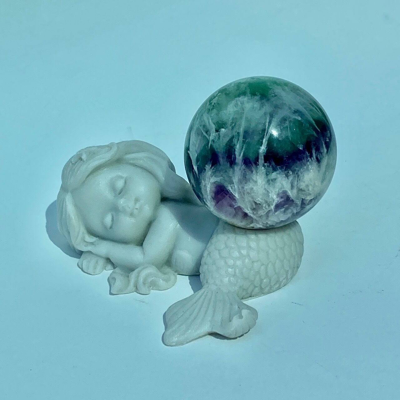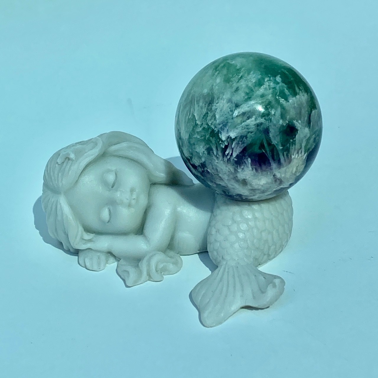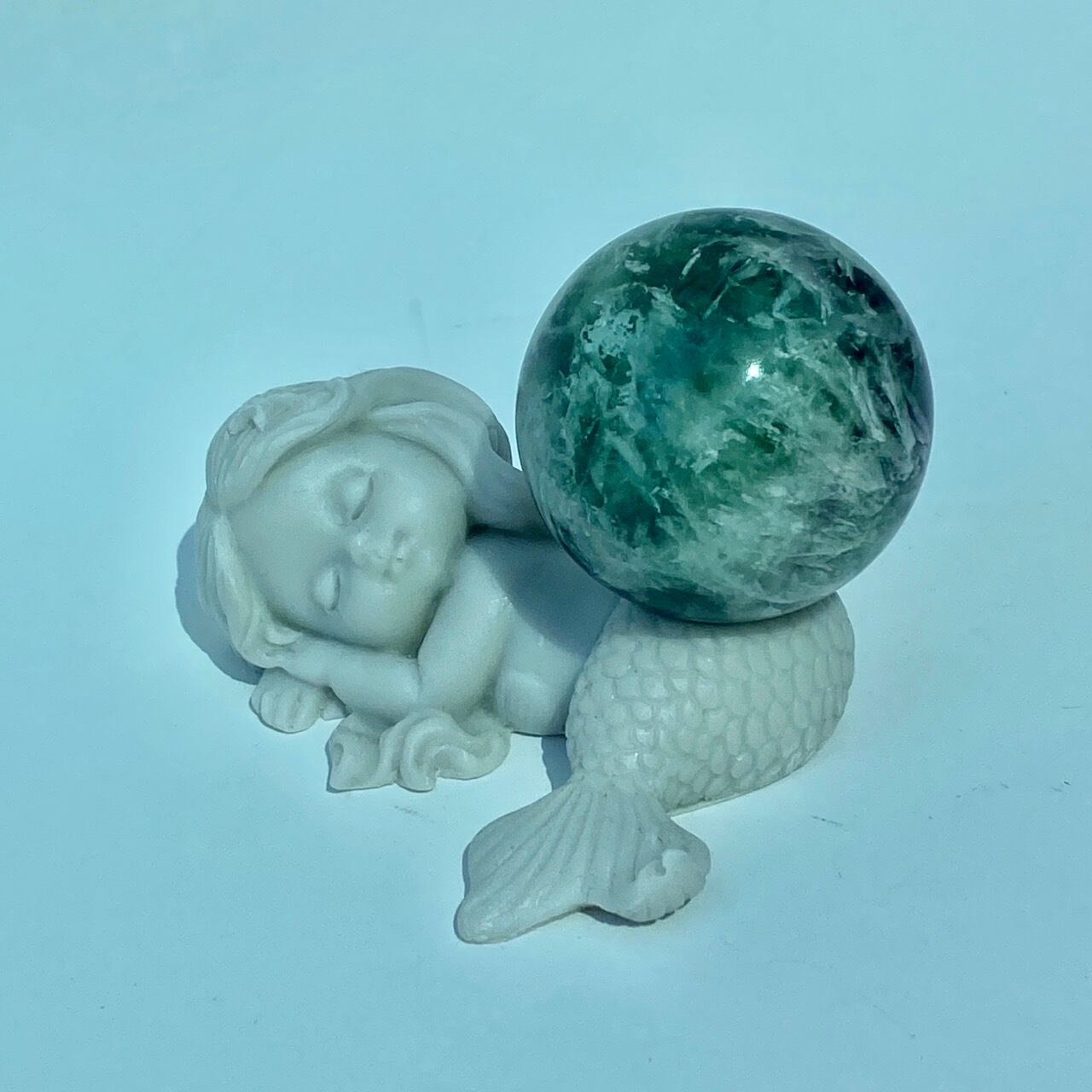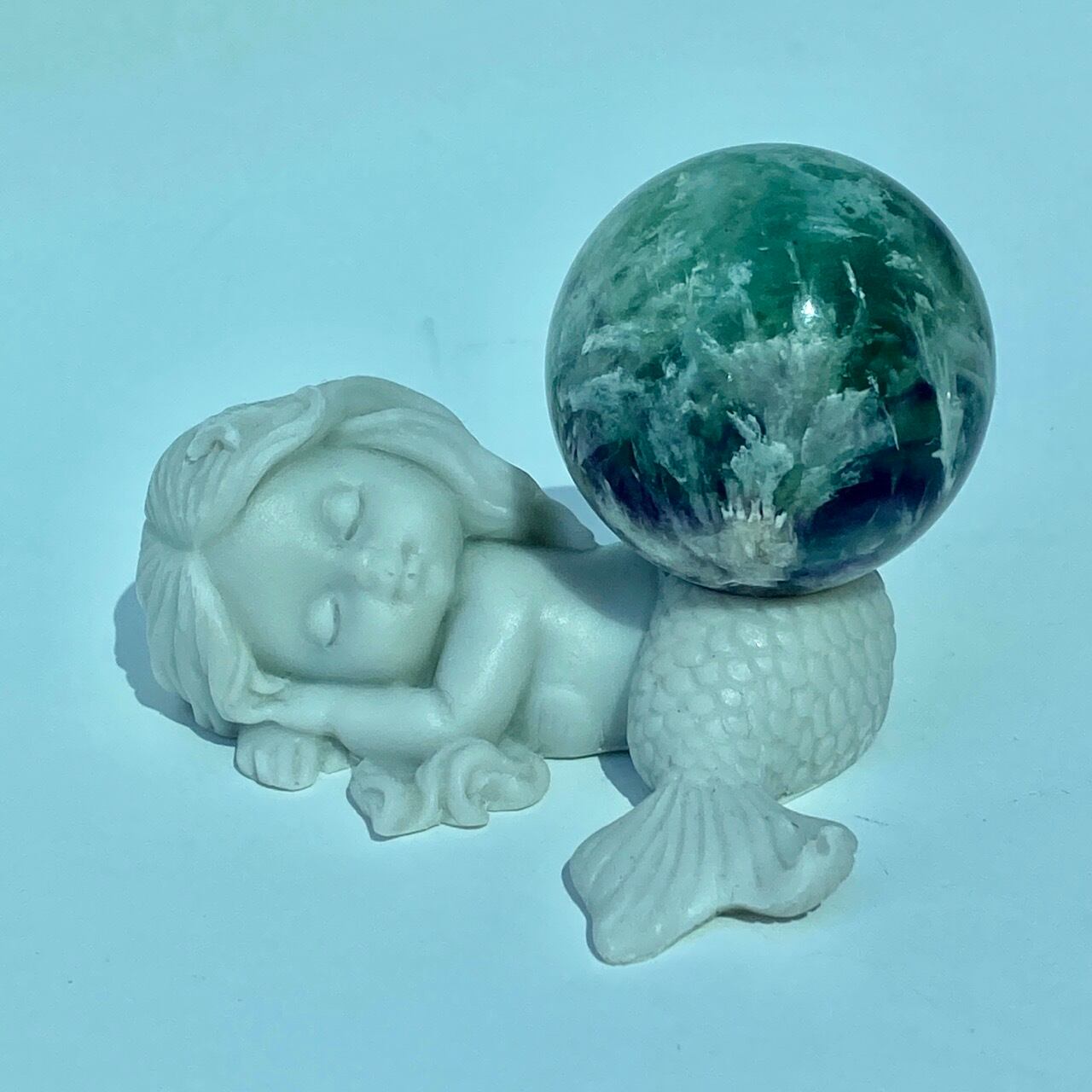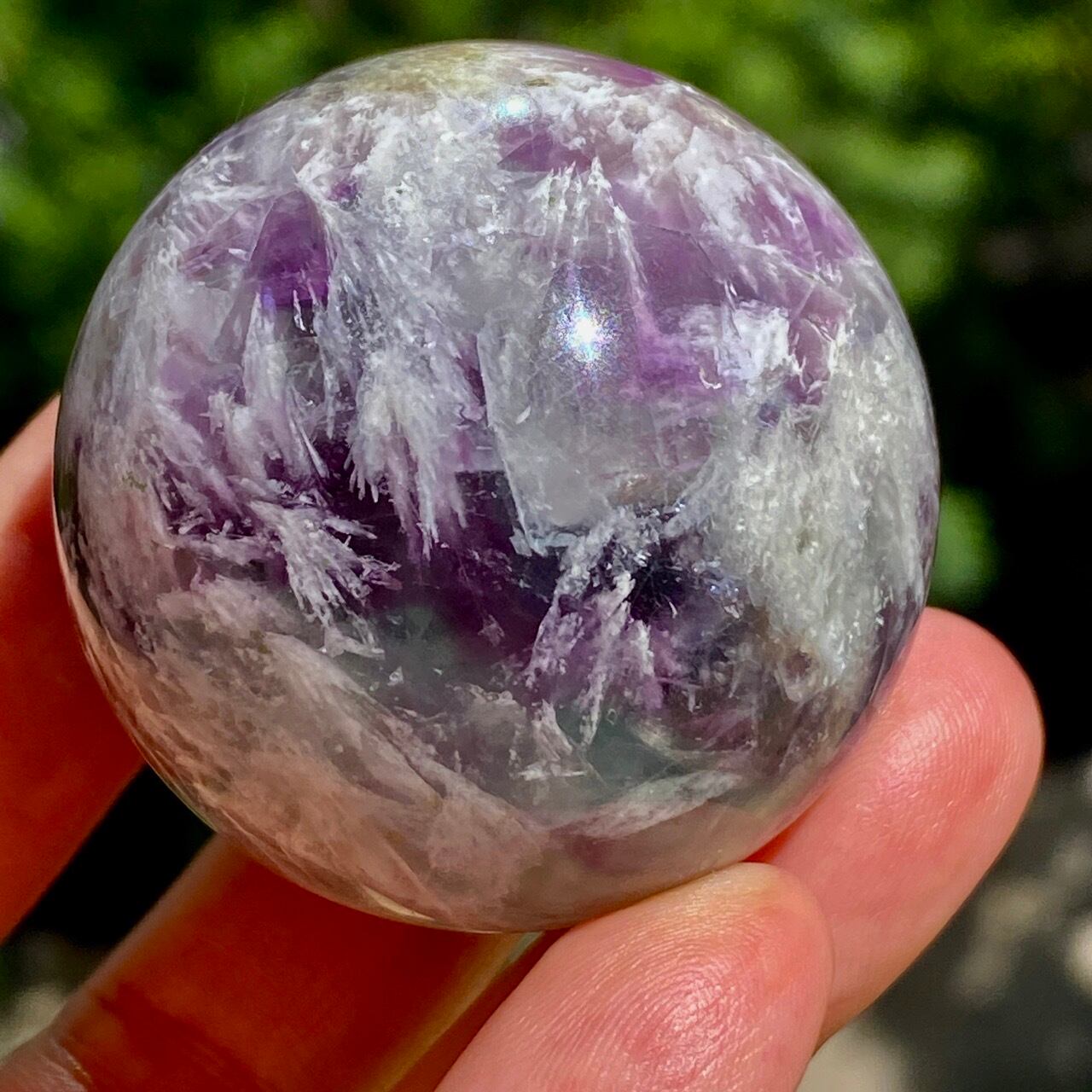 スノーフレーク(エンジェルフェザー)フローライトのスフィア Snowflake Fluorite Sphere SP2077