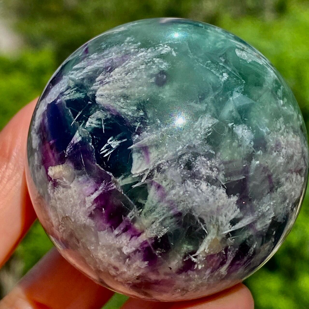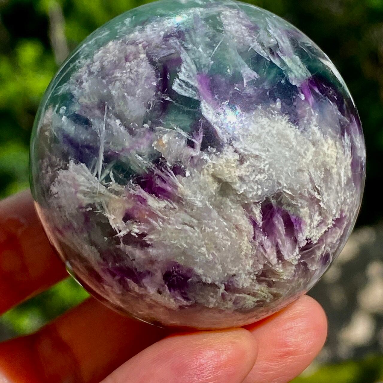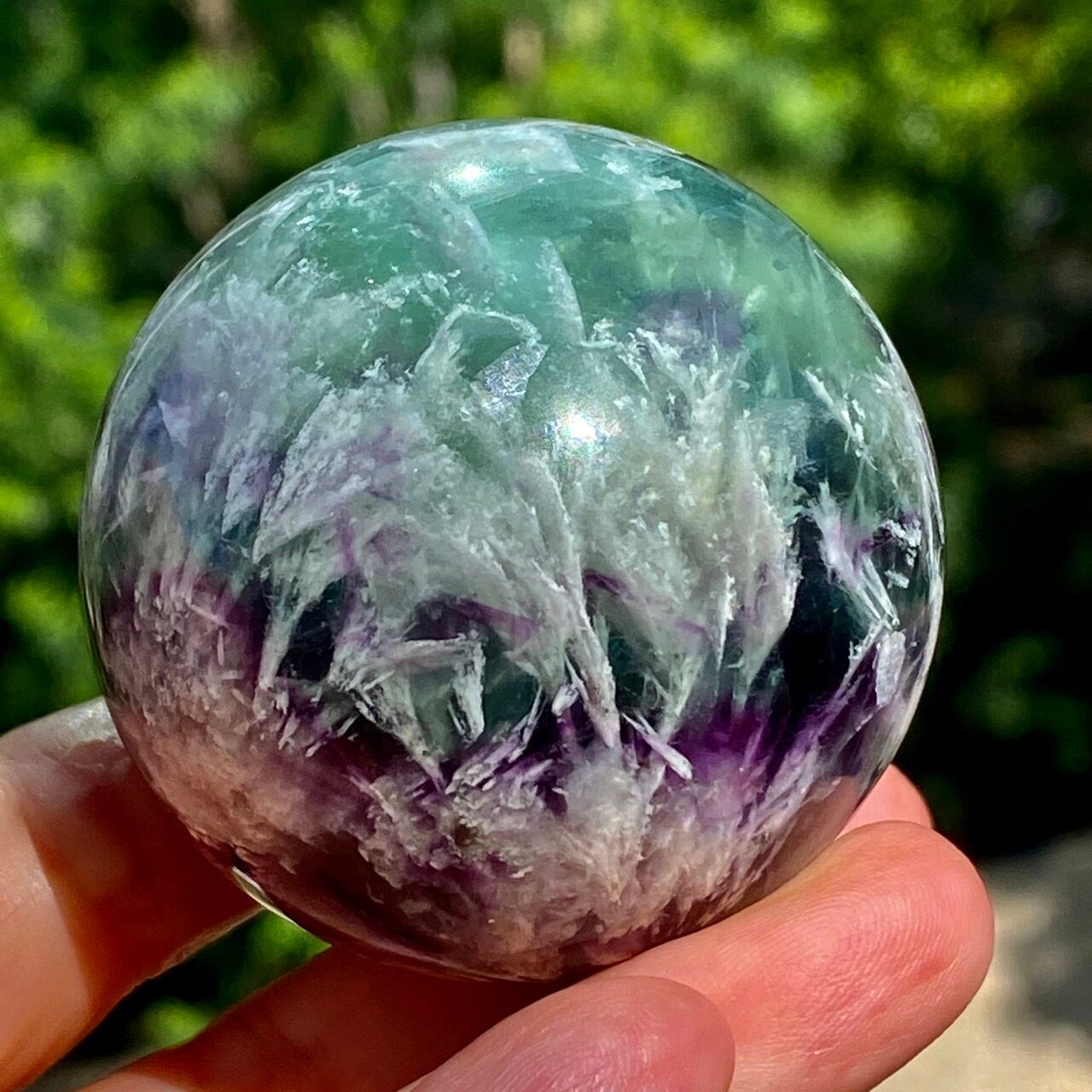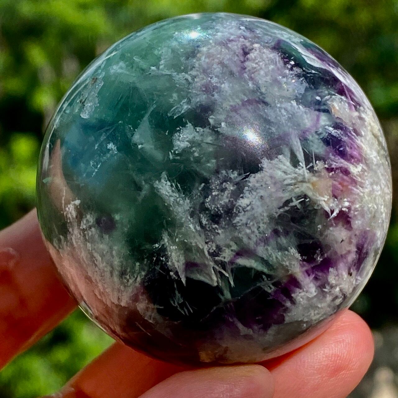 スノーフレーク(エンジェルフェザー)フローライトのスフィア Snowflake Fluorite Sphere SP2074